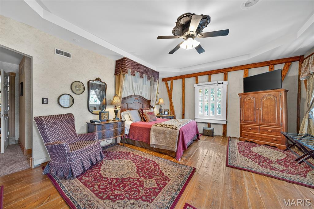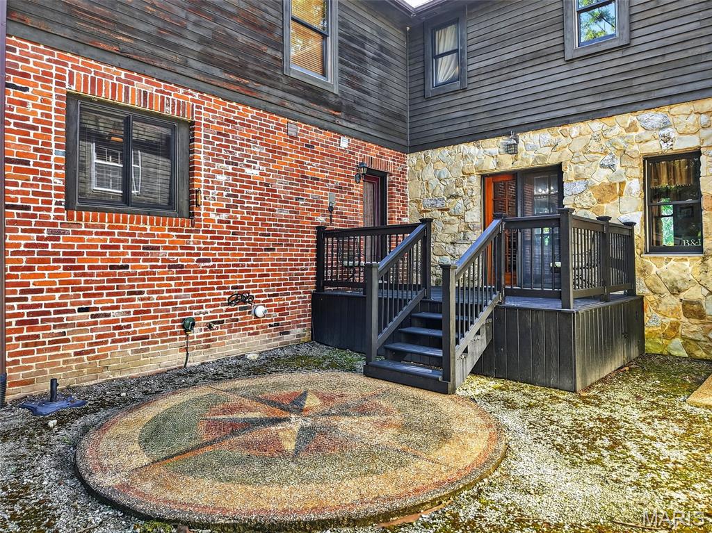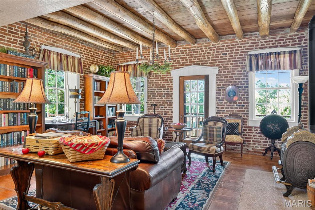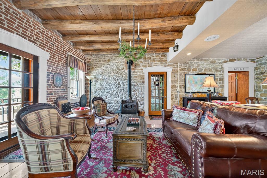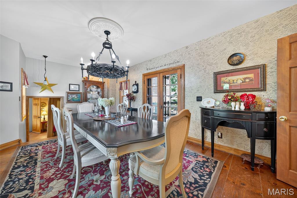 Welcome to The Applegate Inn. A beloved Bed & Breakfast (alternate use as primary residence) nestled in the heart of Augusta, Missouri, The Applegate Inn is a timeless retreat steeped in history and charm. Originally built in 1864, this beautifully preserved log cabin has seen thoughtful additions in the 1930s and 1980s, blending modern comfort with historic elegance. Much of the cabin’s original character endures—from its 24-inch stone walls and hand-hewn logs, to original brickwork, crystal door knobs, stained glass window, and authentic trim and hardwood flooring. The main house features: 3 spacious bedrooms 2.5 updated bathrooms A welcoming living room A fully equipped kitchen with adjoining breakfast room A separate dining room In addition, the property includes two private-entry suites, ideal for extended stays. Each suite offers: A cozy living room with a gas fireplace A full bathroom with sauna An efficiency kitchen Relax and take in sweeping views of Missouri Wine Country, America’s first designated AVA on the katy trail from the balcony with a spiral staircase, the outdoor deck, or the front porch. Situated on a private wooded lot, this property also includes an oversized two-car garage, patio, and is within walking distance to local wineries, shops, and restaurants. Nearby, discover the natural beauty of Klondike Park, offering hiking, picnicking, boating, swimming, and scenic river overlooks. Stroll the charming streets of this quaint, historic town, just 45 minutes from St. Louis. The Majority of furniture and contents will remain in the home. Duplicate listing MLS#25052135
