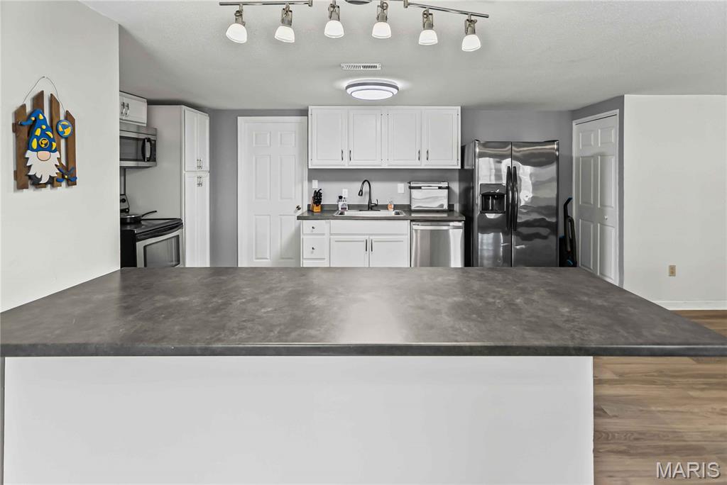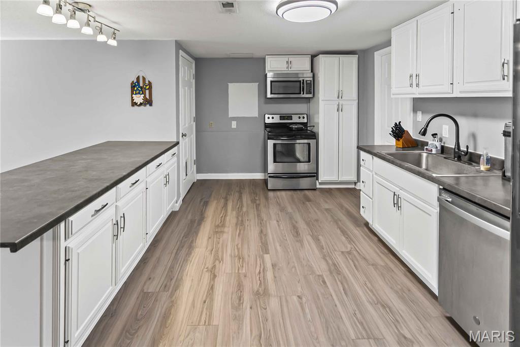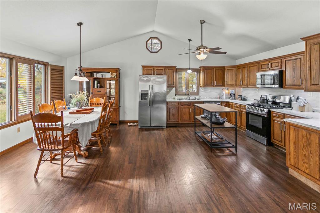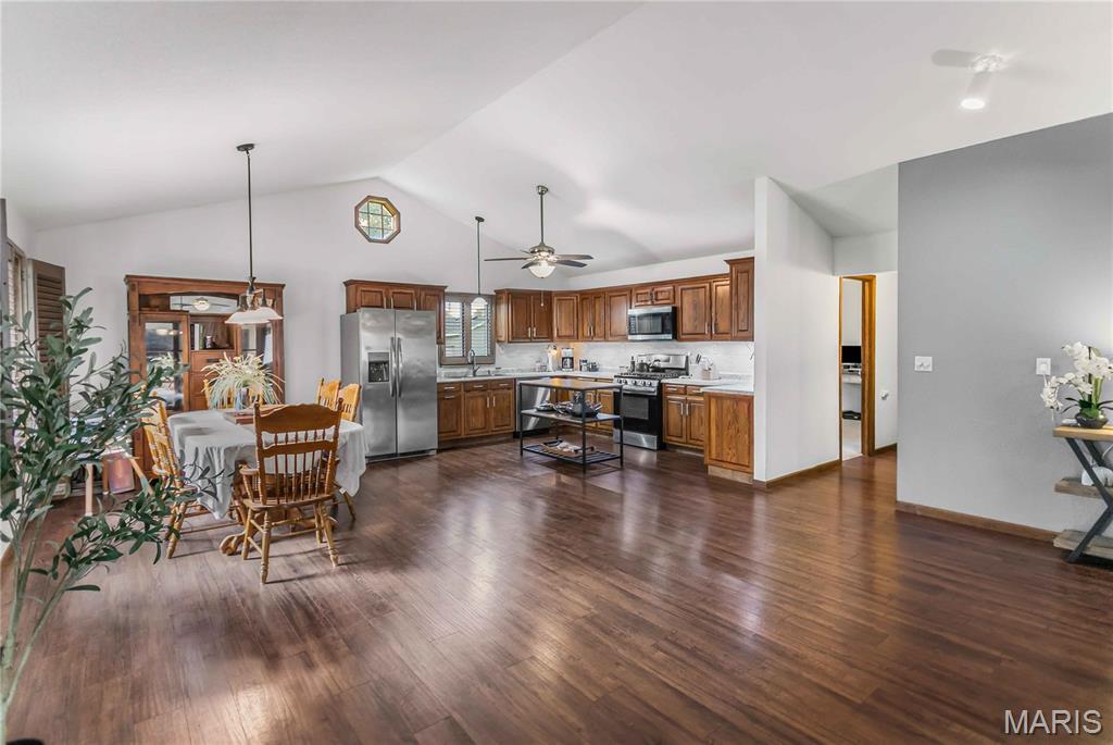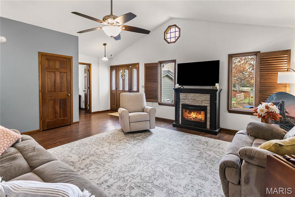 Welcome Home! Looking for that perfect ranch home with an open layout and room to grow? This beautifully designed property offers vaulted ceilings, a bright open floor plan, and a screened-in sun room, perfect for relaxing or entertaining. Step inside the huge great room with an open dining area, and a spacious kitchen with plenty of storage. A triple atrium door opens to the sun room, extending your living space to the outdoors! The main-floor primary suite includes a full bath and walk-in closet, while a second bedroom is conveniently located across the hall from another main level full bath. You’ll love the luxury vinyl plank flooring throughout and the ease of a main-floor laundry room. Downstairs, the finished walkout basement offers endless flexibility, featuring a family room, kitchen with an 8-ft breakfast bar, office area, and an additional laundry/utility room. There is also a bedroom, bonus bedroom and bath, making this an ideal setup for guests or multi-generational living. Step outside to enjoy the covered patio and fenced backyard, complete with a storage shed. The oversized 28x24 garage provides ample room for vehicles, storage, or a workshop. All this space is move-in ready and waiting for you! Don’t miss your chance to call this versatile and beautifully maintained home yours.