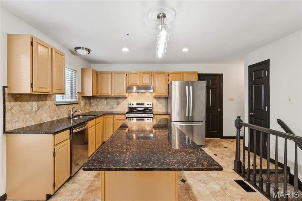 Welcome home to this spacious and beautifully maintained 3-bedroom, 2-bath ranch in the heart of Bridgeton, located in the highly sought-after Pattonville School District. With 2,081 sq ft of living space, this home offers the perfect blend of comfort, updates, and convenience. Step inside to a warm and inviting living room centered around a cozy fireplace, ideal for relaxing evenings or hosting guests. The kitchen shines with quartz counter tops, ceramic tile flooring, and plenty of workspace for cooking and entertaining. The open, functional layout makes everyday living effortless. Enjoy outdoor living on the newer, freshly painted deck, perfect for summer gatherings, morning coffee, or unwinding after a long day. The two-car garage provides ample parking and storage, while the architectural shingle roof adds peace of mind and curb appeal. Built in 1986, this well-cared-for ranch offers the ease of one-level living with generously sized bedrooms and a practical floor plan. Conveniently located near Highway 270, shopping, dining, and everyday amenities are just minutes away—making commuting and errands a breeze. If you’re looking for space, location, and move-in-ready comfort, this Bridgeton gem checks all the boxes. Schedule your showing today and see why this home stands out!