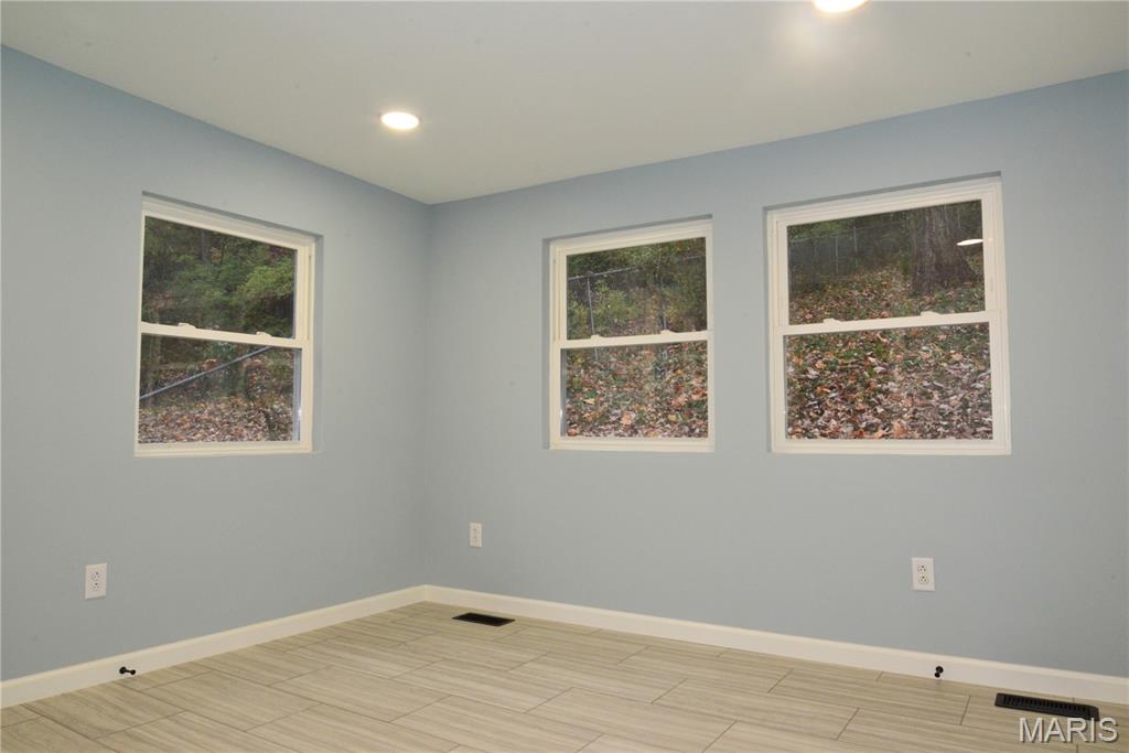 This charming 1930s home is move-in ready and beautifully blends original character with modern updates. Improvements include a brand-new roof, new HVAC, new water heater, updated plumbing, new sewer line,, and upgraded electric featuring a 220-amp sub-panel with an EV charger! Inside, you’ll find fresh paint, new lighting, and a mix of new flooring paired with original wood floors. The kitchen highlights a standout vintage cast iron farmhouse sink framed by original cabinetry, adding to the timeless charm. Both bathrooms are fully renovated with custom tile surrounds and modern finishes. Outside, the hilly yard has been terraced with a retaining wall, creating an inviting space to relax and enjoy the peaceful setting. This home is perfectly situated directly across from St. Clair County Greenspace, offering a natural view and added privacy.