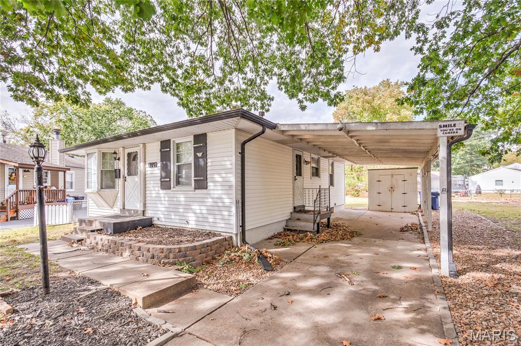 Adorable ranch bungalow in quiet cul de sac with FENCED BACKYARD, walkable to 13-acre Bangert Park (pool, trail & playground). Charming curb appeal with low-maintenance vinyl siding, enclosed soffit/fascia, attached carport and front post light accent. HARDWOOD FLOORS and breezy ceiling fans throughout. Bright living room with BAY WINDOW. Eat-in kitchen with gas range, vent fan, storage pantry, plus access to carport/backyard. Refrigerators stay. 3 bedrooms share hall bath with tiled tub/shower combo (glass door). 3rd bedroom has carpet covering hardwood. SAVE ON UTILITIES with attic fan and updated water heater. Opportunity downstairs to add more living space, plus laundry hookups and GENEROUS STORAGE. Large level fenced backyard - ideal for entertaining and gardening. Storage shed for toys/tools. Just 1 mile to Historic Old Town; near health care, shopping, restaurants and Highways 270/67.