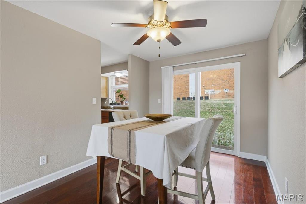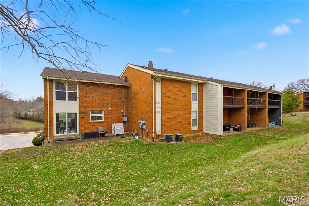 Sophisticated elegance meets modern comfort in this rare end-unit townhouse in the popular Greenbriar community. Perfectly positioned with unobstructed views of the inground pool and clubhouse, this stunning residence offers a sense of privacy and resort-inspired living. Step inside to discover three levels of beautifully maintained space, designed for both relaxation and entertaining. The lower level welcomes you with a spacious family room, complete with a wet bar, built-in shelving, newer luxury vinyl plank flooring, and direct access to the attached garage and laundry — ideal for unwinding or hosting guests. Upstairs, the main living area showcases a light-filled, open-concept layout where the living room, dining area, and kitchen flow seamlessly together. Sunlight pours through the south-southwest-facing windows, accentuating the warmth of the rich engineered wood floors and highlighting the gas fireplace — the perfect focal point for cozy evenings. The kitchen impresses with ample counter and cabinet space, a pantry, and a smooth transition to the dining area. Step outside through the sliding glass doors to your private concrete patio, bordered by lush common ground, ideal for morning coffee or summer gatherings. A convenient half-bath completes this level. On the third level, retreat to the generous primary suite, offering large bright windows, a walk-in closet, and access to a beautifully designed Jack-and-Jill bath featuring dual vanities and a shared tub/toilet area. A second spacious, sunlit bedroom and linen storage complete the upper level, offering comfort and thoughtful design. This remarkable home has been updated with modern wiring throughout, ensuring convenience and peace of mind. Beyond your front door, the Greenbriar community offers an unmatched amenity package: A clubhouse, fitness center, swimming pool, tennis and basketball courts, and paved trail, delivering the perfect blend of leisure and lifestyle with easy access to I-270 at Big Bend. Whether relaxing by the pool, entertaining in style, or enjoying the effortless flow of natural light and contemporary design, this Greenbriar townhome invites you to experience elevated living in its finest form. UPDATES: HVAC, water heater, and luxury vinyl plank in 2025; electrical remediation in 2023. Sewer and trash included in HOA fees.