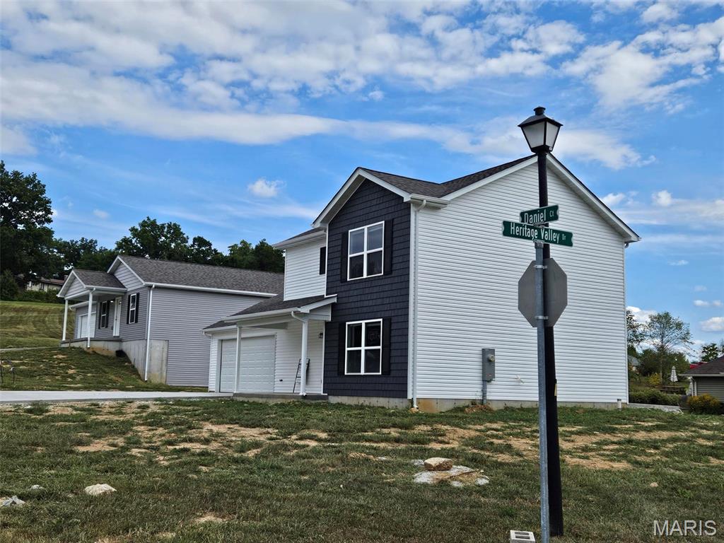 Brand New Home Move-In Ready ! Welcome to your future home in the quiet cul-de-sac in Heritage Valley Subdivision in New Haven, MO! This stunning 3-bedroom, 2.5-bath newly constructed residence is move in ready now. Situated on a desirable corner lot, this 1,486 sq. ft. home is designed for comfort, function, and modern living. The home features a slab foundation and includes an attached 2-car garage for your convenience. The main floor offer spacious open-concept living area ,convenient main floor laundry room, with half bath. Stainless steel kitchen appliances with walk-out access to a private patio perfect for entertaining. Upstairs Comfort includes three bedrooms, including a spacious primary suite ensuite bathroom with a large walk-in closet. Inviting front porch adds charm and curb appeal. Whether you're a first-time homebuyer or looking to upgrade, this home offers style, space, and a welcoming neighborhood. Don't miss your opportunity to make this beautiful new build your own! Home comes with 1 year home warranty by the builder. New sod will be will be installed prior to closing.
