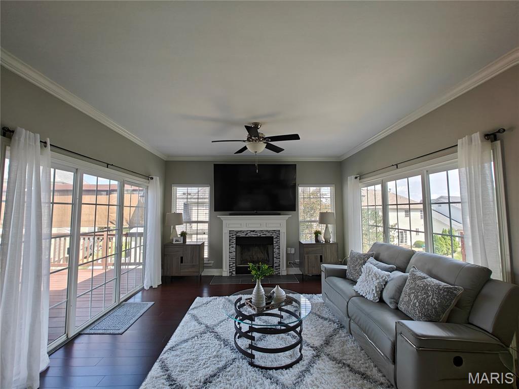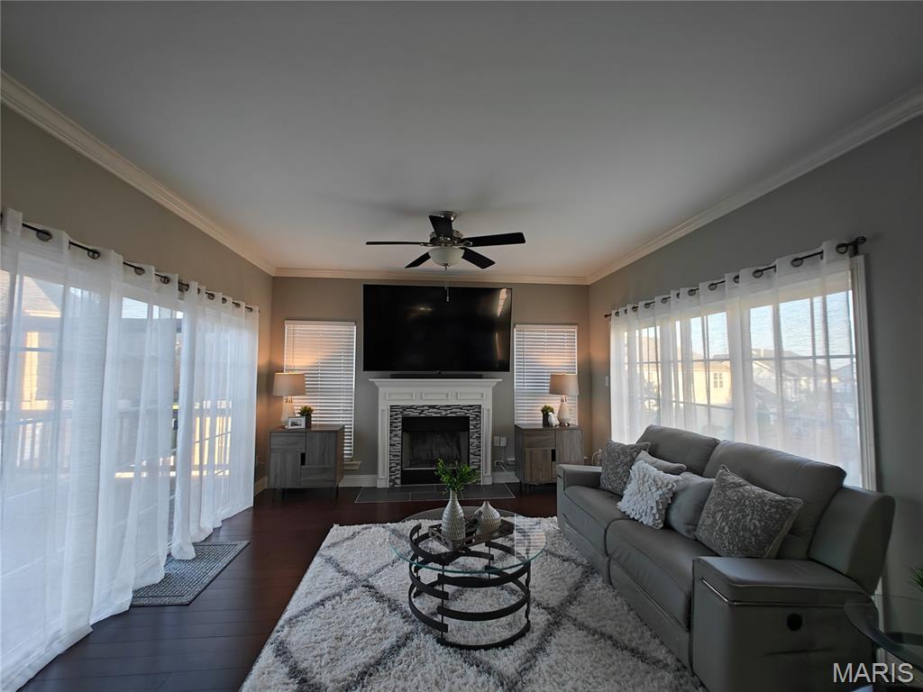 Improved Price and Motivated Sellers, Come take a look today. Step into this stunning 4-bedroom home offering exceptional space and elegant finishes throughout. The main floor welcomes you with an inviting foyer flanked by a formal dining room and a dedicated office both showcasing wainscoting, crown molding, and gorgeous bamboo flooring. The impressive great room features soaring Palladian windows and a gas fireplace with stone surround, filling the space with natural light and warmth. The gourmet kitchen is a chef’s dream with custom soft-close cabinetry, under-cabinet lighting, a walk-in pantry, center island with seating, and stainless steel appliances. Just off the kitchen, you’ll find the main-floor laundry and a cozy hearth room with a second fireplace and access to the expansive deck which is perfect for entertaining. The main-floor primary suite offers a serene retreat with a coffered ceiling, walk-in closet, and a spa-inspired bath complete with dual sinks, soaking tub, and separate shower. Upstairs, a spacious loft anchors three generously sized bedrooms, including a Jack-and-Jill bath plus an additional full bathroom. The walkout lower level is ready for your vision, featuring egress windows, a rough-in for a full bath, and partially prepped areas for future finishing. Located on a 1/3-acre corner lot with quick access to Hwy 40 and Hwy K, this home combines luxury, comfort, and convenience. The home is vacant and available for a quick closing.