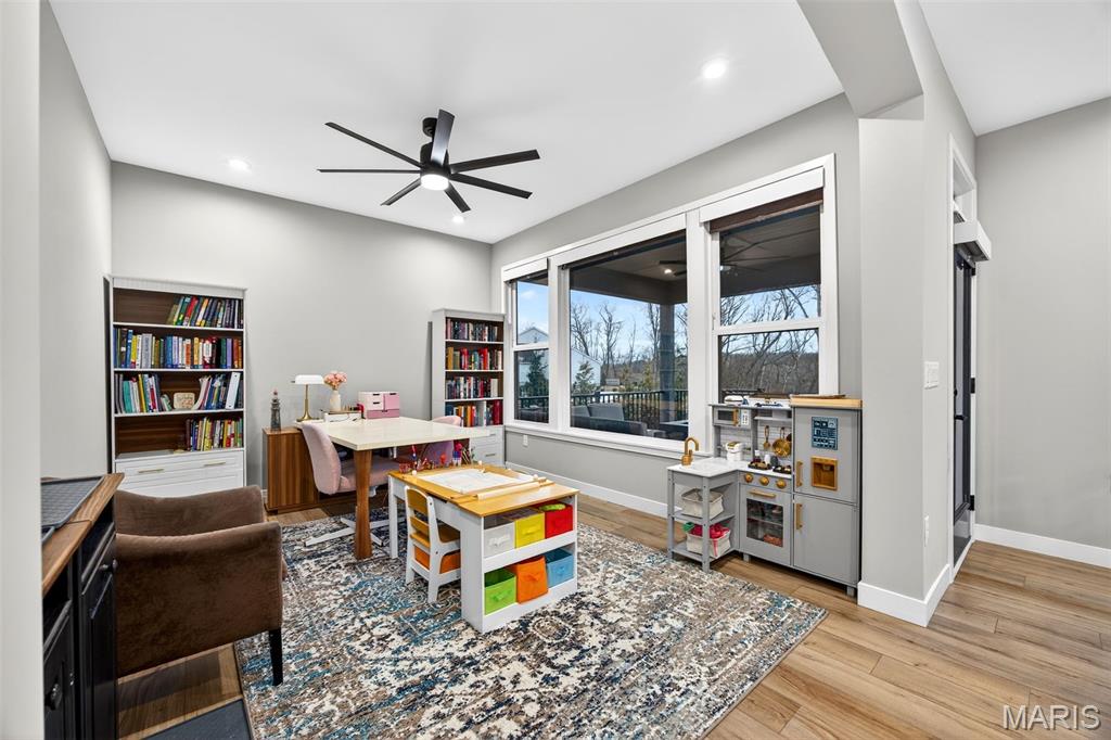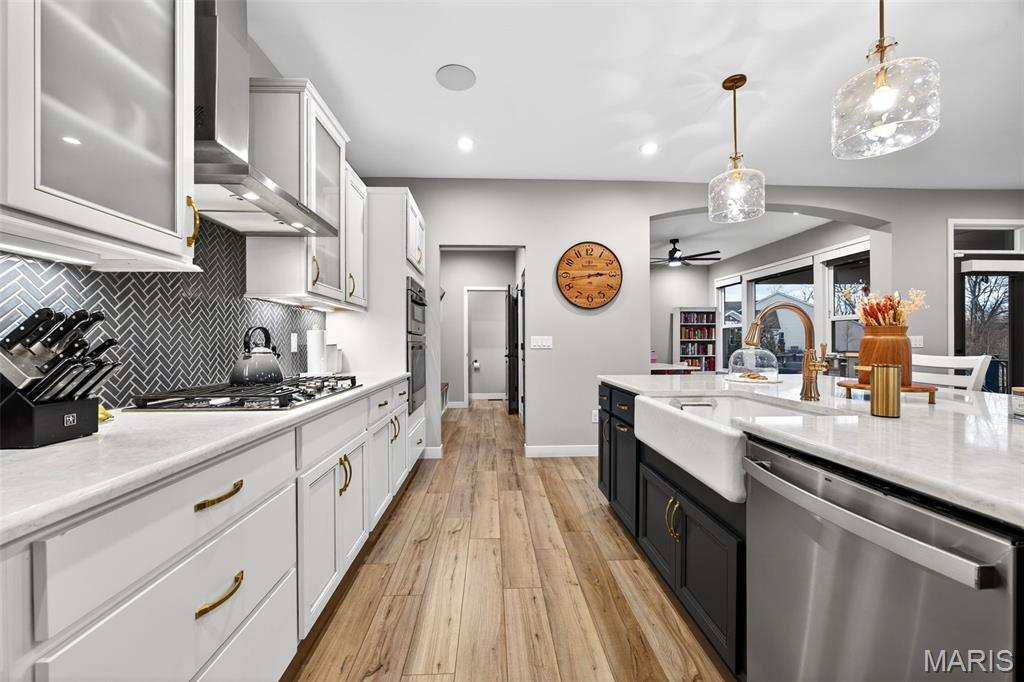 Loaded with UPGRADES and then some, this stunning 4-year-young home features 4 bedrooms, 3.5 baths, and a 3-car garage, packed with extras you’ll want to see for yourself. Enjoy arched doorways, a floor-to-ceiling stone fireplace, custom bookcases with dimmable accent lighting, high ceilings, crown molding, tinted windows, built-in internet boosters, surround sound, and more. The open floor plan presents a great room with fireplace, a massive quartz kitchen island perfect for entertaining, stainless steel appliances, a dining area, and a bonus room to suit any of your needs. There’s also a private enclosed office with beautiful french doors, a finished walkout lower level with its own sleeping room, full kitchen, and bath—ideal for guests or extended family. The heated garage comes with custom lighting and EV wiring, while the laundry room is conveniently upstairs near all bedrooms. The OVERSIZED primary shower is custom-tiled with dual shower heads and jetted sprays. Step outside to a covered composite deck with a peaceful wooded view or relax on the lower patio—perfect for both hosting gatherings and enjoying quiet moments at home. Don't forget all the extra amenities that the Streets of Caledonia has to offer with a pool, clubhouse, playground, walking trail and located near restaurants! Come see this beautifully cared for and well maintained home and call it yours before it's gone!