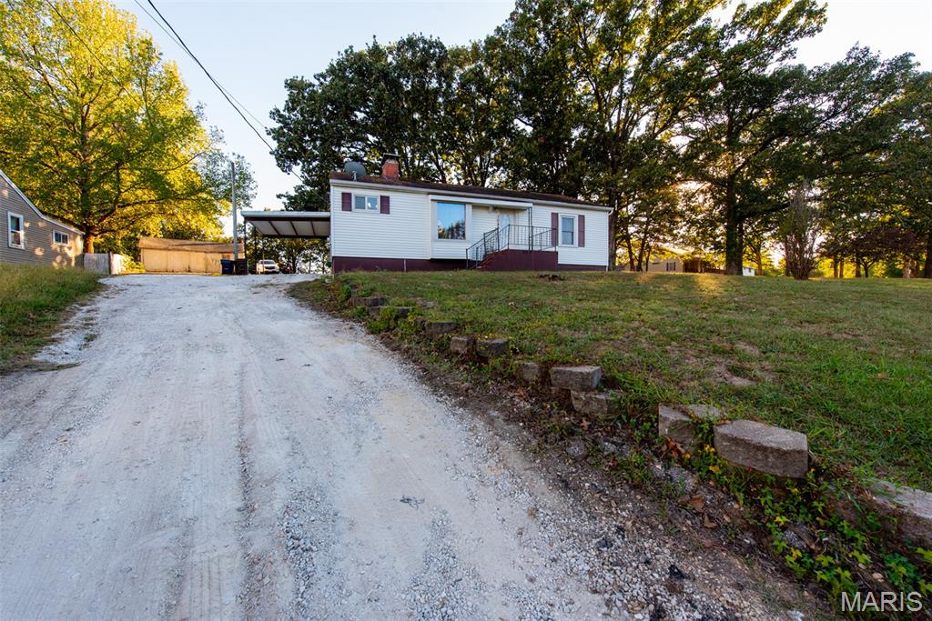 BIG PRICE REDUCTION FOR QUICK SALE!!!!! Check out this Country house on spacious lot, with plenty of room for large out building. 2 Bedroom ranch, main floor laundry, all weather enclosed back porch, Wood floors, Ceramic floors, full basement, carport, plenty of parking and room for a garage or out building. Lots of cabinets, spacious living room, wide hallway. Shaded back yard. Large mudroom with washer and dryer hookup. Private well, and public sewer. No HOA, No restrictions. New Furnace and A/C. Great house close to Hwy 44, schools and shopping.