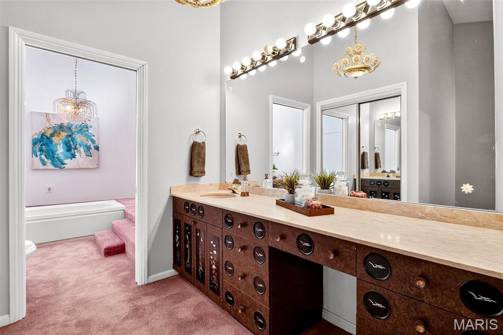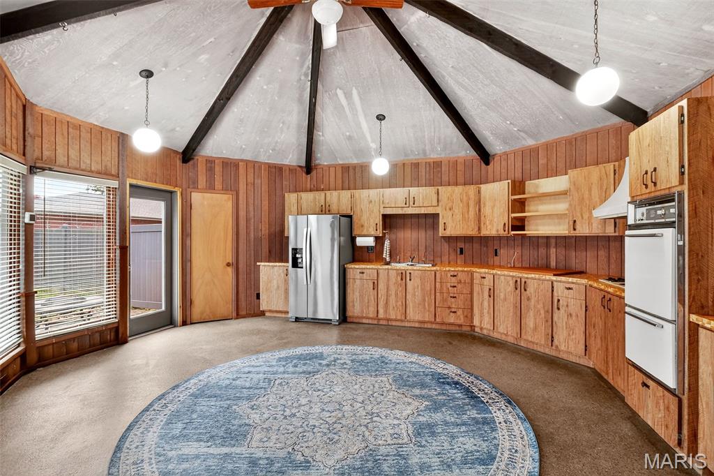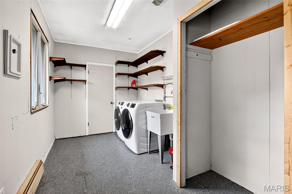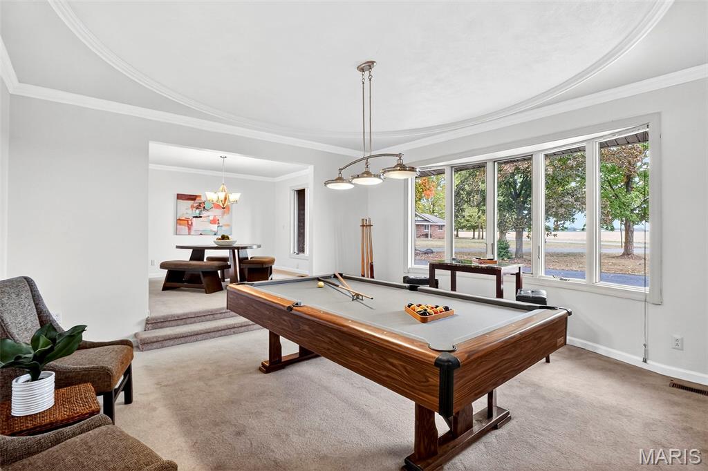 Brick Ranch in Alhambra – Move-In Ready in Highland School District! This spacious 3,200 sq. ft. brick ranch on a corner lot blends classic charm with thoughtful updates and plenty of room to grow. Built in the 1970s and located in a well-established Alhambra neighborhood, this home offers 3 bedrooms, 3.5 baths, and generous living areas throughout. The large primary suite features a sitting area, three closets (two walk-ins), and two full bathrooms—a rare layout perfect for comfort and convenience. A sliding door opens to the enclosed sunroom with vaulted ceiling, built-in cabinets, and a cozy wood-burning stove, ideal for year-round relaxation. Enjoy multiple living spaces, including a living room, recreation room, and formal dining area. The eat-in kitchen includes, a newer cooktop, dishwasher, and garbage disposal. The home is wired for sound and features updated LVP and carpet flooring with many rooms freshly painted. The oversized two-car side-entry garage adds curb appeal and includes a new epoxy floor. The laundry room offers backyard access, a toilet, and a utility sink. The fully fenced backyard features a detached building with a kitchen and mini-split system—ideal for a guest suite, office, or hobby space. Recent upgrades: new HVAC system, roof, soffit, fascia, gutters, stamped concrete front porch and rear patio, PVC sewer line, storm door, interior paint, and remodeled bedrooms and baths. Located within the Highland School District, residents enjoy wide lots, mature trees, and a small-town atmosphere just minutes from Highland, Edwardsville, and Troy. Easy access to I-55 and I-70 makes commuting to St. Louis and the Metro East a breeze. Included personal property: pool table, small bar table with two stools, dining room table, kitchen table and chairs, and flat-screen TV in family room. (Lawn mower, wheelbarrow, and dart board not included.)