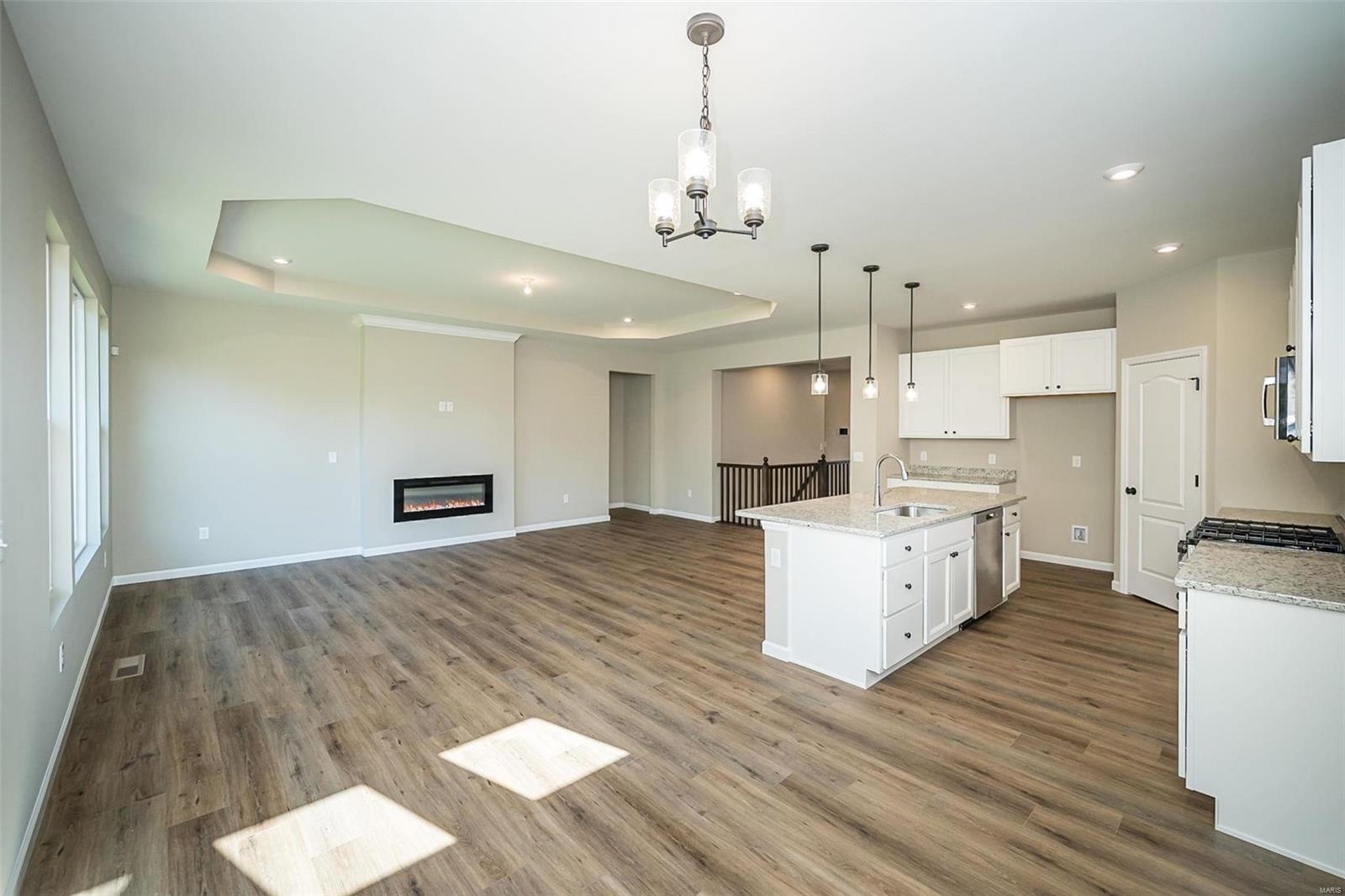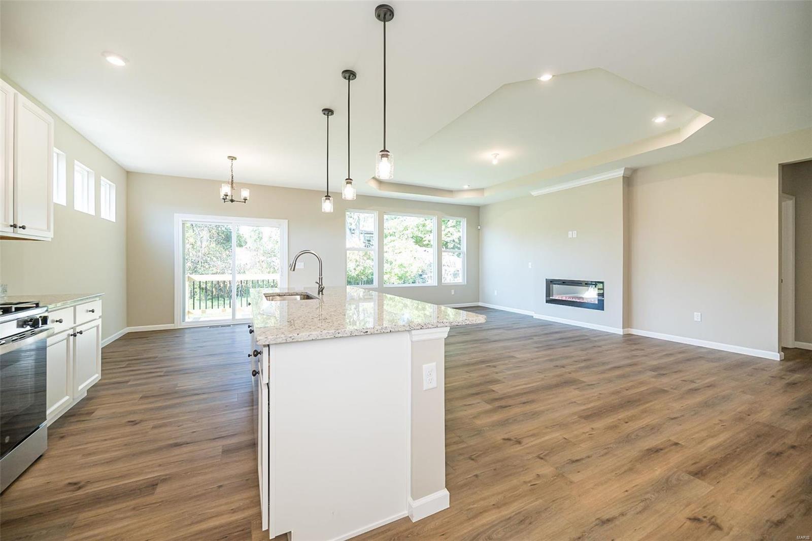Stylish new DaVinci Western Craftsman plan by Fischer Homes in beautiful Henley Woods featuring a welcoming covered front porch. Once inside you'll find an open and airy design with an island kitchen with stainless steel appliances (gas range), upgraded cabinetry with 42 in uppers and soft close hinges, gleaming granite counters, walk-in pantry and walk-out morning room and all open to the oversized family room with a tray ceiling and linear fireplace. The tucked away homeowners retreat includes an en suite with a double bowl vanity, soaking tub, separate shower and walk-in closet. There are 2 additional bedrooms with a centrally located hall bath. Full basement with full bath rough-in and a 2 bay garage.