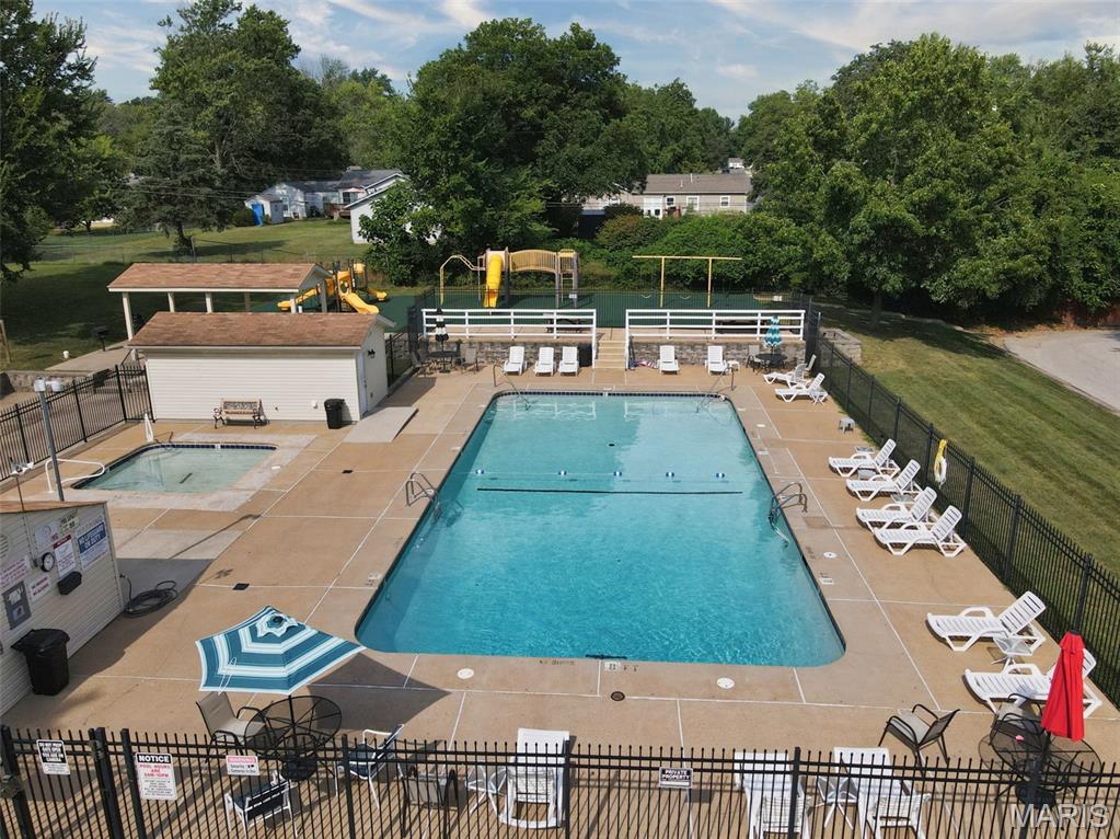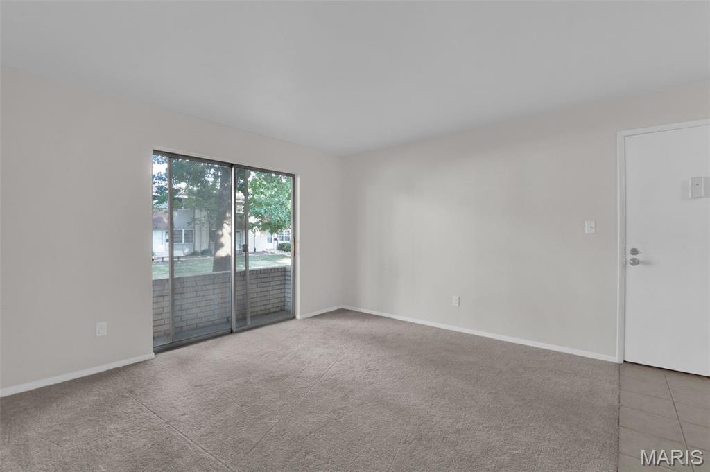NEW WINDOWS JUST INSTALLED Excellent Ballwin Location | Top Notch Rockwood Schools | Affordable open concept living | Heart of shopping and restaurants. Welcome | Neighborhood Pool | Kids Play-yard | Park like central courtyard | Mature trees | Garage parking + Reserved parking lot spot | Electric Panel upgrade 2024 | New dishwasher | 2025 - New Carpet, New Paint, New Countertop, Bathroom remodel, New clothes washer Welcome to this cozy low maintenance apartment style condo with 2 bedrooms and 1.5 bath with almost 900 sq. ft. of living space. Upon entering you see living room to the right that also leads to the patio with sliding glass door. The other side is the dining area with tiled floors. Kitchen has white cabinets, new SS dishwasher, gas cooktop, new white countertop. Hallway leads to the half bath, master bedroom with its own bath and additional bedroom. There is a garage spot and also a reserved parking lot space. Washer & dryer and additional storage are in the basement