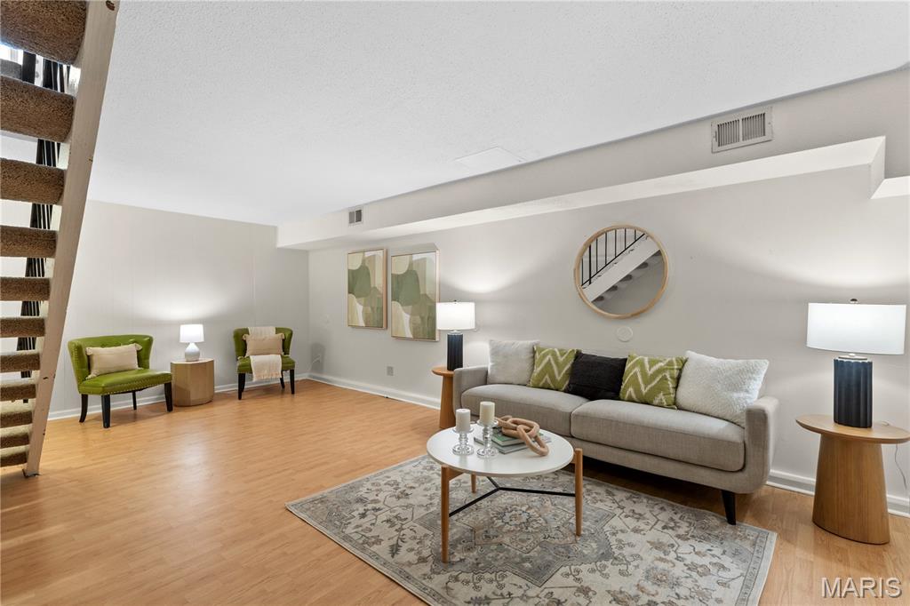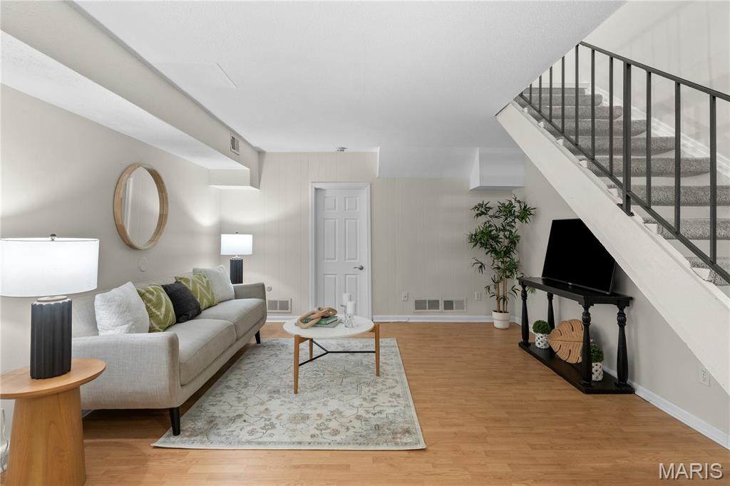 This is the perfect opportunity for a new home owner. This updated 2 bed, 1.5 bath townhouse is in a great location close to local shops, parks, and restaraunts in the sought after Parkway South School District. Enter the naturally sunlit entry foyer and find the tastefully updated half bath and eat-in kitchen with plenty of counter space, stainless steel appliances, bright white cabinets with plenty of storage and well maintained ceramic tile floors. The spacious cozy sunken great room looks out to the forest behind and the private patio perfect for entertaining. Upstairs, find the updated hall full bath and large master bedroom and second bedroom. The basement is finished for extra living space with plenty of storage. Great condo association with pool and clubhouse! The roof and gutters are new and were replaced just last year! What's not to love.