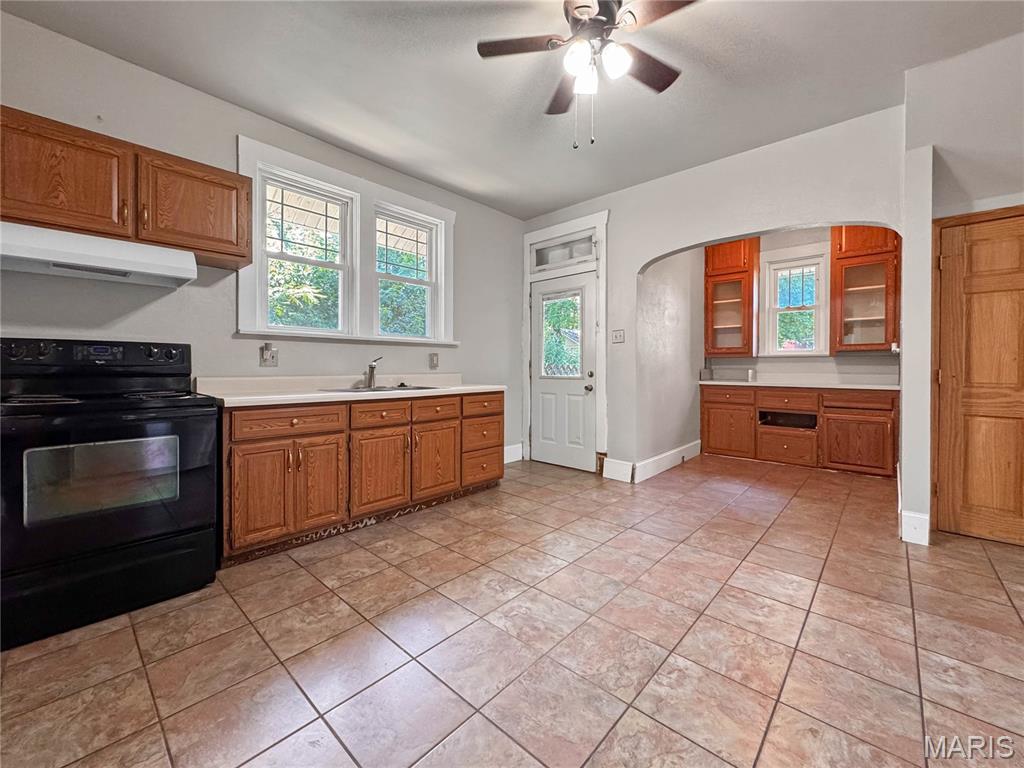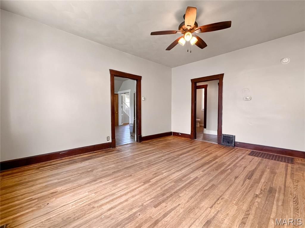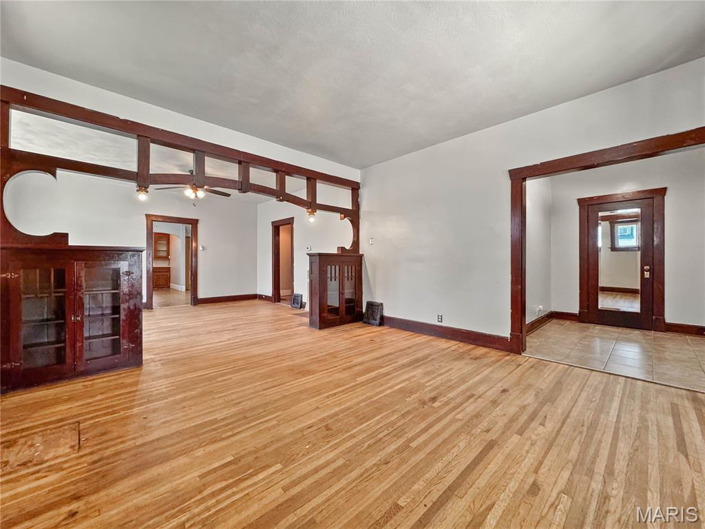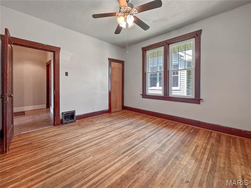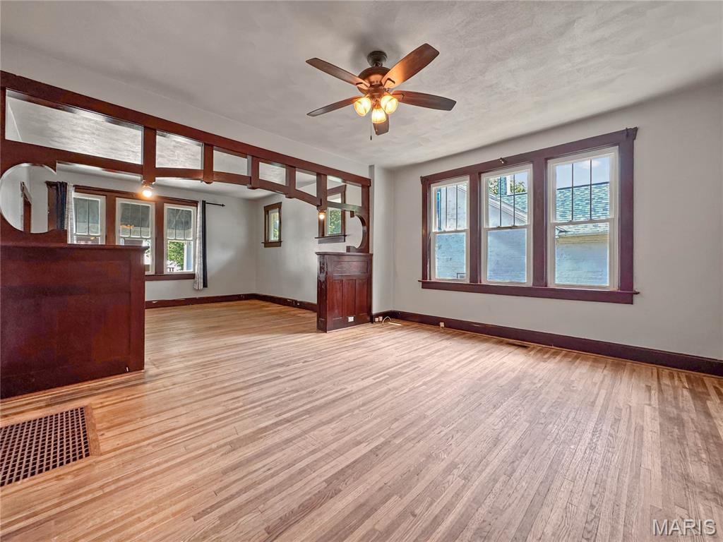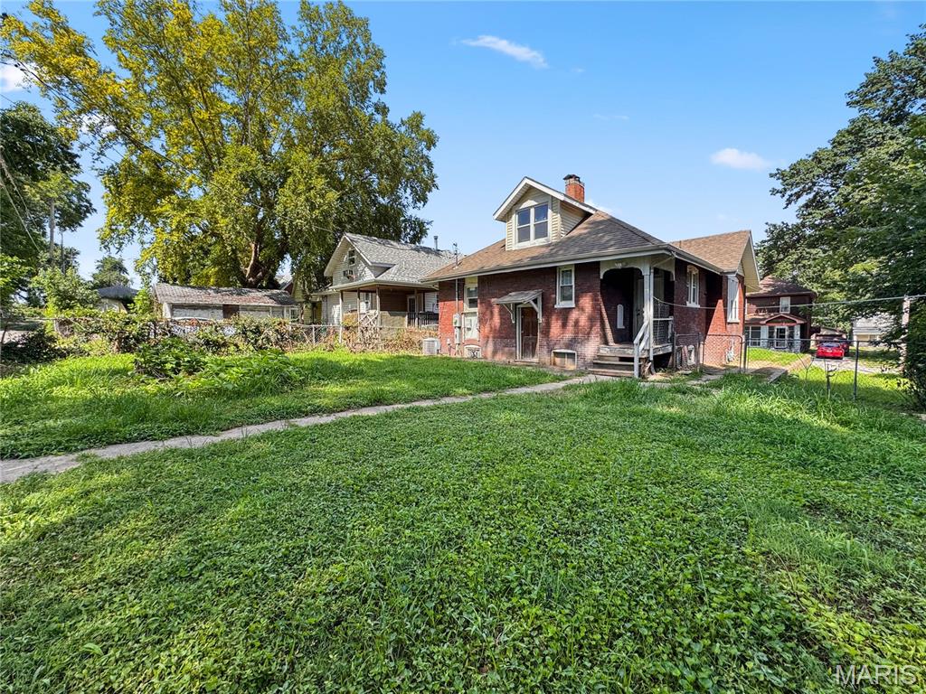 The 1920s were starting to roar when this big bungalow with 1800+ sq. ft. above grade came to 5th Street. All brick with tons of charm and art deco nods throughout. Large covered porch, perfect for sit and sip summer evenings. Fenced back yard, perfect for play or entertaining. Large formal foyer will charm as you stroll into the huge open living/dining with high ceilings and stunning wooden center beam with built in display cabinets on either end. Dining room is the heart of this home with access to living, kitchen and sleeping areas. Large eat in kitchen will be a chef's delight with tons of space to stretch your creativity. Charming butler pantry is tucked away within an arched wall. 2 nice size bedrooms and central bath with tub/shower combo on the main. Frosted French doors take you to the original staircase and upper level 3rd bed suite complete with sleeping area, flex space and new bath with garden tub. Huge walk up basement with lots of space has been recently tuckpointed. This home is move in ready and can accommodate a fast close.
