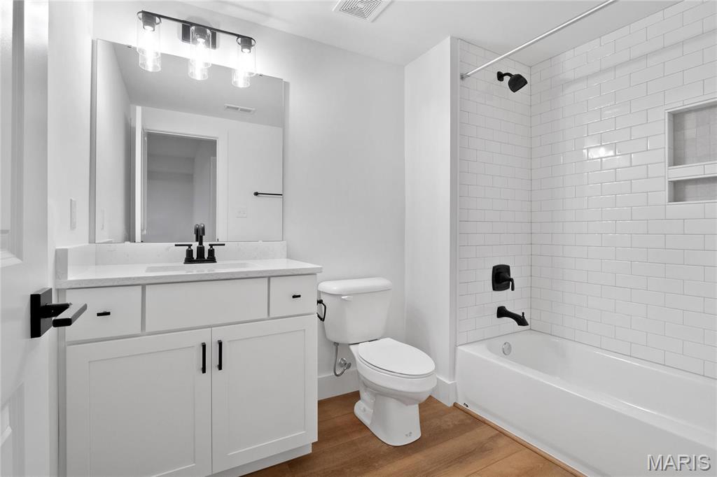 New custom modern farmhouse home just completed in Brentwood across the street from Memorial Park. This 5 bedroom, 3.5 bath home features 9' first floor ceilings, built-in bookcases on each side of fireplace in family room with shiplap above, hardwood flooring all of 1st floor and 2nd floor hall, full overlay custom kitchen cabinets with soft close solid wood drawers, crown molding, stainless steel appliances, Quartz countertops with undermount sink, coffered ceiling in master bedroom, luxurious master bath with double sinks, stand alone tub and shower, and walk-in closets, Quartz countertops in all baths, custom millwork with 3-panel doors with 3 1/4 inch casing and 5 1/4 inch base molding. Finished lower level with rec room, full bath, and bedroom. Fully sodded yard, 1 year builder warranty and 10 year structural warranty.