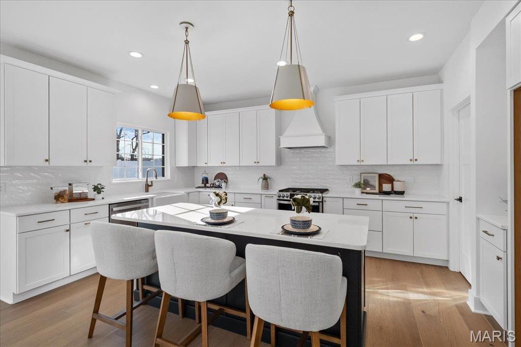 New custom modern farmhouse home just completed in Brentwood. This 5 bedroom, 3.5 bath home features 9' first floor ceilings, built-in bookcases on each side of fireplace in family room with shiplap above, hardwood flooring all of 1st floor and 2nd floor hall, full overlay custom kitchen cabinets with soft close solid wood drawers, crown molding, stainless steel appliances, Quartz countertops with undermount sink, coffered ceiling in master bedroom, luxurious master bath with double sinks, stand alone tub and shower, and walk-in closets, Quartz countertops in all baths, custom millwork with 3-panel doors with 3 1/4 inch casing and 5 1/4 inch base molding. Finished lower level with rec room, full bath, and bedroom. Fully sodded yard, 1 year builder warranty and 10 year structural warranty. Prestige Custom Homes to build another 2 new homes on the 2 empty lots to the south of this home COOL: 14 SEER+