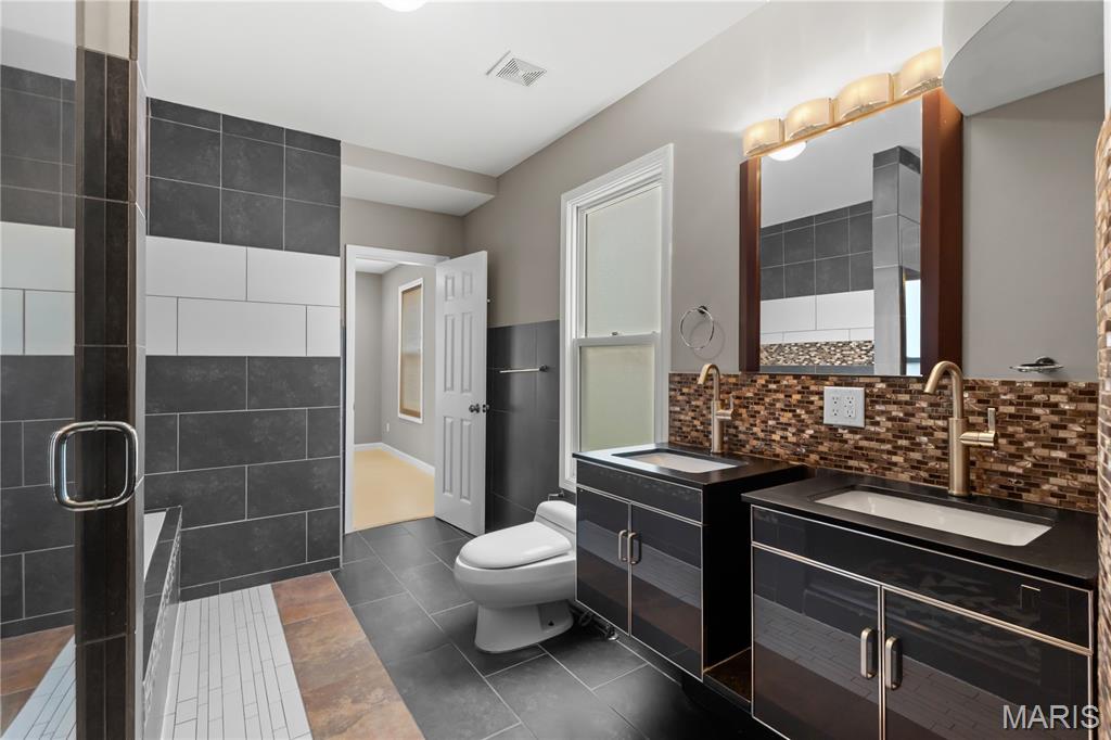 Full remodel and rear addition completed in 2018 at a cost of $486,000. Seller financing offered. Contemporary European custom design throughout. Gourmet kitchen with center island, high-end stainless appliances, designer pendant lighting, floor-to-ceiling cabinetry, breakfast bar, combination Black Emerado and salt & pepper granite countertops, and counter-depth KitchenAid refrigerator. First and second floor laundry. Abet Laminati and Mieno Oak Columbia Cascade wood floors. Curved walls. Elaborately accessorized custom walk-in closets. Luxury master suite with sitting area and private deck access. Italian Lacava bathroom fixtures. German laminate and Black Lacquer custom cabinetry throughout. Large rear patio. Recessed lighting. Ceiling fans. Bright living room with built-ins. Kenmore Elite washer/dryer included. All new electrical, plumbing, sewer, dual HVAC, and 80-gallon water heater. Large rear parking pad and garage. Quiet street. Walk to Brentwood Park. Quick access to 40/64. Seller financing available.