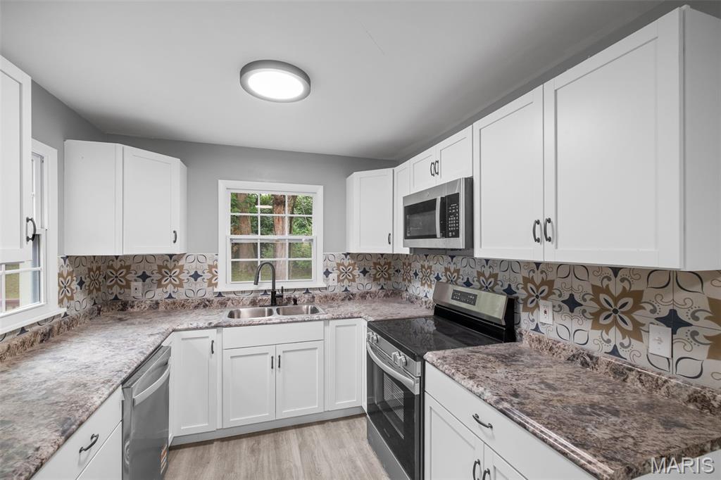 Motivated Seller! Welcome to 2639 Louis Ave, a beautifully renovated home in the highly sought-after Brentwood neighborhood offering the perfect blend of modern updates and timeless charm. This spacious 4-bedroom, 2-bath residence features brand new vinyl plank flooring throughout, freshly painted interiors in a neutral palette, & abundant natural light that creates a bright, welcoming atmosphere. The fully updated kitchen is a chef’s delight with sleek white cabinetry, granite countertops, a stylish patterned backsplash, and brand new stainless steel appliances, including a dishwasher, built-in microwave, & oven/range, complemented by ample storage and a convenient pass-through window. Both full bathrooms have been tastefully renovated, w/ the main bath showcasing spa-like finishes such as floor-to-ceiling marble-look tile, a new tub and shower, a contemporary vanity, and mosaic flooring. Additional living spaces include a finished basement with a lounge/bar area, an extra bedroom, and storage, as well as a charming attic bonus room with new flooring, ideal for a home office, reading nook, or flex space. Comfort is ensured with an energy-efficient HVAC system and upgraded lighting throughout. Outside, enjoy a large backyard perfect for recreation and relaxation, along with a spacious deck for entertaining. Situated in an excellent school district and just minutes from Forest Park, local shopping, dining, and major highways, move-in ready and perfectly positioned for convenience and lifestyle.
