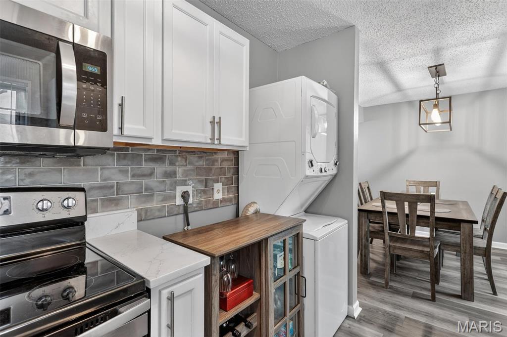 Work in the Jungle? Live in the Forest! Updated TWO BEDROOM & TWO FULL BATH Brentwood Forest second-floor, one-level condo w/deck overlooking common ground. Significant remodel. Renovated kitchen w/new granite white counters, ceramic tile backsplash, sink, built-in microwave, dishwasher, refinished cabinets, & refrigerator (stays). Fully renovated primary bath w/new sink/vanity, backsplash, mirror, toilet & tiled shower & floor. Renovated guest full bath w/new toilet, tile flooring, backsplash & mirror. New staircase. New premium vinyl plank flooring & updated lighting throughout. New hot water heater, washer/dryer (stays), sliding door, ceiling fans, hardware & outlets. Second floor unit (1107 sqft/large Timberline floor plan) at end of tree-lined street backs to common ground & has side yard. Easy-access off-street parking. Centrally located Brentwood Forest has two swimming pools, tennis courts, walking trails, & clubhouse w/community activities. A beautifully landscaped subdivision w/pond w/gazebo. Just south of HWY 64/40 off Brentwood Blvd, near The Galleria, shopping & restaurants. HOA fee includes: water, sewer, trash, some insurance, landscaping & exterior maintenance & snow removal. Well-maintained, spit-spot clean & Move-In Ready.