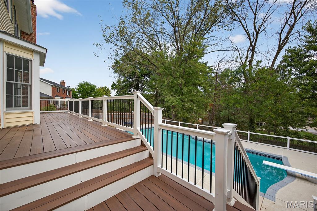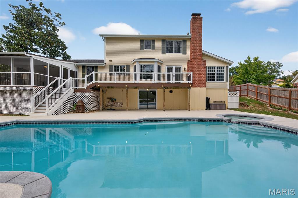 This Scarborough one and one half story home welcomes you with curb appeal and an inviting front porch. Step inside to the main level primary suite featuring a private ensuite with walk-in closet, separate tub, and shower. The kitchen impresses with granite counters, stainless steel appliances including a double wall oven and gas cooktop, hardwood floors and a bay window breakfast area filled with natural light. French doors extend the kitchen to a composite deck, while a screened porch and patio provide additional options for entertaining. Crown molding highlights the craftsmanship throughout, and the dining room features a classic bench window. Two brick fireplaces, one in the main family room and one in the finished lower level, add warmth and character. Upstairs, three bedrooms and a full hall bath provide plenty of space for family or guests. The walkout lower level adds even more to love with detailed wainscoting, a large family room, a recreation room with wet bar, and a full bath, offering space for game nights, a home gym, or a play zone after pool time. The backyard is the showpiece, centered around an inground pool and spa combination that creates the ultimate gathering place for relaxation and fun! A newly replaced driveway in 2024 adds fresh appeal to this already impressive home. Every inch is designed for living large, entertaining with ease, and embracing the Scarborough lifestyle. Homes here move quickly, so do not miss your chance!