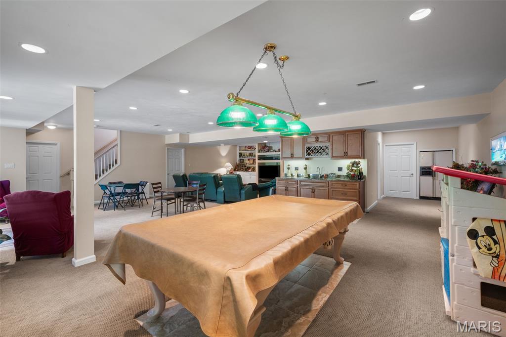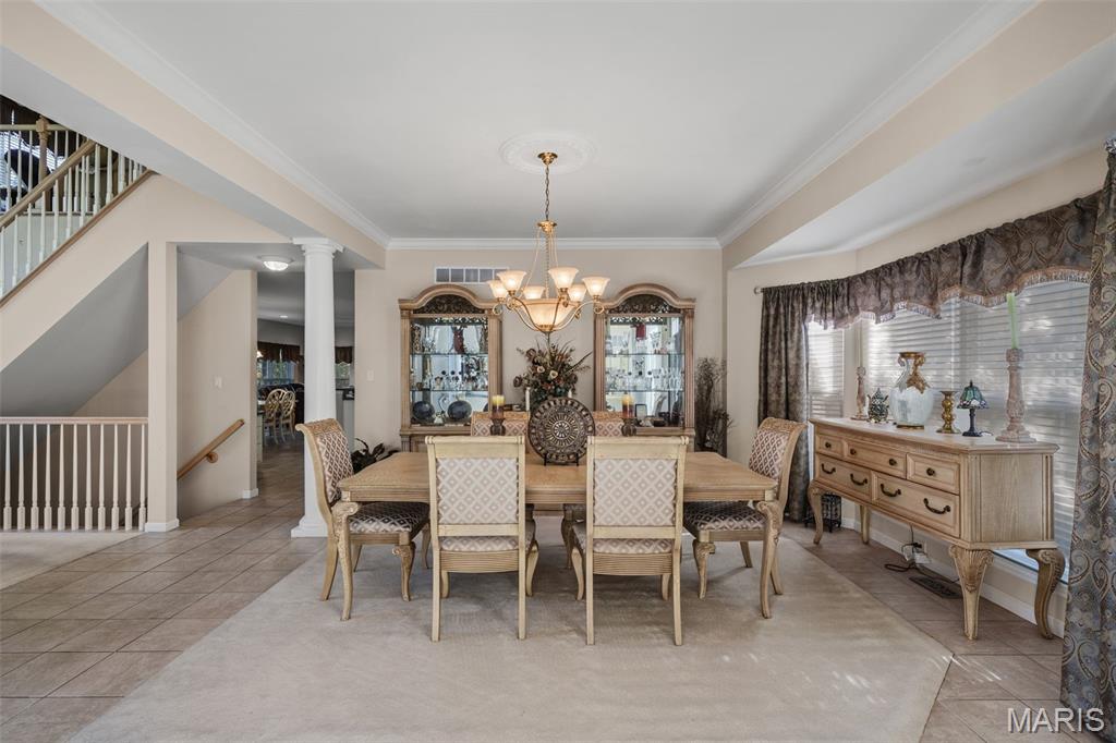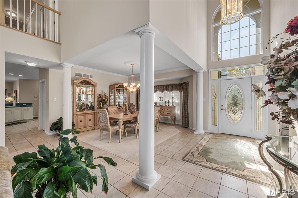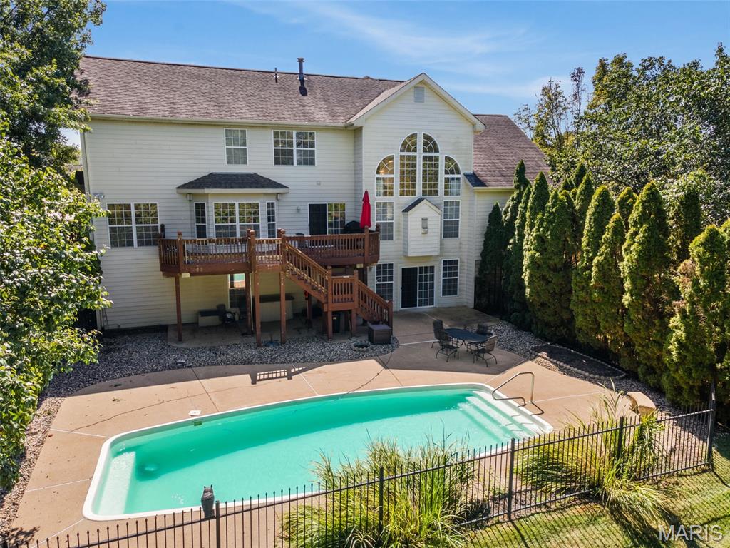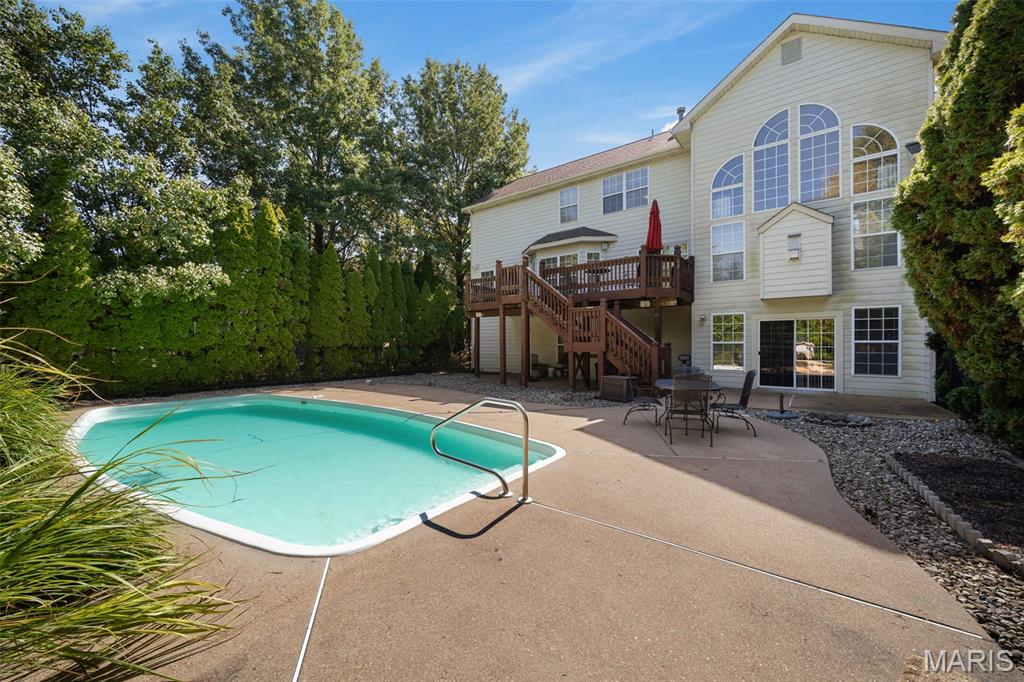 Nestled on a beautiful half-acre lot and with over 4,700 square feet of living space, this 4-bedroom, 4.5-bath home offers versatility and comfort throughout. You’ll love the soaring ceilings and abundance of natural light streaming through the arched windows. The dining room, enhanced with detailed millwork, sets the stage for memorable gatherings, while the open kitchen offers wraparound counters, a walk-in pantry, and breakfast nook. The cozy hearth room adds to the charm while the versatile home office, mudroom/laundry area, and convenient guest bath round out the main level. The phenomenal primary suite boasts vaulted ceilings, a walk-in closet, and a luxurious bath. Upstairs, you'll find three additional bedrooms that share a bath, while the loft area provides space for hobbies. The finished lower level expands the living area with multiple recreation zones, a kitchenette, and abundant storage and workshop space. Walkout access leads to the backyard oasis, where mature trees surround the in-ground pool. Located just minutes from parks, shopping, and dining, this home offers both convenience and enduring value. This property has built-in equity and presents an exceptional opportunity for you to add your updating touches as you prepare to live, grow, and thrive in one of Chesterfield’s most sought-after neighborhoods.