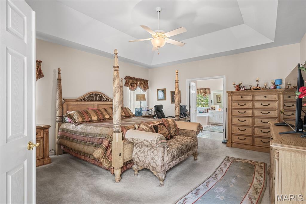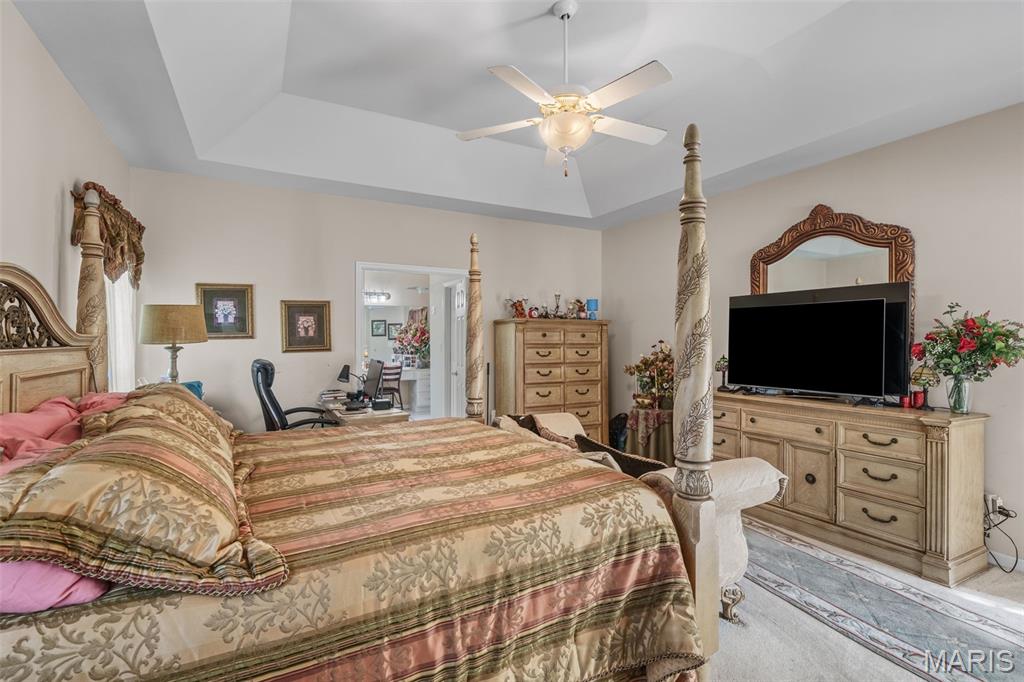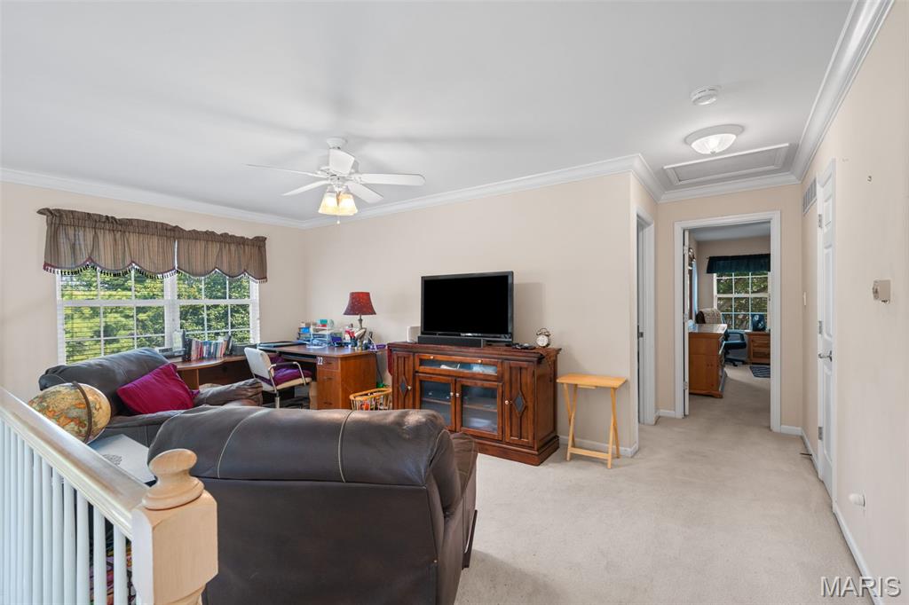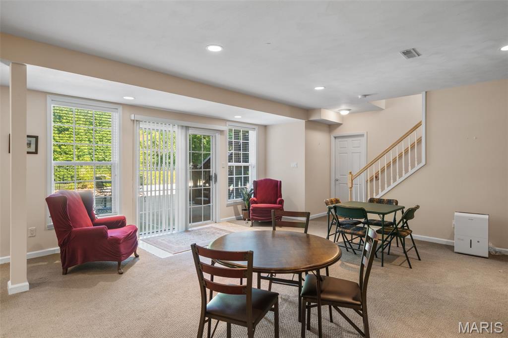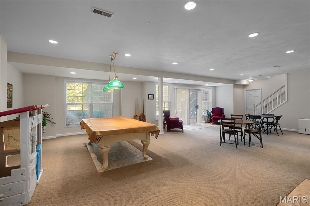 Nestled on a beautiful half-acre lot and with over 4,700 square feet of living space, this 4-bedroom, 4.5-bath home offers versatility and comfort throughout. You’ll love the soaring ceilings and abundance of natural light streaming through the arched windows. The dining room, enhanced with detailed millwork, sets the stage for memorable gatherings, while the open kitchen offers wraparound counters, a walk-in pantry, and breakfast nook. The cozy hearth room adds to the charm while the versatile home office, mudroom/laundry area, and convenient guest bath round out the main level. The phenomenal primary suite boasts vaulted ceilings, a walk-in closet, and a luxurious bath. Upstairs, you'll find three additional bedrooms that share a bath, while the loft area provides space for hobbies. The finished lower level expands the living area with multiple recreation zones, a kitchenette, and abundant storage and workshop space. Walkout access leads to the backyard oasis, where mature trees surround the in-ground pool. Located just minutes from parks, shopping, and dining, this home offers both convenience and enduring value. This property has built-in equity and presents an exceptional opportunity for you to add your updating touches as you prepare to live, grow, and thrive in one of Chesterfield’s most sought-after neighborhoods.