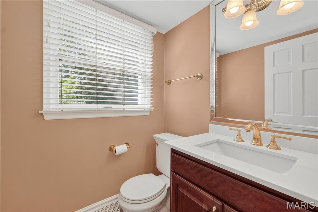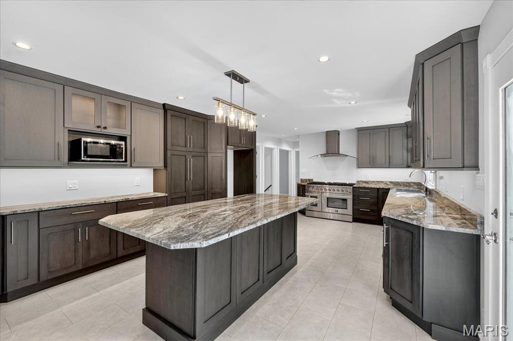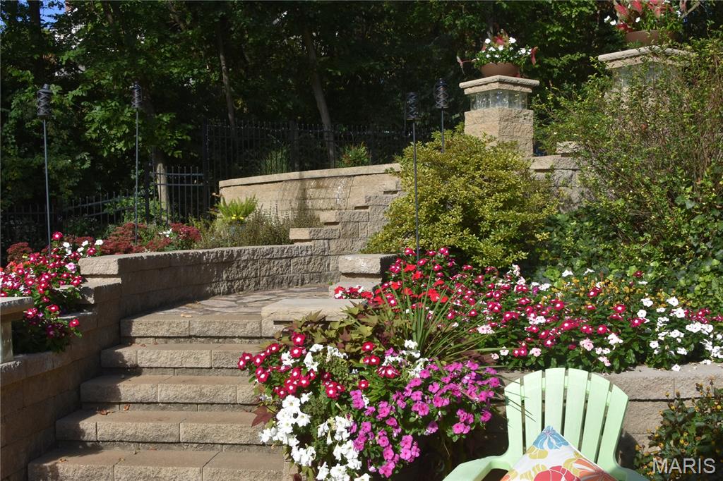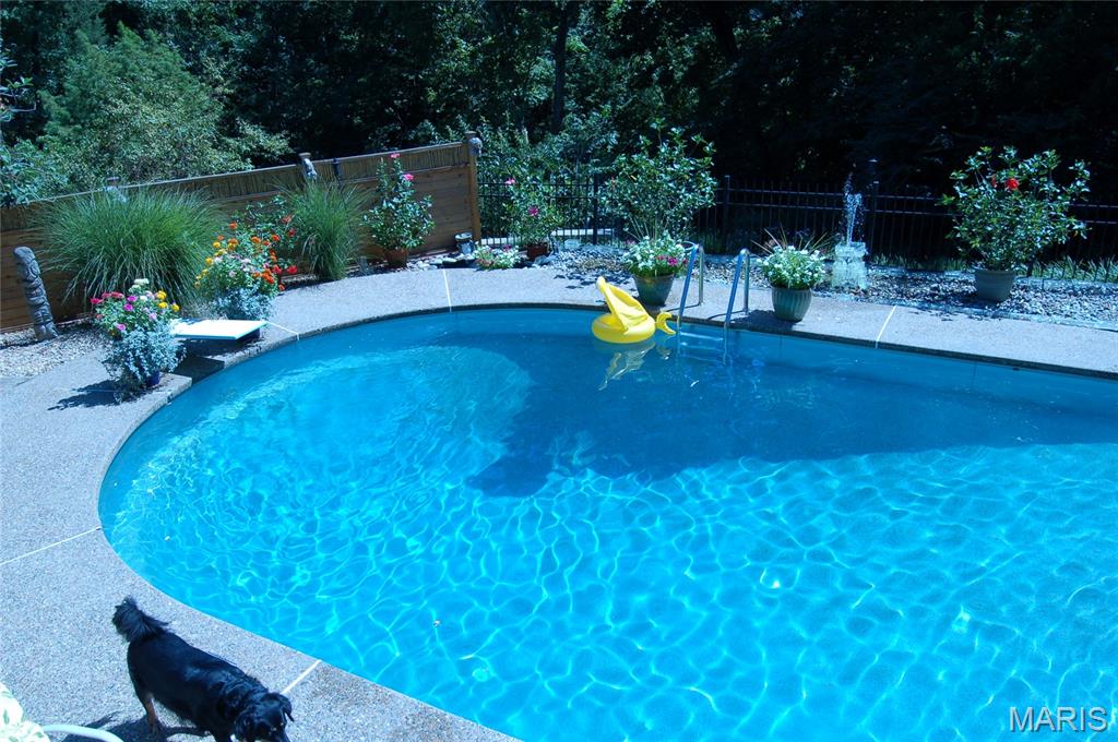 Welcome to Chesterfield Hill! Tucked away on a quiet cul-de-sac backing to green space, this home offers over 3,500 sq. ft. of living space and a community where neighbors gather for happy hours and Halloween firepits. Inside, you’ll love the recently remodeled Chef’s Kitchen with custom cabinetry, quartzite countertops, 48” gas range, Bosch dishwasher, luxury vinyl tile and an oversized window overlooking your backyard oasis. Fresh updates shine throughout – new Brazilian Cherry hardwoods and heated tile entry, new paint, new carpet, custom millwork, new window treatments and new lighting. Two fireplaces (wood & gas) create cozy living spaces, while the walkout lower level adds a Rec Room, storage and access to your private 18x36 Baker saltwater pool, waterfall, putting green and elevated flower beds with irrigation. Upper backyard has pet-friendly artificial turf with hardscaping that flows to the lower level, highlighted by a custom stone landing in-between. Garage has an attic for extra storage. Enjoy wildlife, peace and privacy, all just minutes from Hwy 40/64, shopping and dining. A rare chance to own a home that blends luxury updates, outdoor living and true neighborhood connection. Come see your new home today!