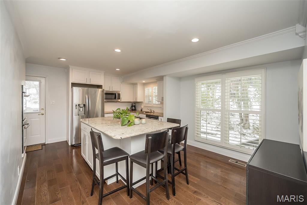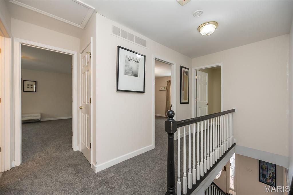 NEW year = New House! Discover this stunning five bedroom, one and a half story home on over a 3/4 -acre private lot backing to trees for serene views. Enjoy outdoor living with a private covered patio and deck off the family room. Step inside where walls have been opened to create a bright, open floor plan featuring newer hardwood floors throughout the main level. The spacious kitchen boasts a large island, new dishwasher and microwave, and convenient main-floor laundry. The main-floor primary suite includes a full en suite bath. Upstairs, find four additional bedrooms and a second primary bedroom, walk in closets, new carpet, and two full baths. The walk-out lower level offers a rec room, a rough in for a full Bathroom and a work out area. Located in top-rated Parkway Schools, close to Faust Park, the Butterfly House, and with easy access to Hwy 40 corridor. New Roof has been installed!