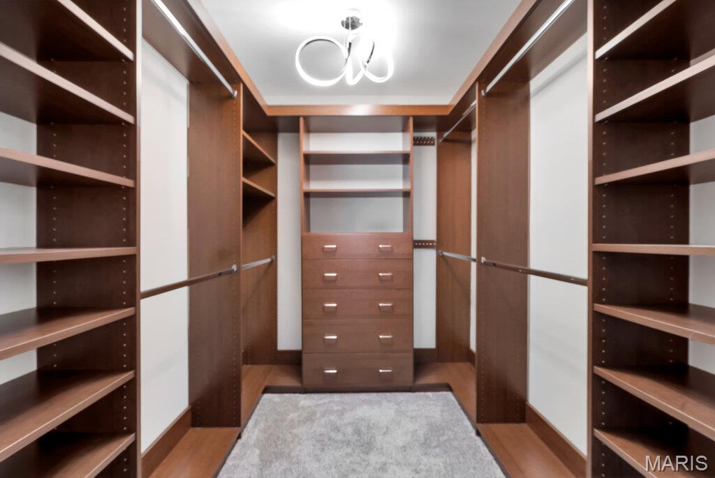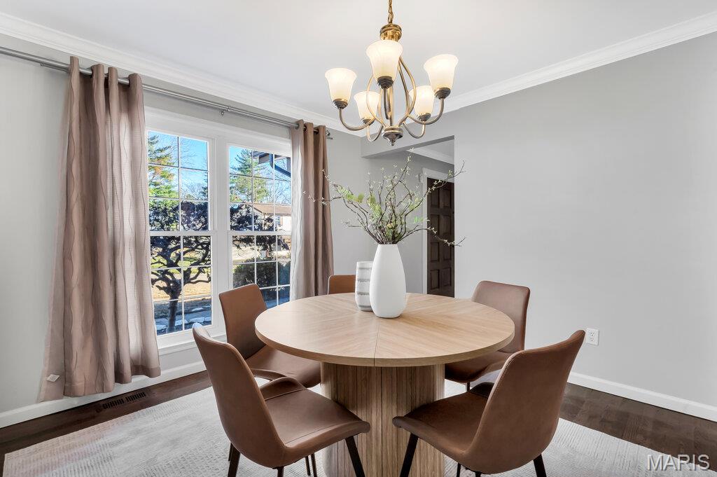 Fabulous 2 story complemented with numerous upgrades! The modern kitchen has solid surface countertops, newer cabinets, subway tile backsplash, updated appliances, gleaming wood floors. and recessed lighting. The spacious family room is arrayed with peg and plank wood floors, crown molding, recessed lighting, brick fireplace, and newer atrium door that walks out to the back patio.  A large living room, and a spacious separate dining room, and an updated hall bath round out the main level.  Upstairs the enormous primary suite is complemented with crown molding, huge walk-in closet with custom organizers, and upgraded full bath.  3 large bedrooms, and another upgraded full bath round out the second level.  The huge finished lower level is arrayed with recessed lighting.  The level park-like backyard backs to trees and is complemented with huge patio and  fire pit.  All this plus newer windows throughout, updated high efficiency HVAC, newer water heater, gleaming wood floors throughout, and Parkway Schools. Super convenient to highways, restaurants, and shopping