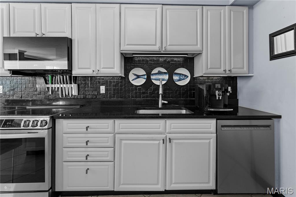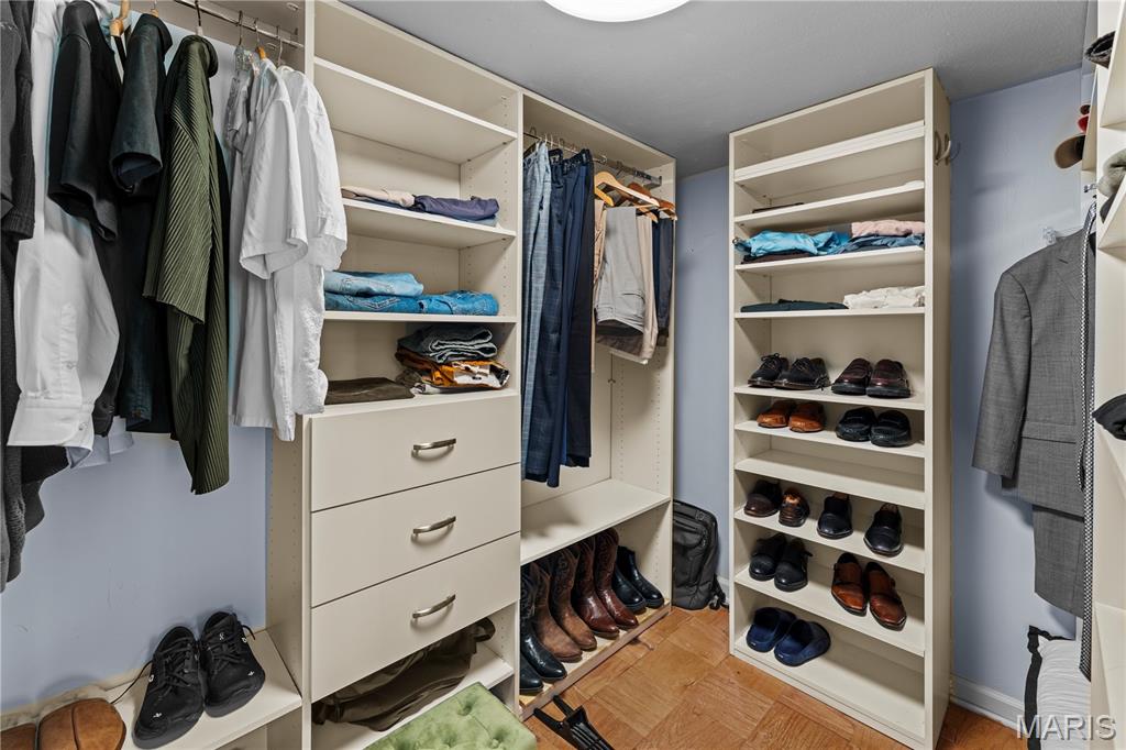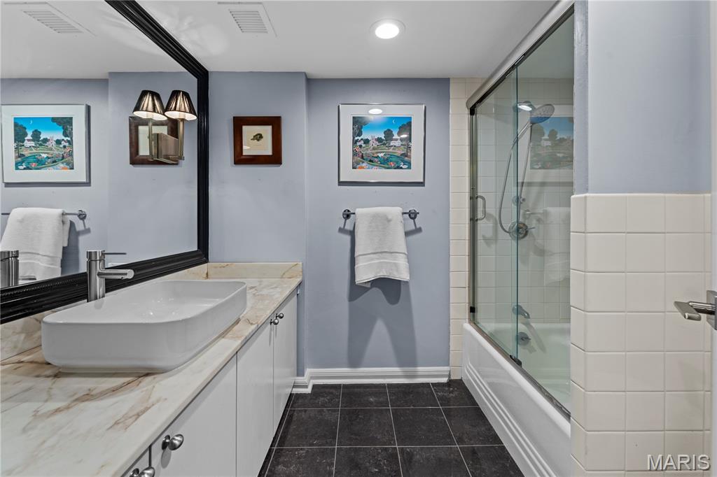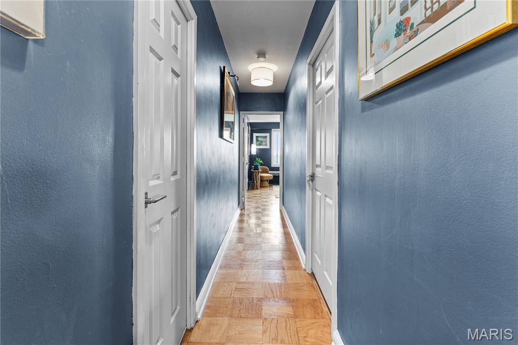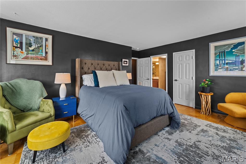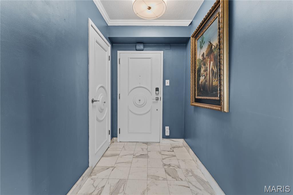 Prepare to be captivated the moment you enter this light-filled, corner unit. This spacious 2-bedroom, 2-bath condo boasts an open floorplan designed for both comfortable living and elegant entertaining. The gourmet kitchen features a generous center island with granite countertops, custom white cabinetry, and stainless steel appliances, seamlessly flowing into the dining area. Off the dining room, the living room has oversized windows filling the space with natural light. The spacious primary suite includes a walk-in closet and a beautifully renovated bath. A second bedroom and full bath provide ideal accommodations for guests or a home office. Additional highlights include in-unit laundry with washer and dryer, a welcoming foyer with marble flooring, and plantation shutters throughout. Enjoy panoramic Eastern views—including the Arch—from the primary suite, and Southern exposures from both bedrooms and the main living spaces. Located on an upper-level end unit in a full-service building featuring a 24-hour doorman, elegant lobby, dog park, fitness center, and in-ground pool. All just moments from the heart of downtown Clayton and within the acclaimed Clayton School District. New electrical and plumbing in 2022. New painting in 2024.