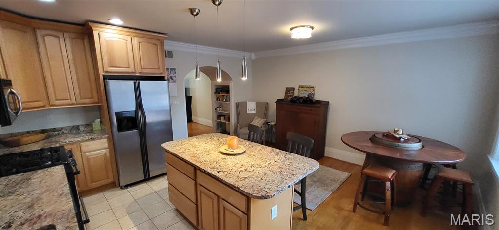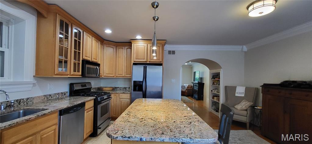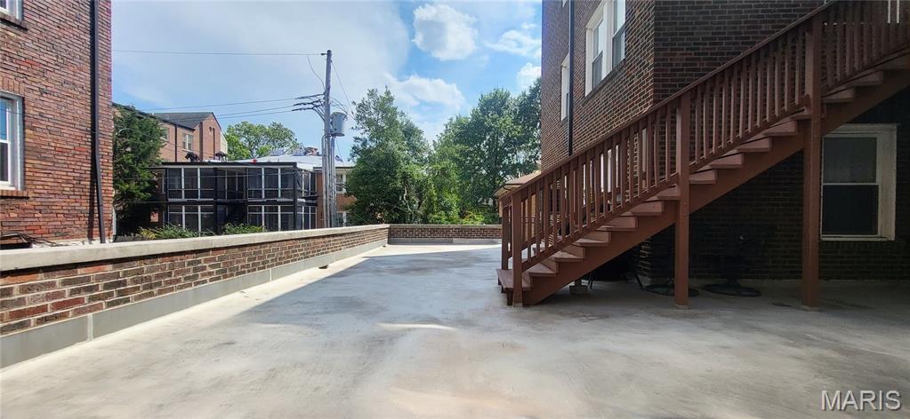This beautifully updated 2-bedroom, 1-bath elevated first-floor unit is truly one of a kind. Located in the desirable Moorlands neighborhood, it is the only unit in the building with a private in-unit washer and dryer. Freshly renovated and move-in ready, the home offers an open floor plan with abundant natural light, gleaming hardwood floors, and a cozy living room anchored by a charming fireplace. The light-filled kitchen features granite countertops, stainless steel appliances, and an island with seating. Two generously sized bedrooms and one full bathroom. Additional highlights include crown molding throughout, a custom built-in bookcase with hidden storage, and newer HVAC. Step directly from your back door to a spacious shared deck/patio, perfect for entertaining or relaxing outdoors. The well-maintained building offers secure underground garage parking and private storage. Conveniently located within walking distance to downtown Clayton, Forest Park, the Zoo, shopping, dining, and more—all within the highly acclaimed Clayton School District. This rare opportunity won’t last long!