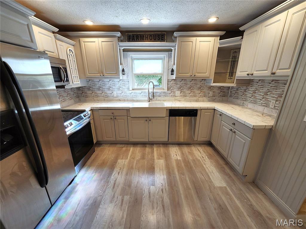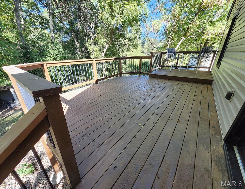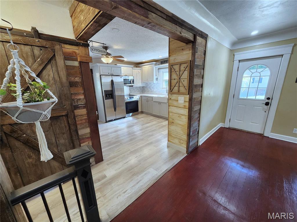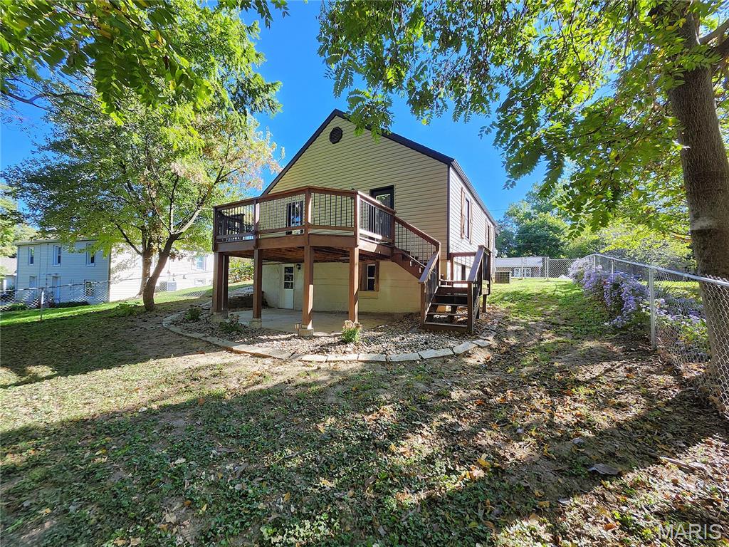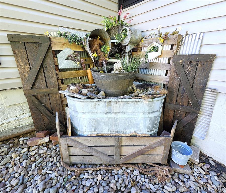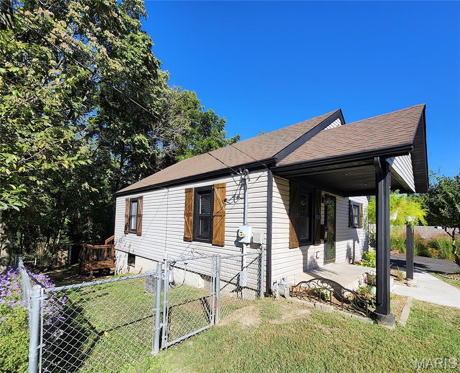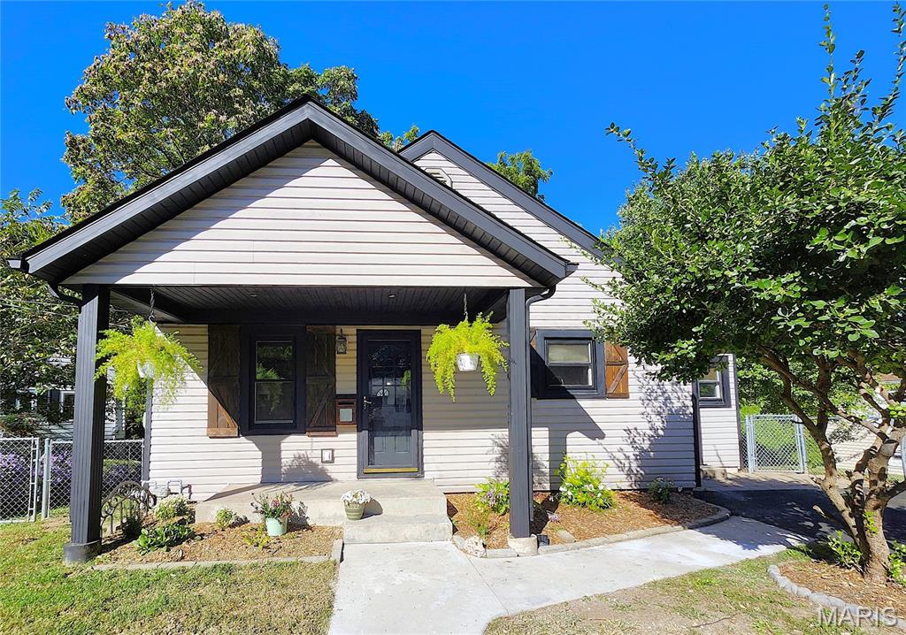 Take a look at this unique 3 bed / 2 bath ranch home, located on a cul-de-sac street. Loaded with character & charm it offers fresh innovative designs that make this home special and one of a kind. Old and new accents come together. You'll find original hardwood floors in the living room, hall and both main floor bedrooms. Quaint main floor laundry room with folding area & shelves. Totally reworked eat in kitchen w/ new cabinets, appliances, farm sink and gorgeous tile counters. The main floor full bath features a claw foot soaking tub in a beautiful archway setting, a new tiled shower stall and a bowl sink vanity. Pallet wood accent walls, creative built-ins and new light fixtures add to the home's country flair atmosphere. The staircase is a work of art and yes, that's a wooden ladder wonderfully incorporated into the design. The walkout basement offers a large, finished area w/ LVP flooring that offers enough space for a family room AND rec room. The 3rd Bedroom, a new bathroom w/ shower and a large storage room complete the lower level. The walkout door leads to a covered patio beneath a large 2 tier deck that overlooks the wooded area beyond the fenced backyard. The exterior has been highlighted with custom wood shutters and a stunning fountain. New asphalted driveway. Seller will provide Collinsville occupancy permit.