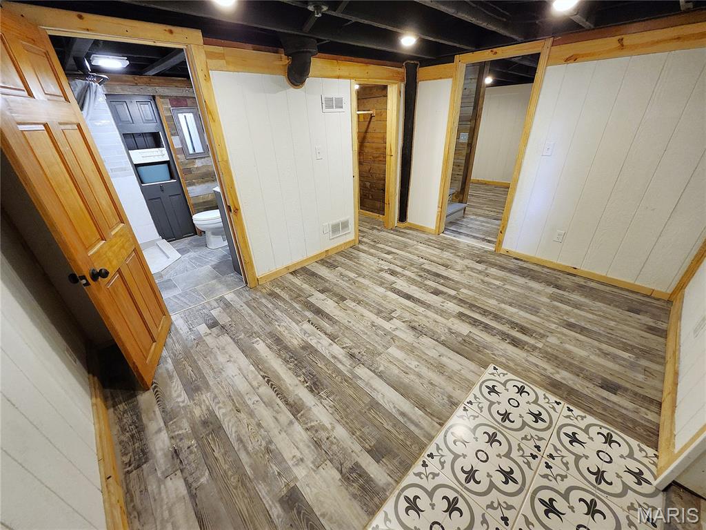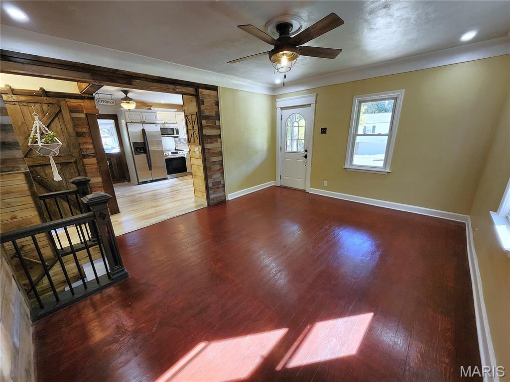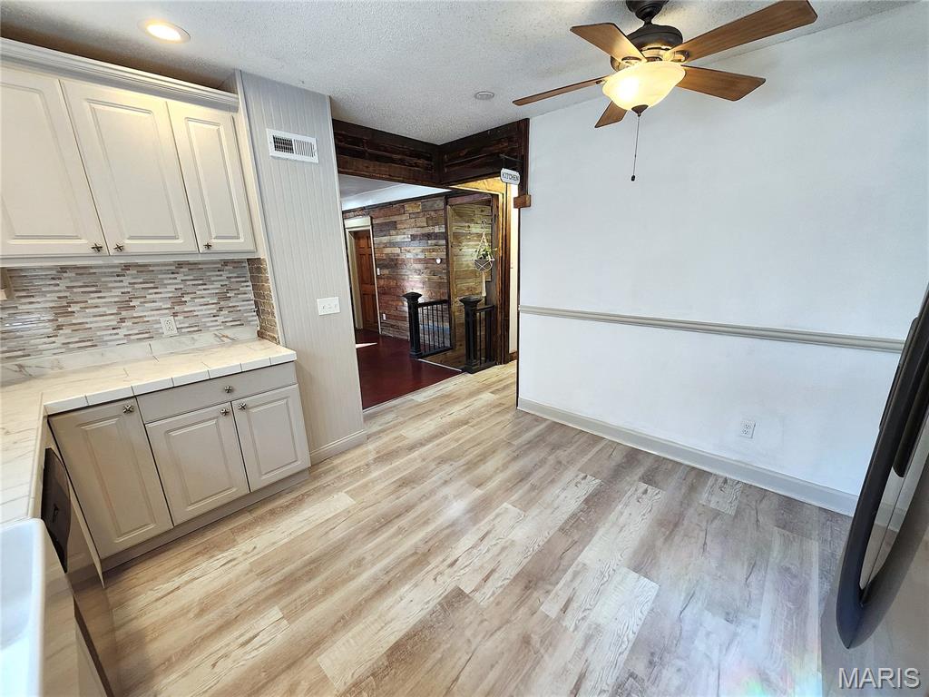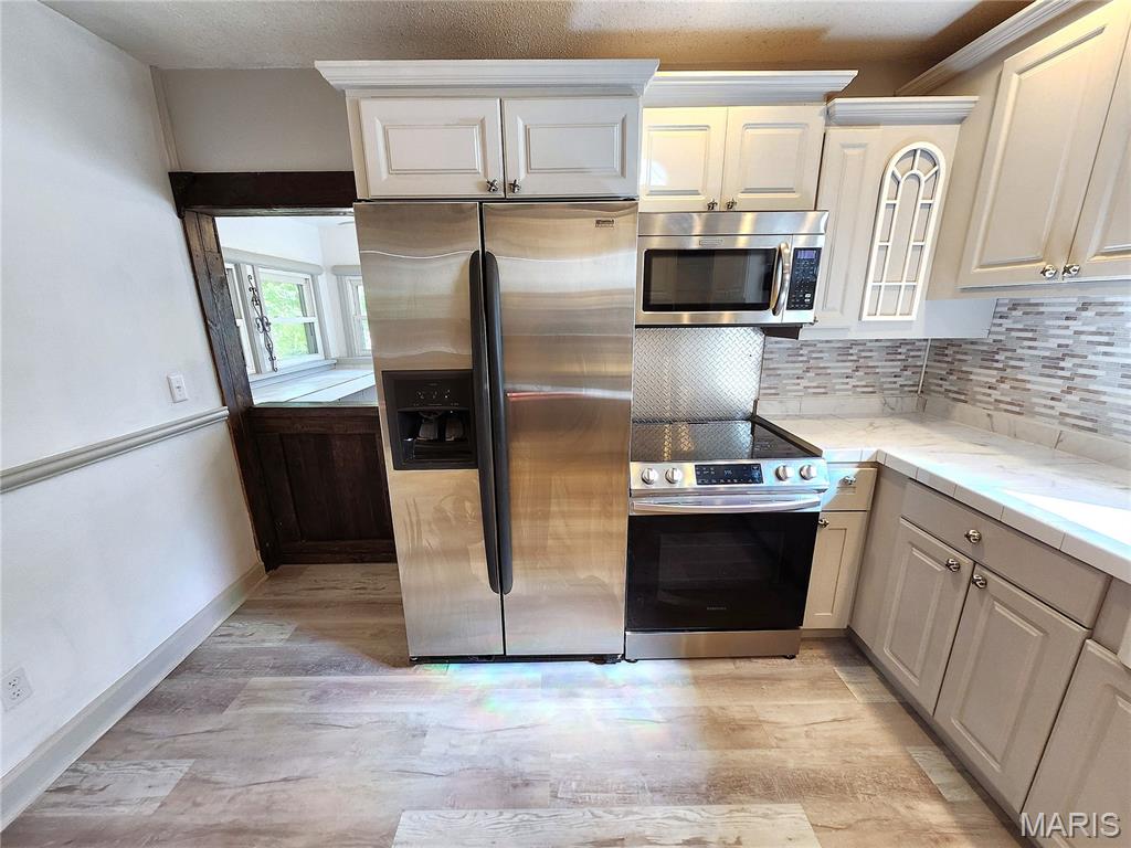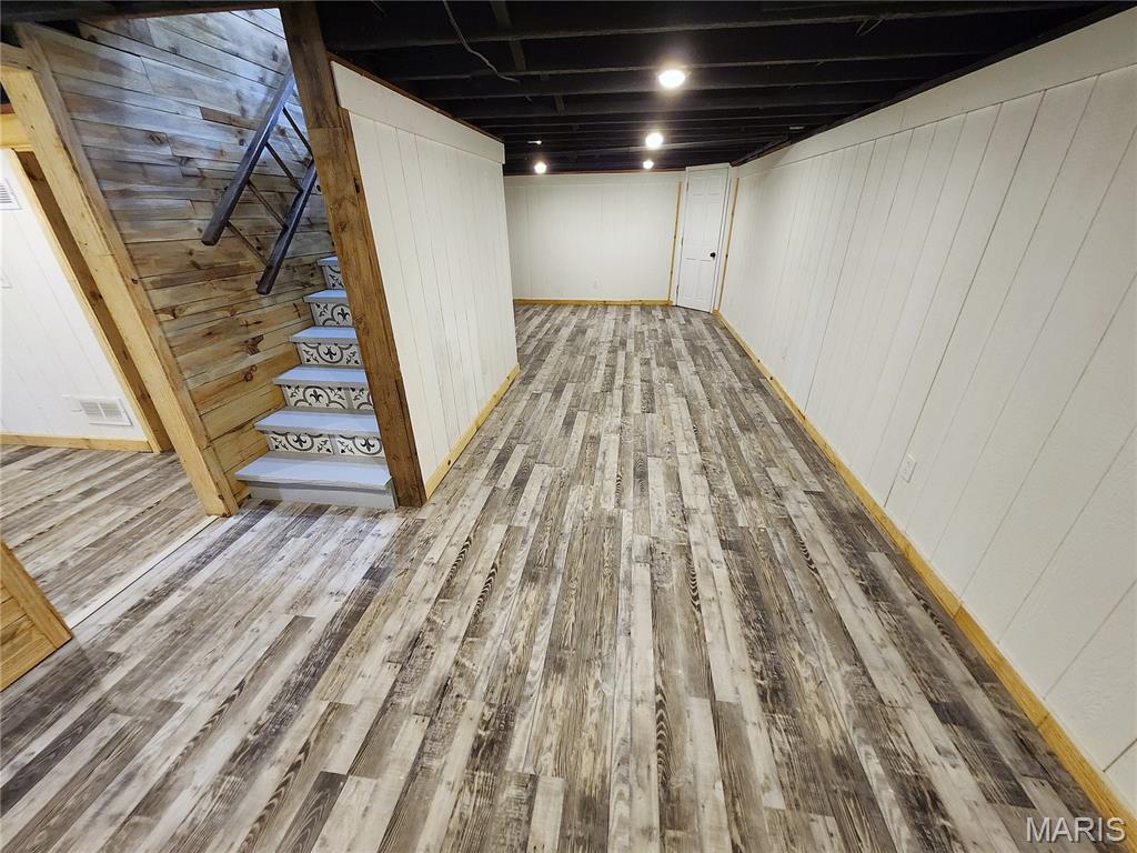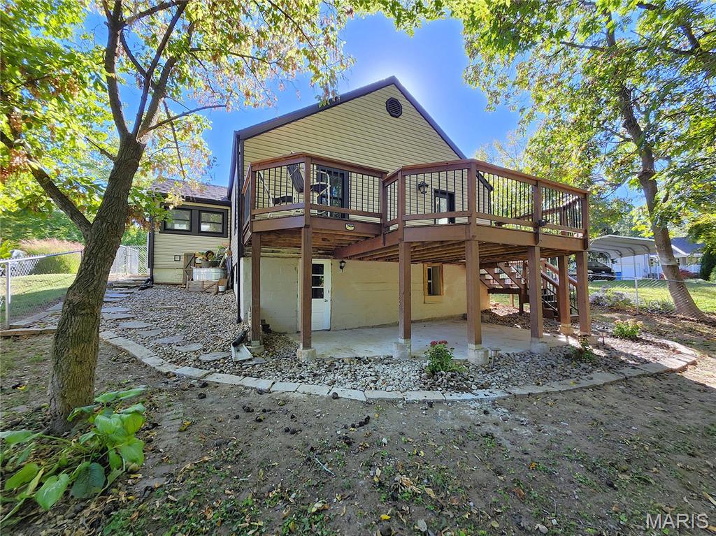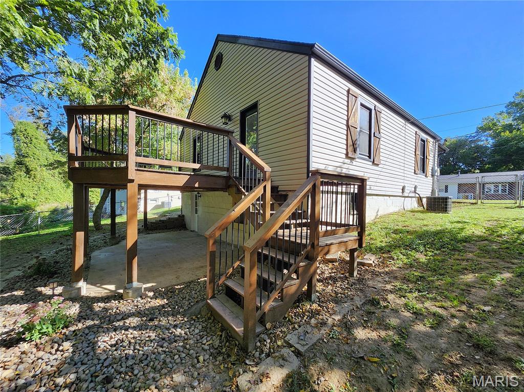 Take a look at this unique 3 bed / 2 bath ranch home, located on a cul-de-sac street. Loaded with character & charm it offers fresh innovative designs that make this home special and one of a kind. Old and new accents come together. You'll find original hardwood floors in the living room, hall and both main floor bedrooms. Quaint main floor laundry room with folding area & shelves. Totally reworked eat in kitchen w/ new cabinets, appliances, farm sink and gorgeous tile counters. The main floor full bath features a claw foot soaking tub in a beautiful archway setting, a new tiled shower stall and a bowl sink vanity. Pallet wood accent walls, creative built-ins and new light fixtures add to the home's country flair atmosphere. The staircase is a work of art and yes, that's a wooden ladder wonderfully incorporated into the design. The walkout basement offers a large, finished area w/ LVP flooring that offers enough space for a family room AND rec room. The 3rd Bedroom, a new bathroom w/ shower and a large storage room complete the lower level. The walkout door leads to a covered patio beneath a large 2 tier deck that overlooks the wooded area beyond the fenced backyard. The exterior has been highlighted with custom wood shutters and a stunning fountain. New asphalted driveway. Seller will provide Collinsville occupancy permit.