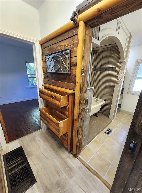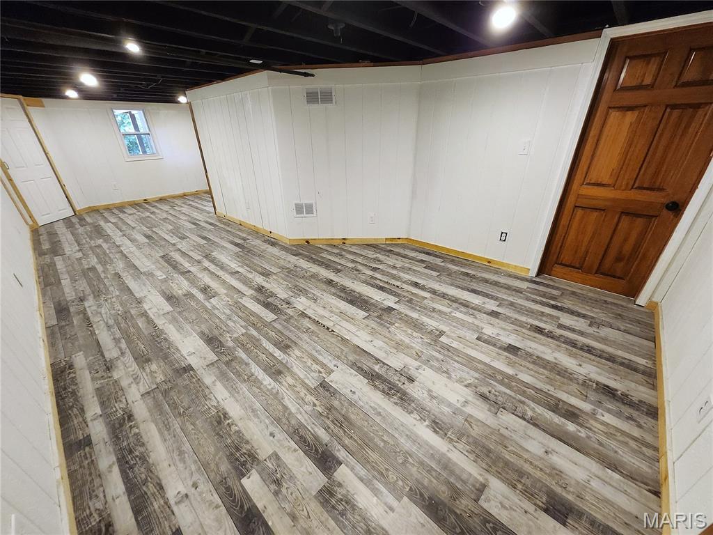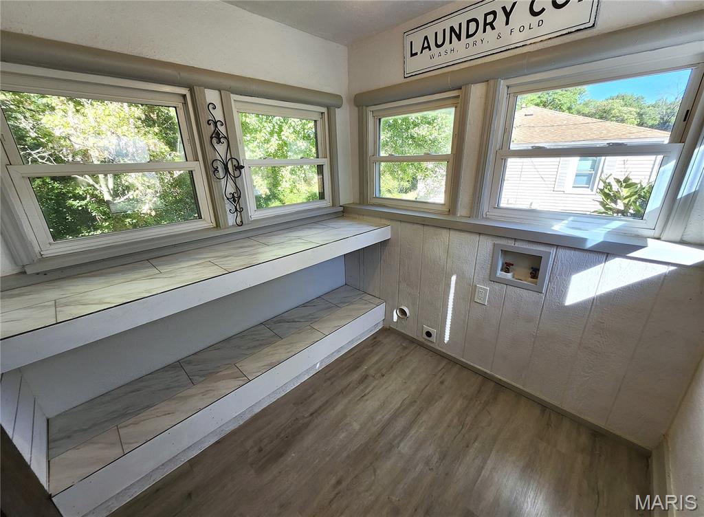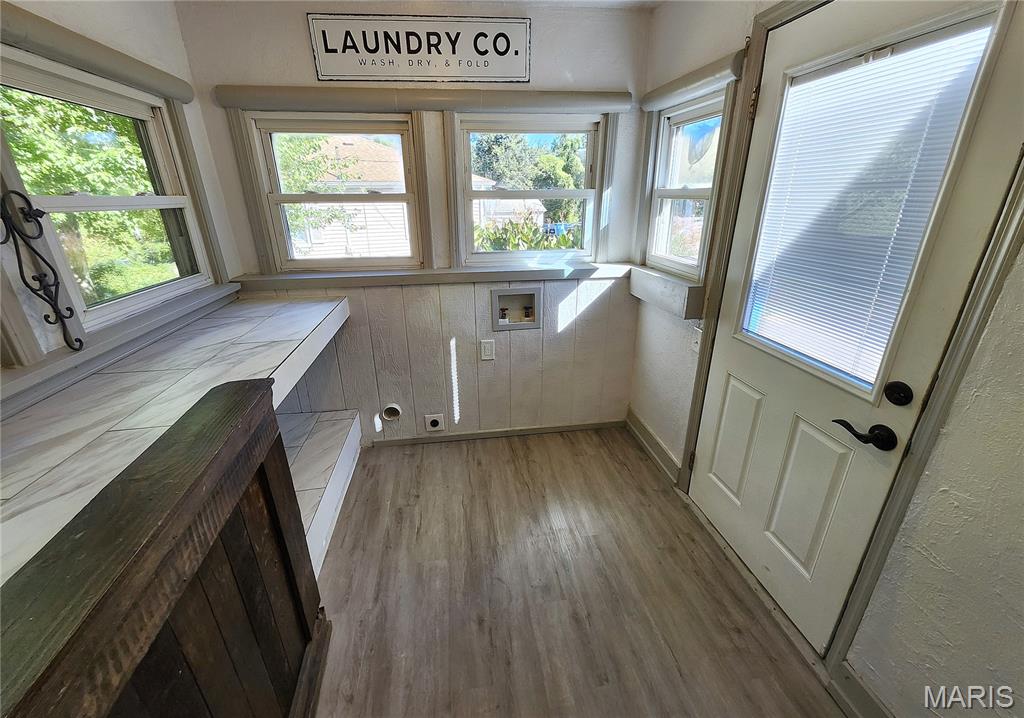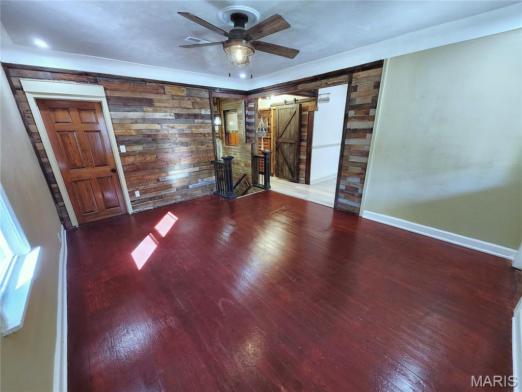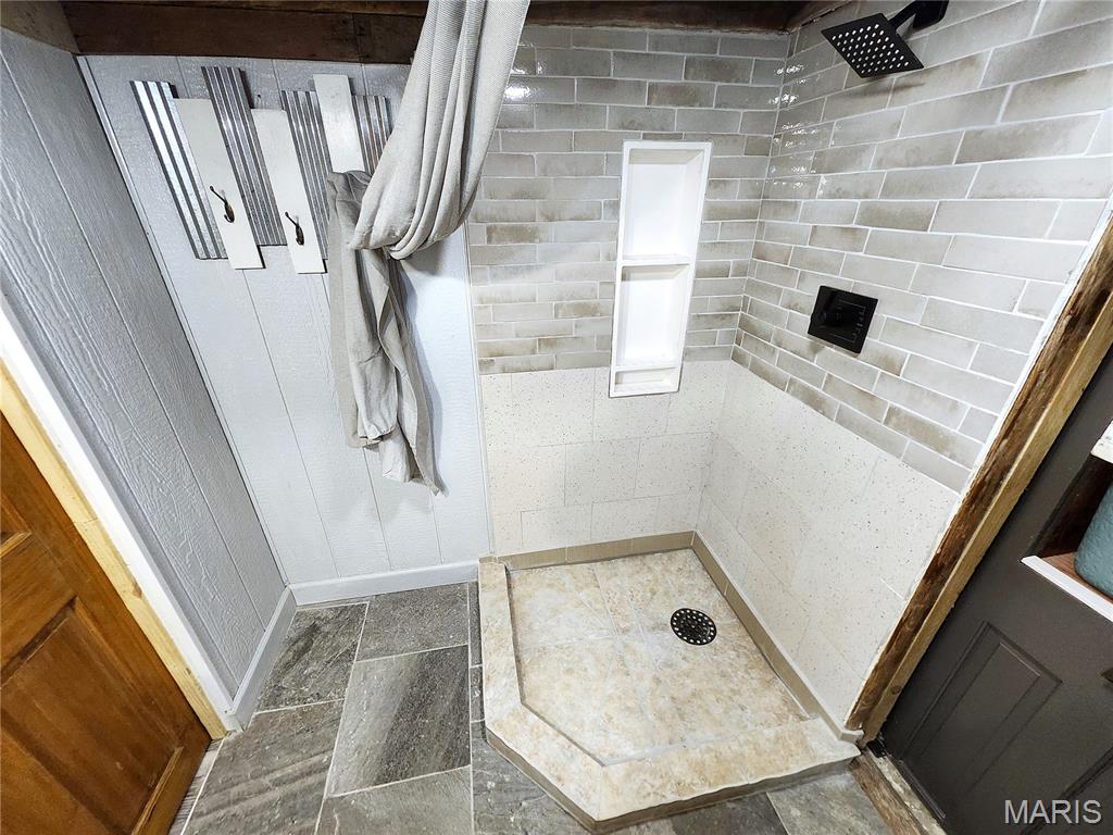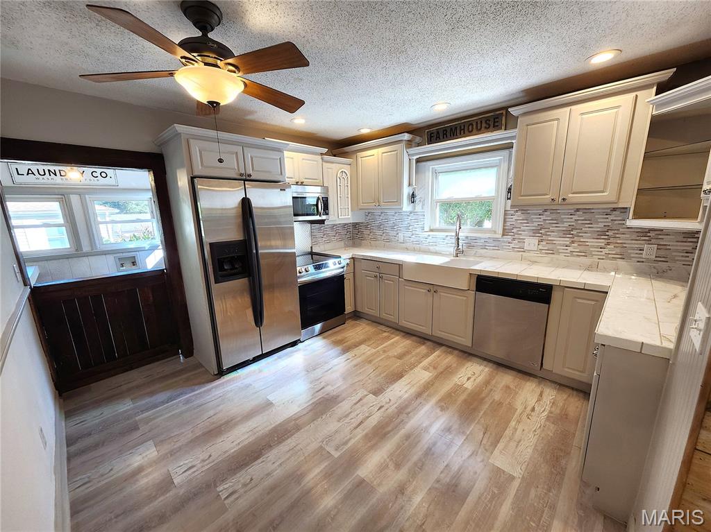 Take a look at this unique 3 bed / 2 bath ranch home, located on a cul-de-sac street. Loaded with character & charm it offers fresh innovative designs that make this home special and one of a kind. Old and new accents come together. You'll find original hardwood floors in the living room, hall and both main floor bedrooms. Quaint main floor laundry room with folding area & shelves. Totally reworked eat in kitchen w/ new cabinets, appliances, farm sink and gorgeous tile counters. The main floor full bath features a claw foot soaking tub in a beautiful archway setting, a new tiled shower stall and a bowl sink vanity. Pallet wood accent walls, creative built-ins and new light fixtures add to the home's country flair atmosphere. The staircase is a work of art and yes, that's a wooden ladder wonderfully incorporated into the design. The walkout basement offers a large, finished area w/ LVP flooring that offers enough space for a family room AND rec room. The 3rd Bedroom, a new bathroom w/ shower and a large storage room complete the lower level. The walkout door leads to a covered patio beneath a large 2 tier deck that overlooks the wooded area beyond the fenced backyard. The exterior has been highlighted with custom wood shutters and a stunning fountain. New asphalted driveway. Seller will provide Collinsville occupancy permit.