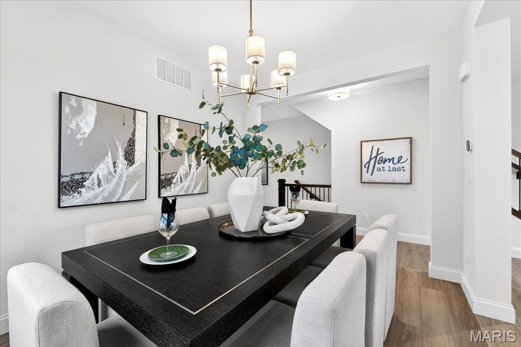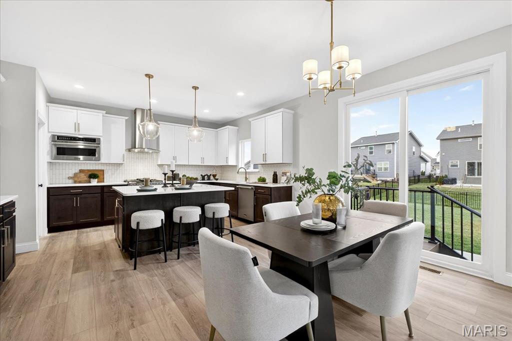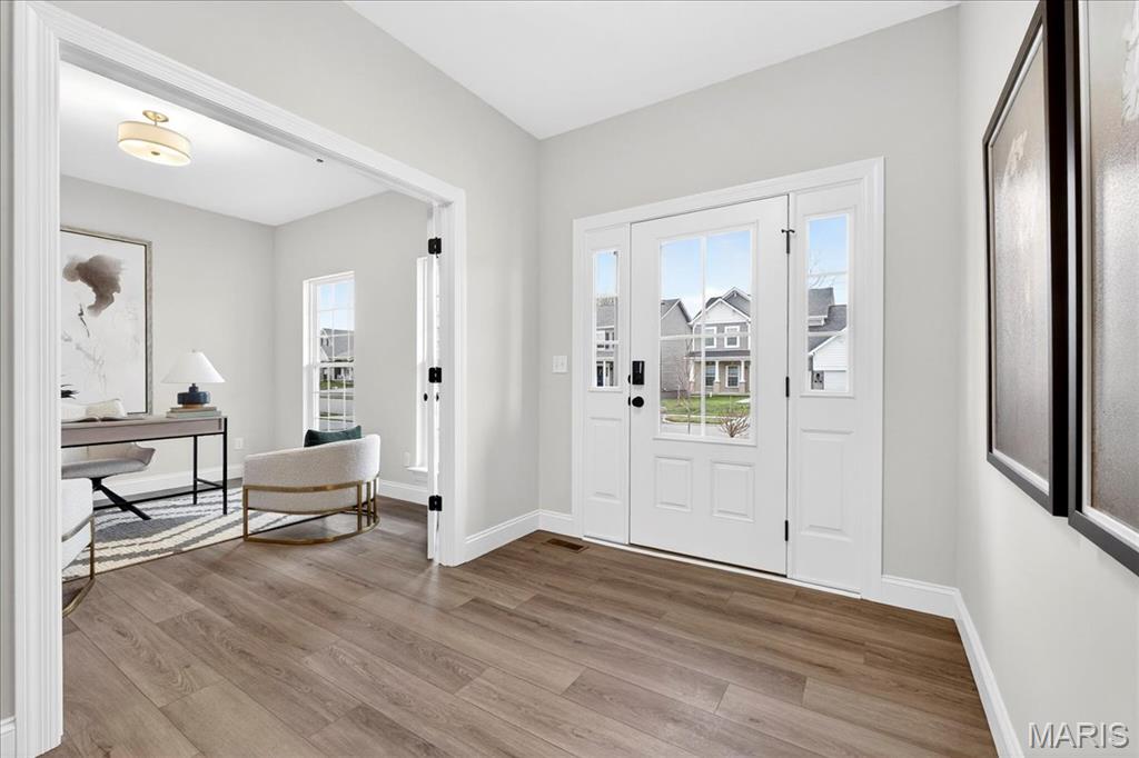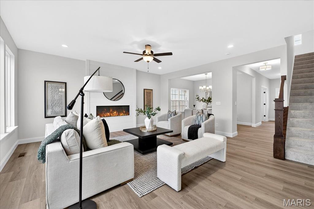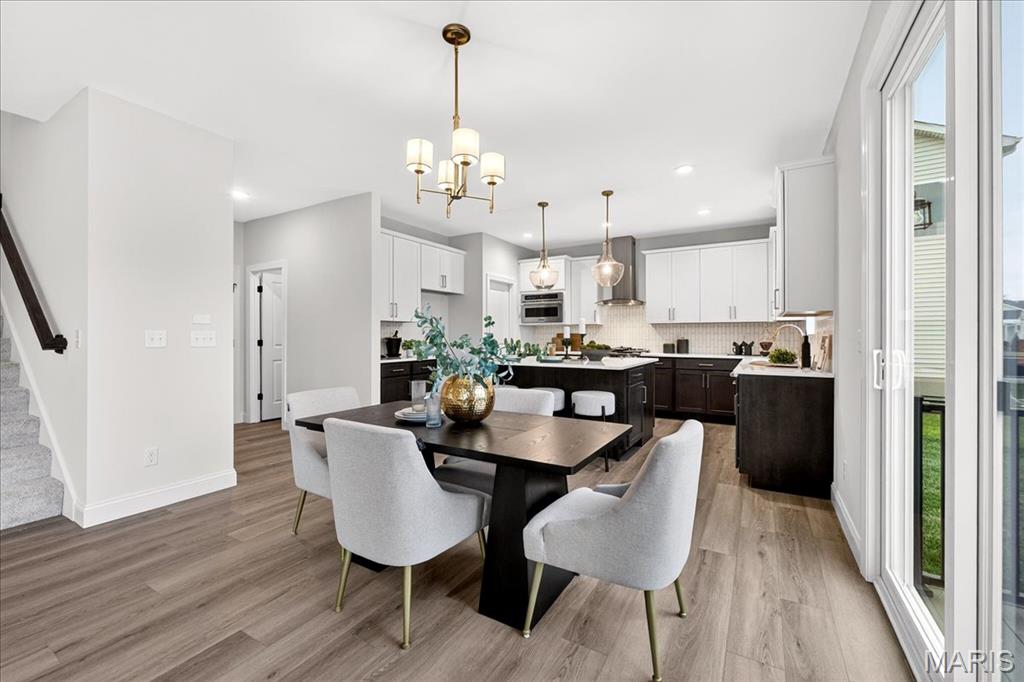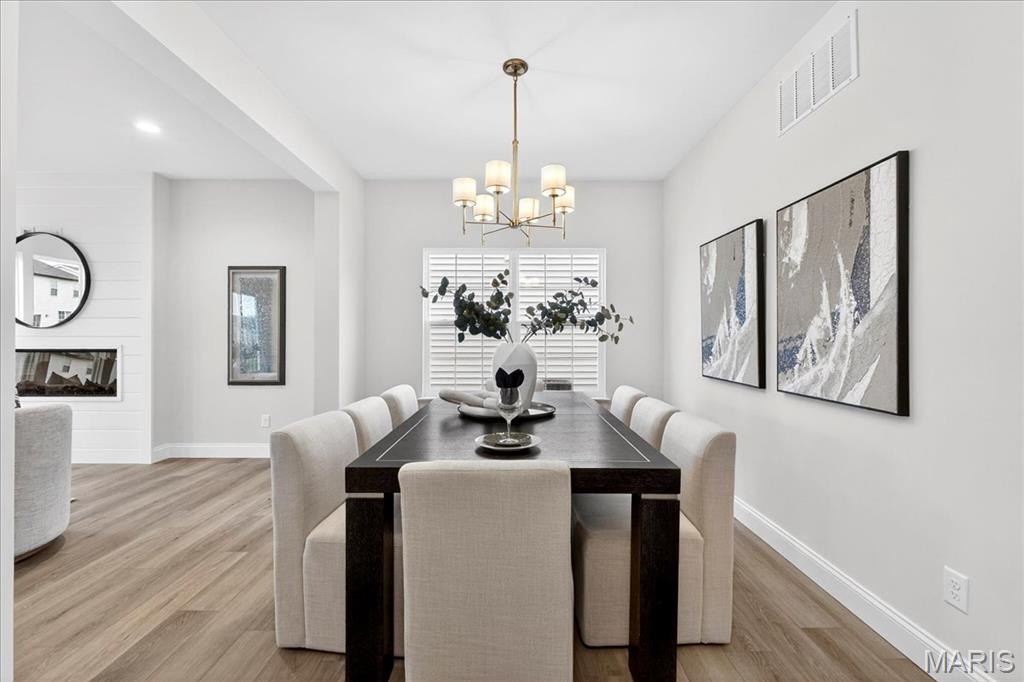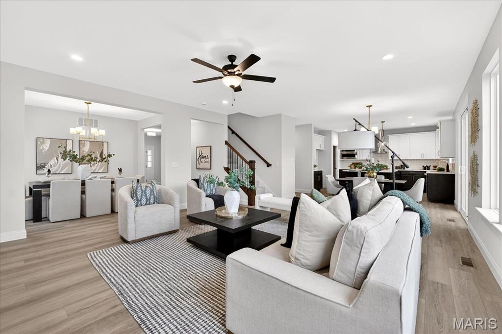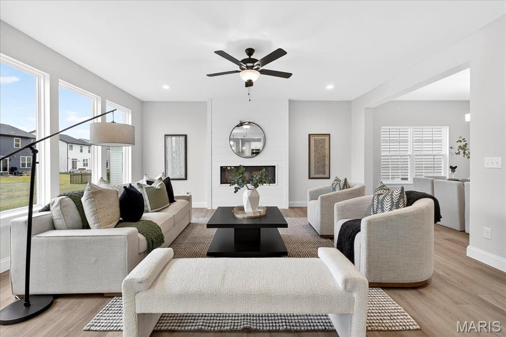 MOVE IN READY! Welcome to the Lancaster in desirable Cottleville Trails! This beautifully crafted 2-story home offers 2,892 sq ft, 4 bedrooms, 3.5 baths, and a 3-car attached garage with opener. The kitchen features quartz countertops, 42" soft-close cabinets, crown molding, dovetail drawers, stainless gas appliances, a walk-in pantry, pendant lighting, and a dedicated refrigerator cabinet. The main level is finished with luxury vinyl plank flooring throughout the family, living, kitchen, dining, and breakfast rooms. Upstairs, the primary suite features a walk-in closet, ceiling fan, and a spa-like bath with a double vanity and glass-swinging shower door. Three additional bedrooms include future ceiling fan bracing, and the second-floor laundry offers everyday convenience. Additional highlights: electric fireplace, window wall, recessed can and coach lighting, smart thermostat, bonus room, soaking tub, carbon monoxide/smoke detectors, 8' basement pour, rough-in bath, and landscaping. Zoned damper HVAC and insulated windows. Located in the sought-after Cottleville Trails with pool, trails, and quick access to schools, dining, shopping, and parks.