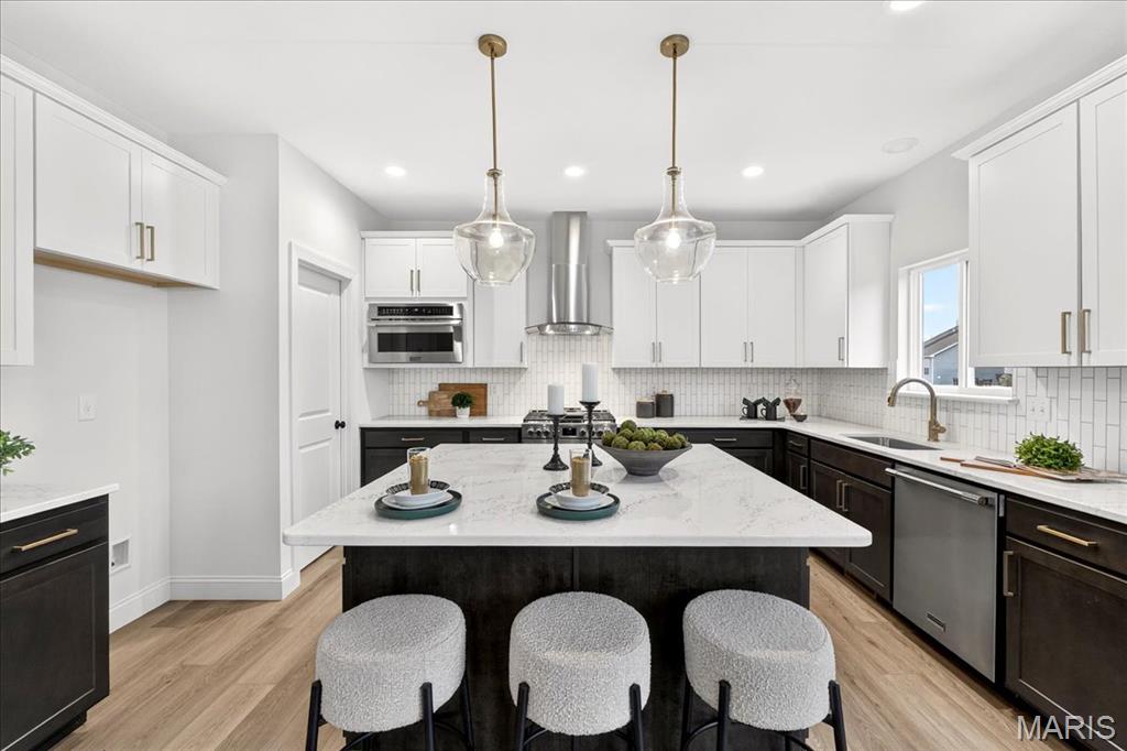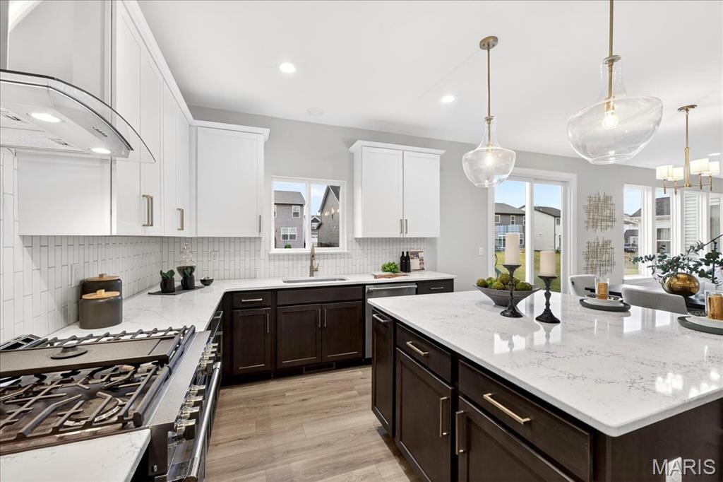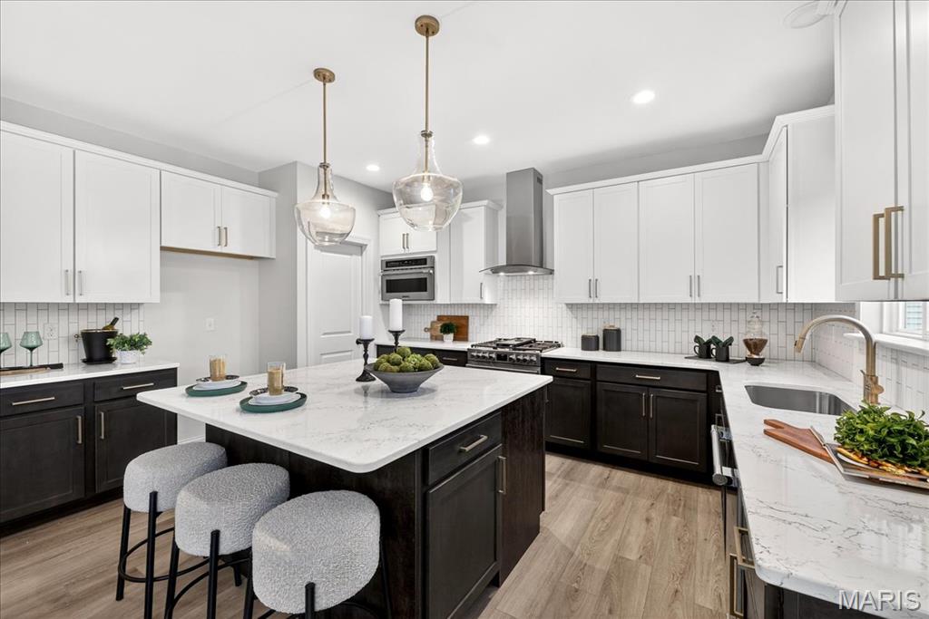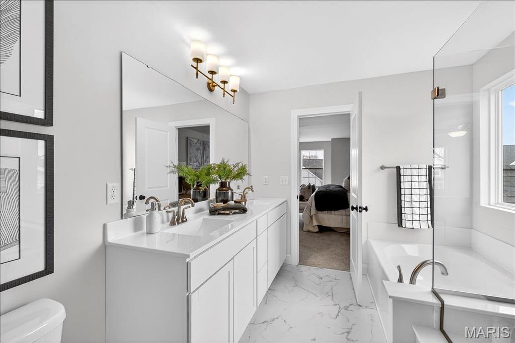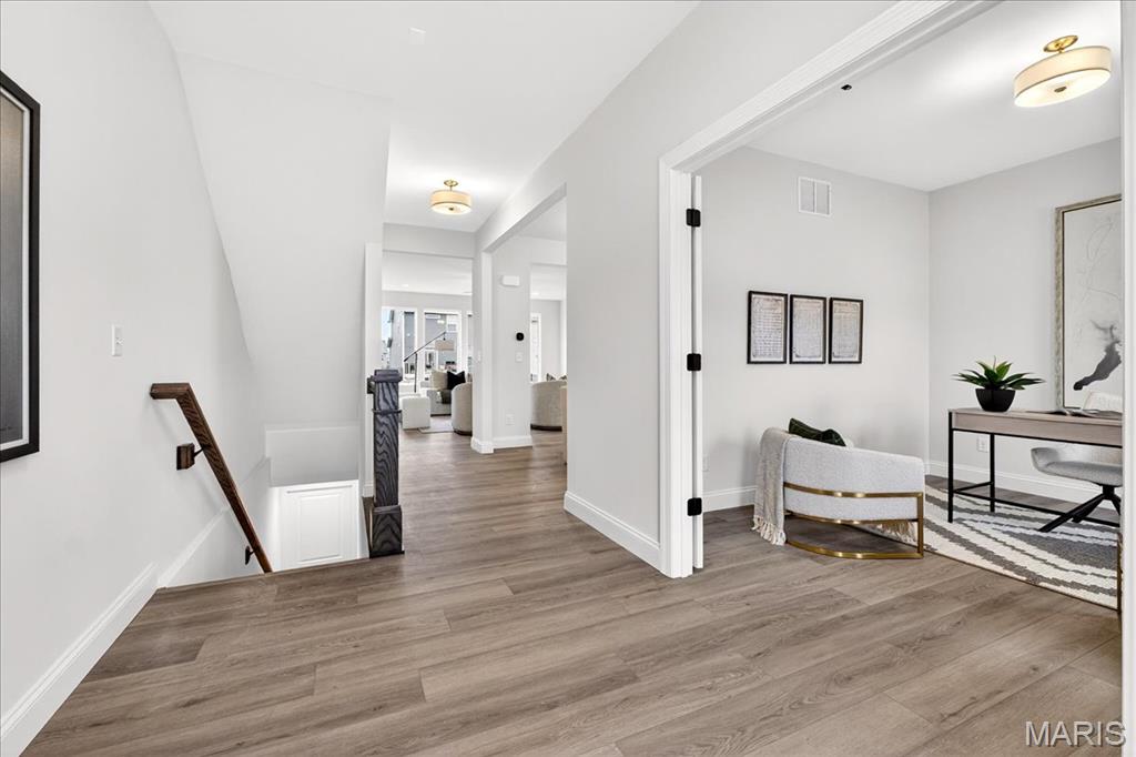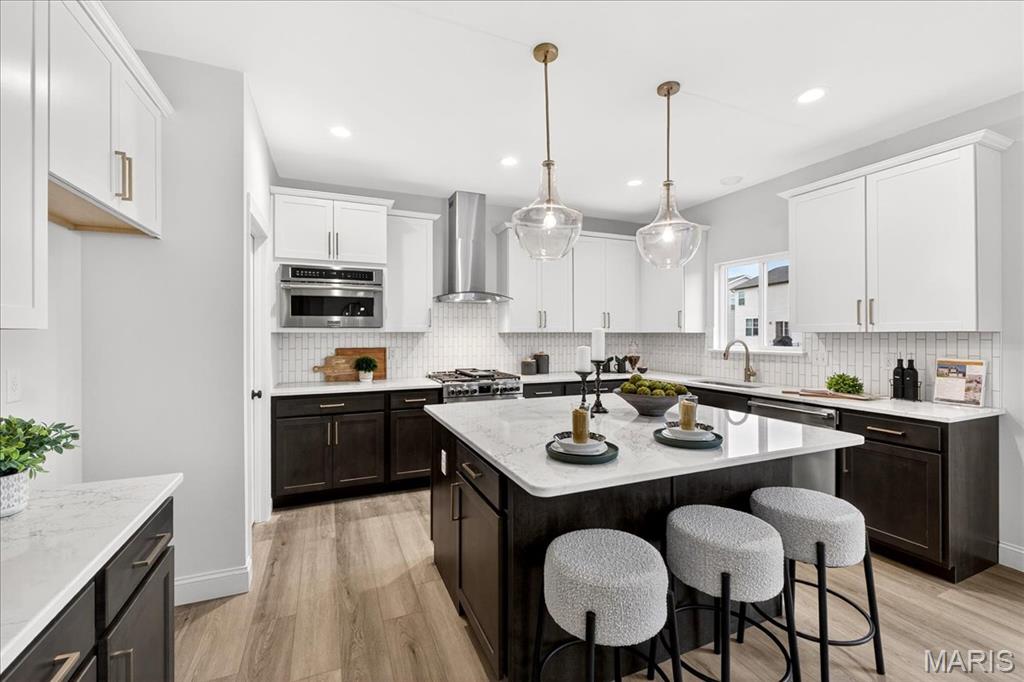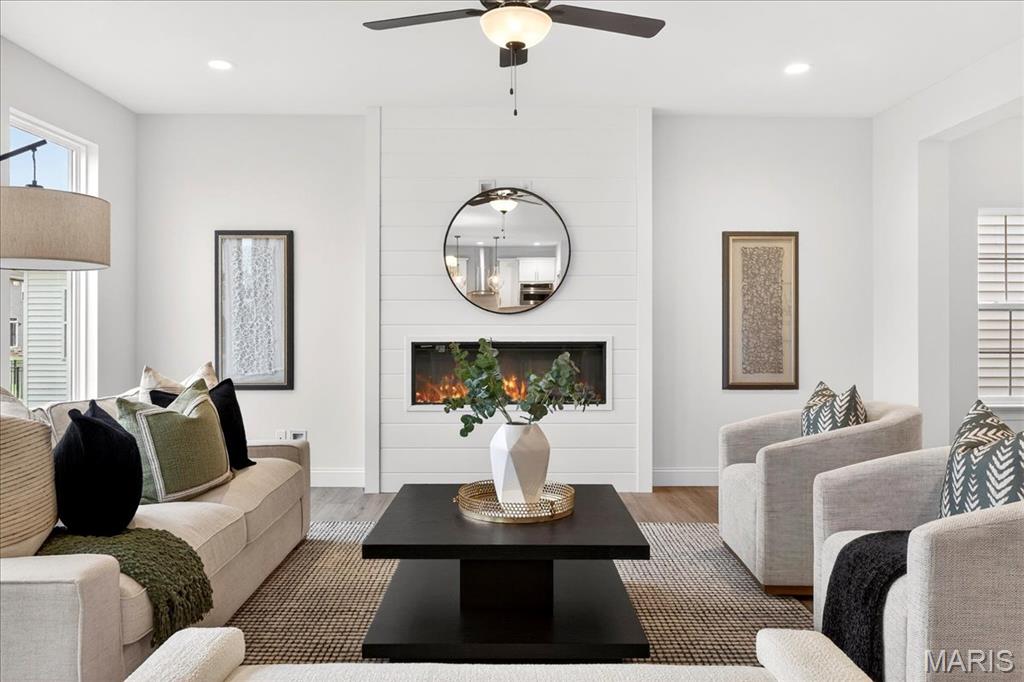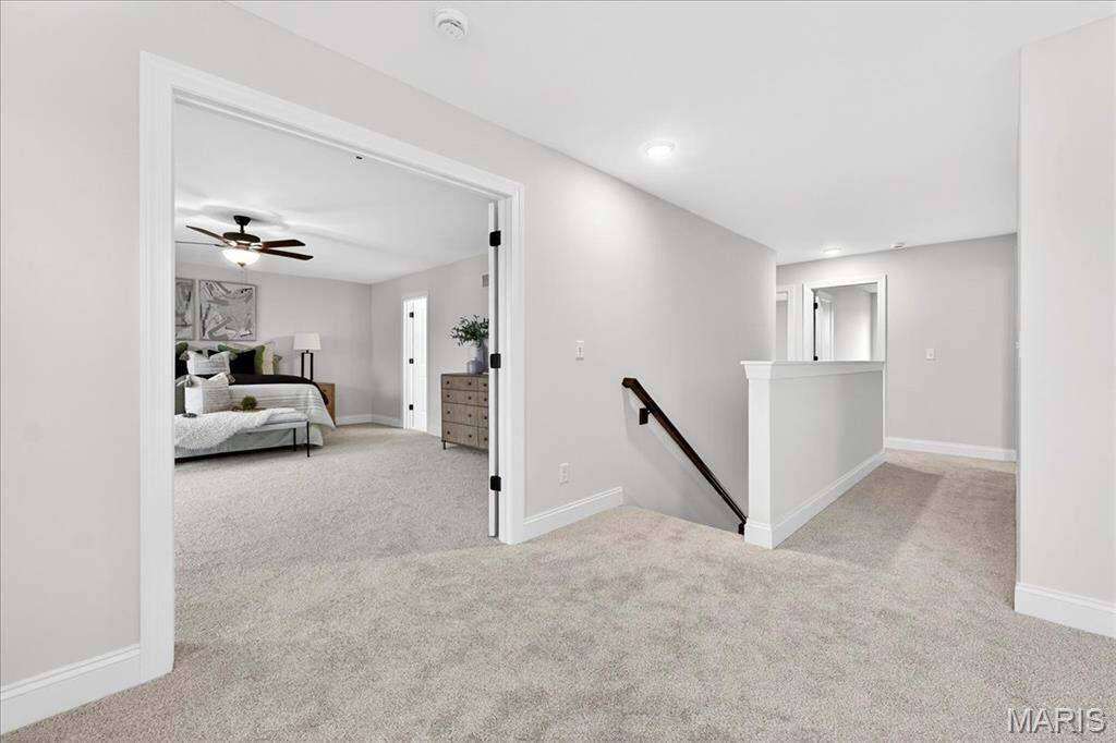 MOVE IN READY! Welcome to the Lancaster in desirable Cottleville Trails! This beautifully crafted 2-story home offers 2,892 sq ft, 4 bedrooms, 3.5 baths, and a 3-car attached garage with opener. The kitchen features quartz countertops, 42" soft-close cabinets, crown molding, dovetail drawers, stainless gas appliances, a walk-in pantry, pendant lighting, and a dedicated refrigerator cabinet. The main level is finished with luxury vinyl plank flooring throughout the family, living, kitchen, dining, and breakfast rooms. Upstairs, the primary suite features a walk-in closet, ceiling fan, and a spa-like bath with a double vanity and glass-swinging shower door. Three additional bedrooms include future ceiling fan bracing, and the second-floor laundry offers everyday convenience. Additional highlights: electric fireplace, window wall, recessed can and coach lighting, smart thermostat, bonus room, soaking tub, carbon monoxide/smoke detectors, 8' basement pour, rough-in bath, and landscaping. Zoned damper HVAC and insulated windows. Located in the sought-after Cottleville Trails with pool, trails, and quick access to schools, dining, shopping, and parks.
