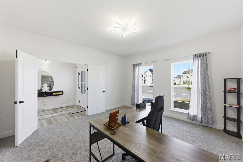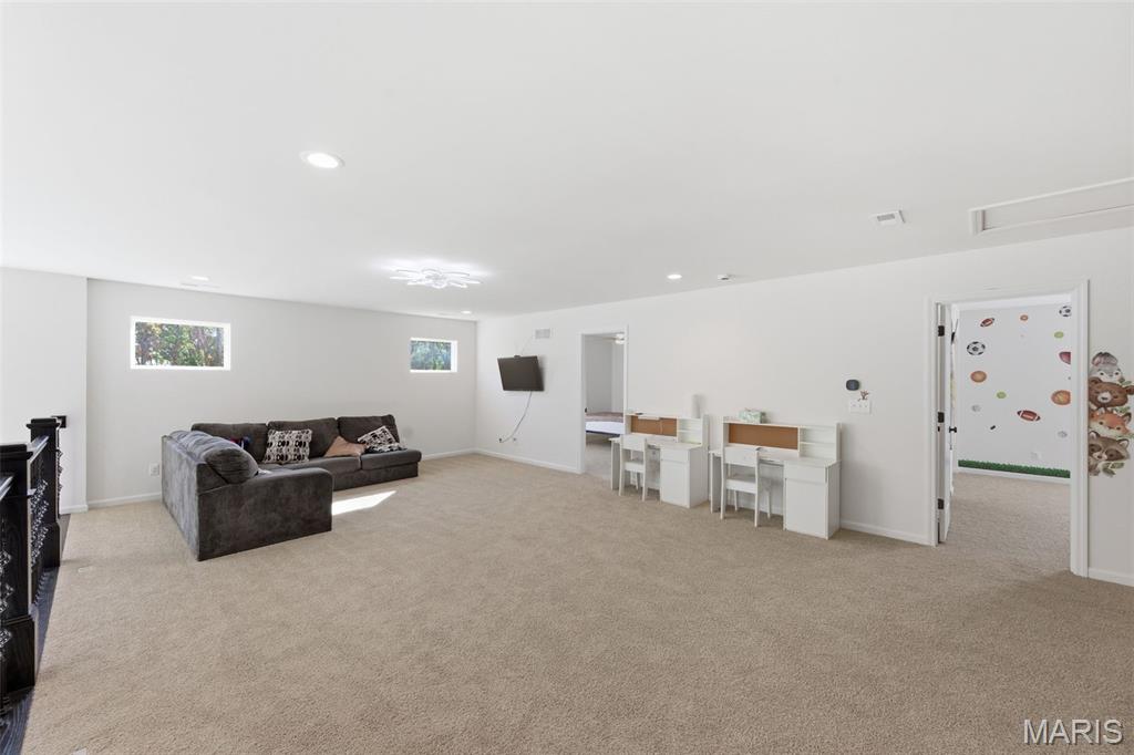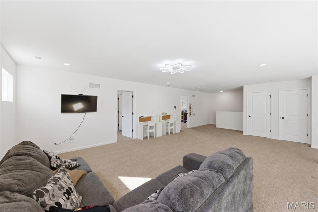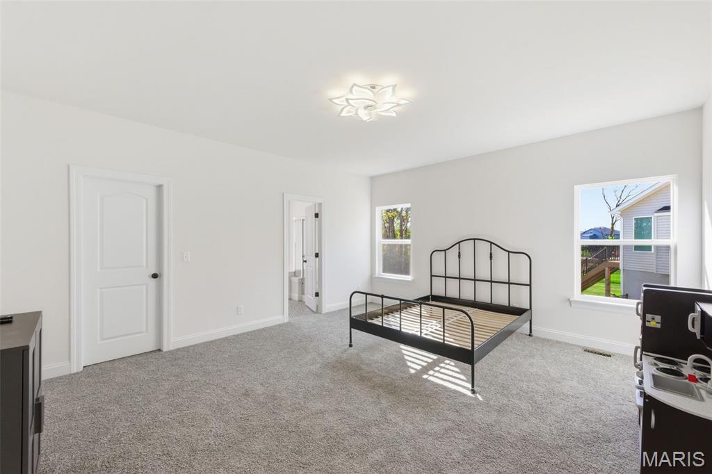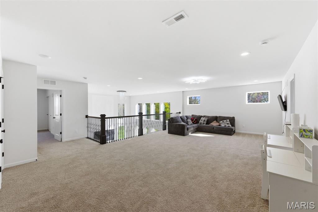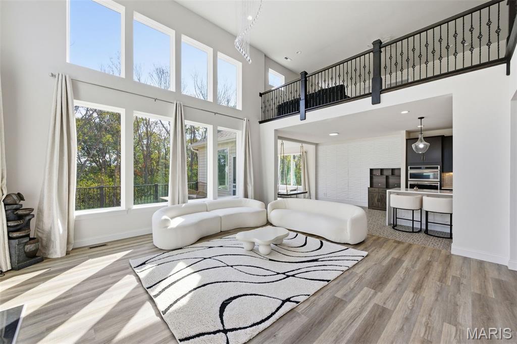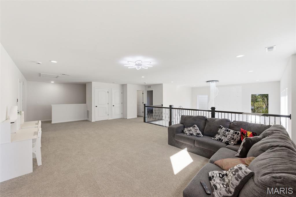 Fabulous 1-year-old home is move-In ready now! An impressive brick & stone elevation highlights the exceptional curb appeal of this Concert-homes built 1.5 sty home. Built in a cul-de-sac premium lot with walkout basement and big composite deck with scenic view behind. Covered porch entrance leads to 2-sty foyer, formal dining room and spectacular 20 ft high ceiling great room highlighted by dramatic wall of windows. Spacious chef's kitchen with 42'' contemporary cabinetry, quartz countertops, stainless steel appliances & 7' center island adjoins light-filled breakfast room. Main floor primary bedroom suite with 2 closets & luxury bath offers an appealing retreat. The 2nd floor extends the living quarters with 3 additional bedrooms, 1 with ensuite bath & 2 with Jack n' Jill bath. 9 ft Lower Level with rough in for future wet bar plus 5th & 6th bedrooms & full bath. Situated on a professionally landscaped lot with patio that spans the rear of the house & oversized 3-car garage. Award-winning Cottleville School district. Mother-in-law suite on main level is an extra bonus.