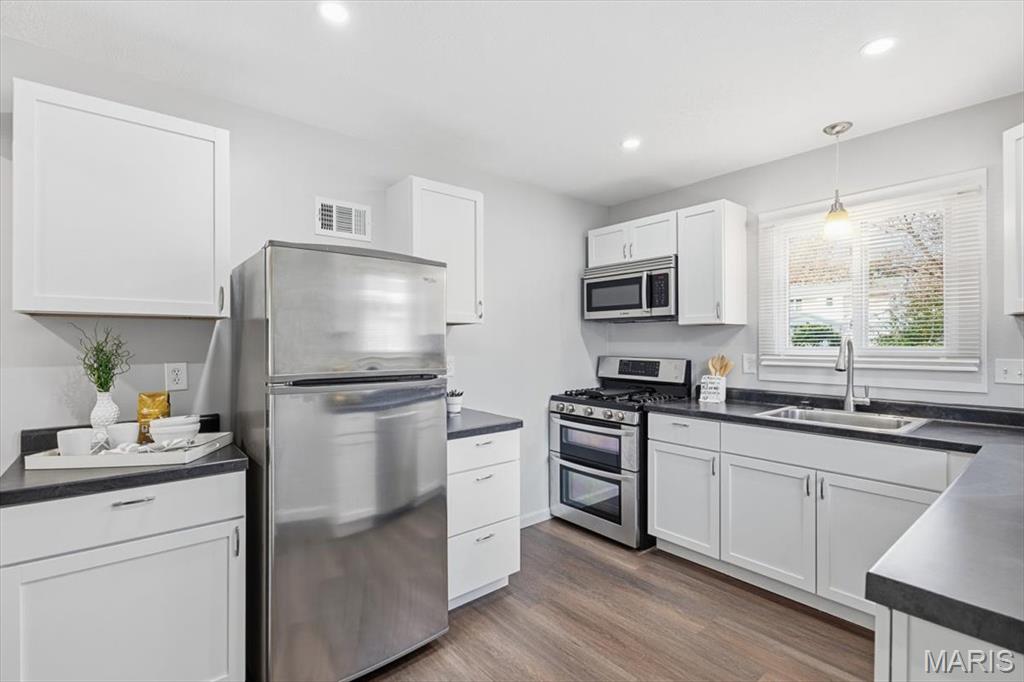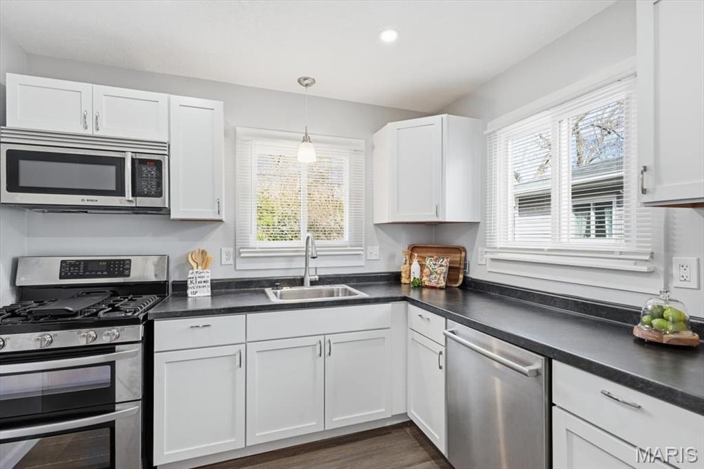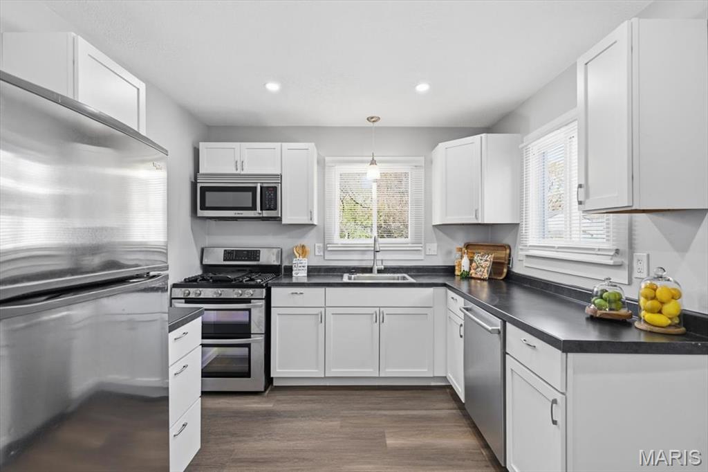 Home for the holidays! Welcome to the charming 689 Conover Lane! This lovely, move-in ready 3-bedroom ranch has been completely updated inside and out with beautiful luxury vinyl plank flooring, fresh paint, updated lighting, new windows, siding, roof and gutters and new HVAC system and hot water heater. The gorgeous bright white kitchen features stainless steel appliances, white shaker style cabinetry, new countertops and opens up to the light-filled spacious family room. The bathroom features new shower, vanity and lighting. Enjoy the large fenced, private backyard with shed and secluded lot which is the last on the lane and offers a walking trail to nearby Sanders Park. All of this offered in the sought-after the Lindbergh School District and close to Highway 44! Schedule a showing today and make this quaint home yours for the New Year!
