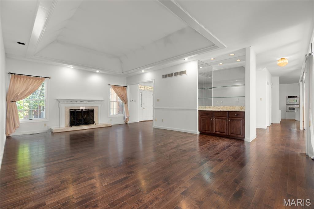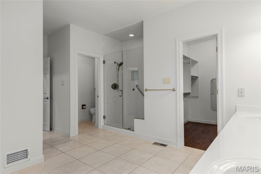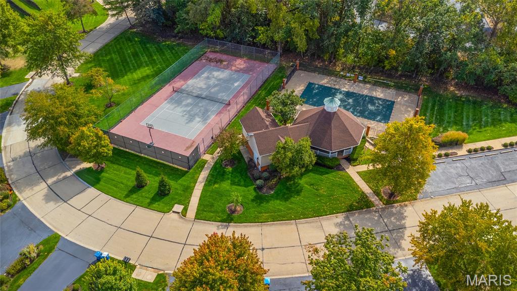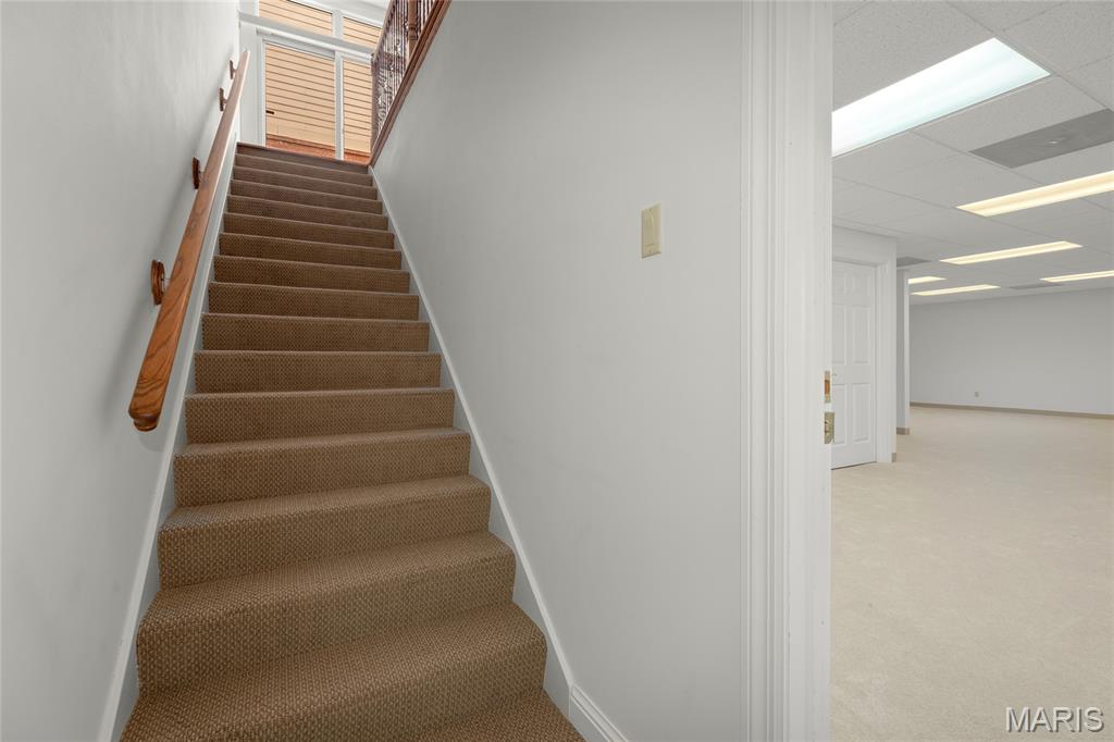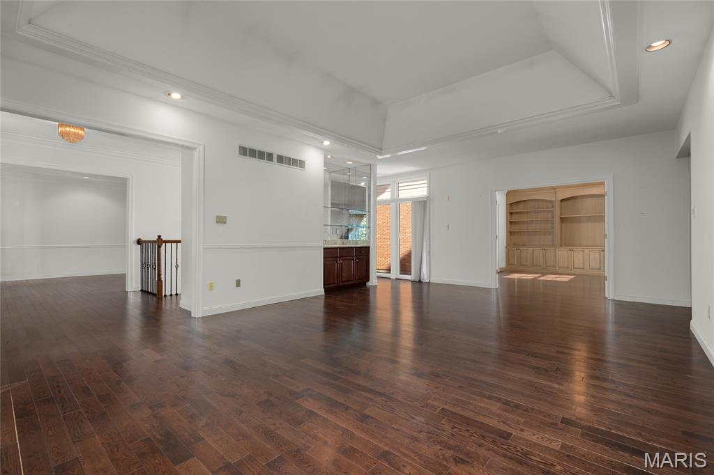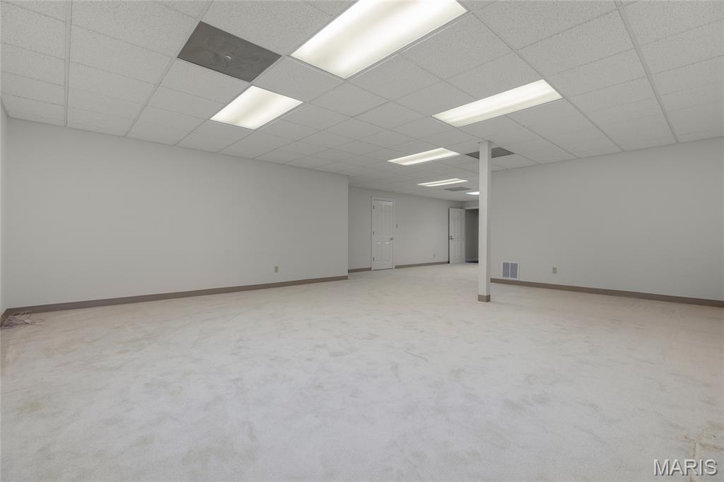 Welcome to 319 Carlyle Lake Drive, a distinguished ranch villa nestled within the exclusive gated community of Carlyle Lake in Creve Coeur. This serene enclave offers residents unparalleled privacy and security, complemented by upscale amenities including a clubhouse, saltwater pool, and tennis courts. A spacious eat-in kitchen with butterfly island and walk-in pantry overlooks the private outdoor patio. Gorgeous hardwood floors flow through the remainder of the residence, which includes a spacious living space with soaring ceilings and wet bar, and three bedrooms, one of which is currently used as a den. The spacious primary suite boasts a generously-sized sleeping area, two walk-in closets and a separate tub and shower. A second full bath, a powder room and a main-floor laundry room complete the main level. The lower level features a spacious rec space, a cedar closet and an additional storage space. Minutes to top-rated hospitals, shops and restaurants!
