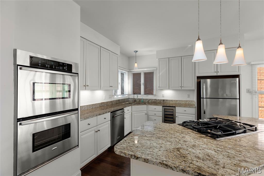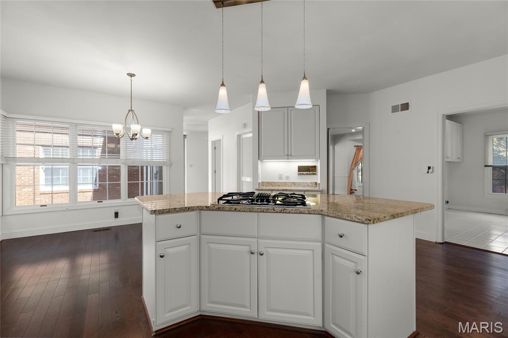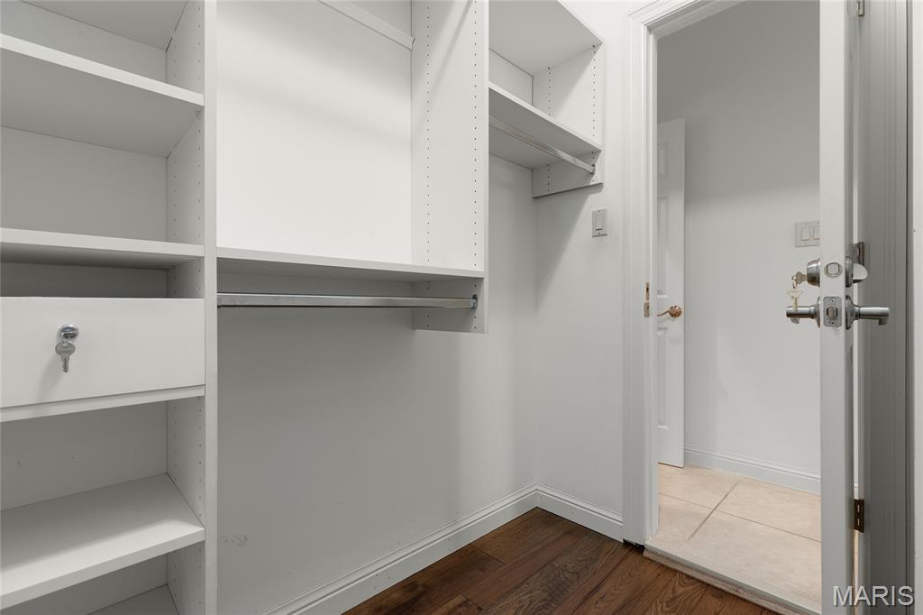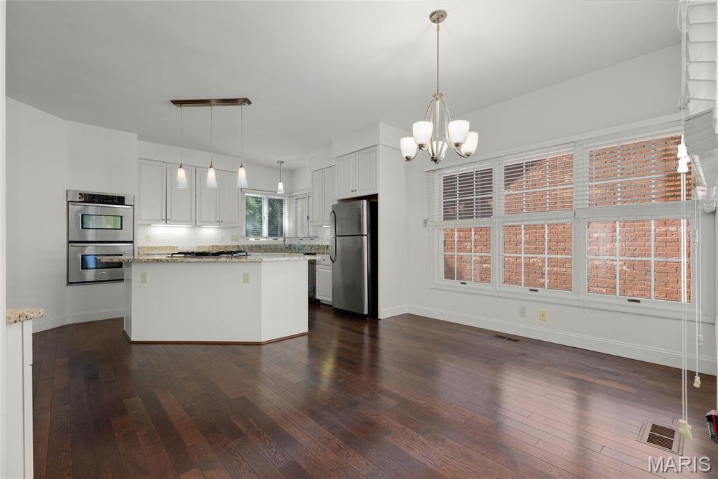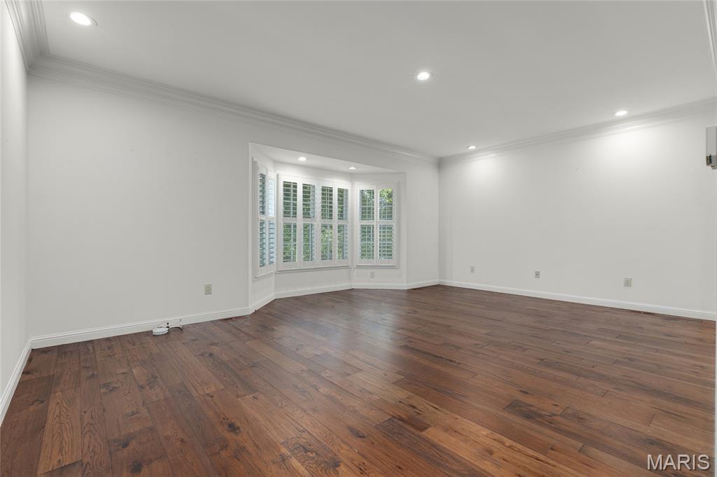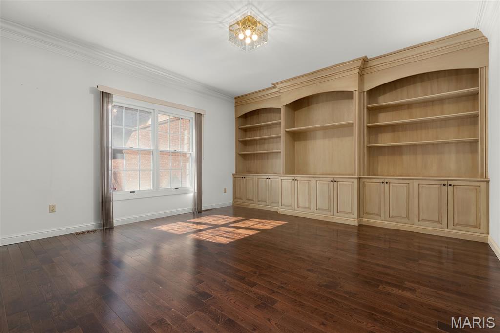 Welcome to 319 Carlyle Lake Drive, a distinguished ranch villa nestled within the exclusive gated community of Carlyle Lake in Creve Coeur. This serene enclave offers residents unparalleled privacy and security, complemented by upscale amenities including a clubhouse, saltwater pool, and tennis courts. A spacious eat-in kitchen with butterfly island and walk-in pantry overlooks the private outdoor patio. Gorgeous hardwood floors flow through the remainder of the residence, which includes a spacious living space with soaring ceilings and wet bar, and three bedrooms, one of which is currently used as a den. The spacious primary suite boasts a generously-sized sleeping area, two walk-in closets and a separate tub and shower. A second full bath, a powder room and a main-floor laundry room complete the main level. The lower level features a spacious rec space, a cedar closet and an additional storage space. Minutes to top-rated hospitals, shops and restaurants!