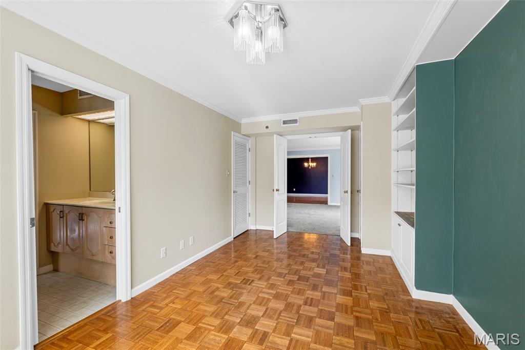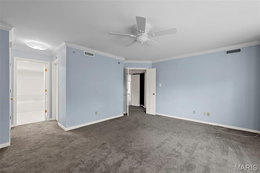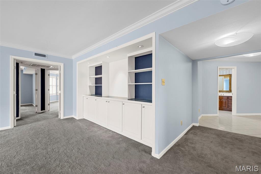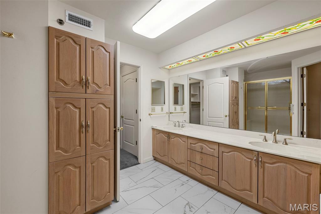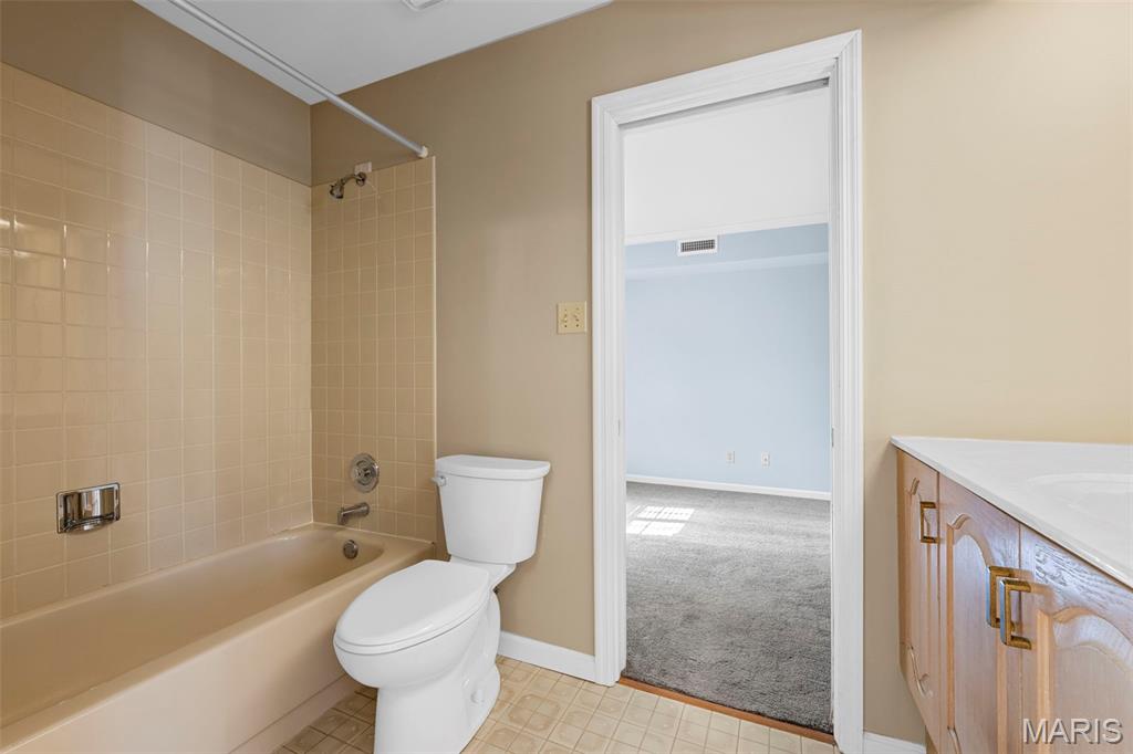 Welcome to 561 Sarah Ln #103—an end-unit, ground-level condo in Creve Coeur. This spacious 3-bed, 2.5-bath home offers one-level living with a large living room, built-ins, formal dining, and eat-in kitchen. The primary suite includes a walk-in closet, double sinks, separate tub, and shower. Two bedrooms share a Jack-and-Jill bath, and one has built-ins—perfect as an office. Enjoy a full laundry room, pantry, entry closet, and private storage room. Features include plantation shutters, smart thermostat, and newer gas appliances: oven/range, microwave, furnace, AC, and water heater—all just 4 years old. Includes two garage spaces (#11 & #12), storage locker, and elevator access. Common areas: lobby, club room, and pool. All that plus 3 months of HOA paid in advance! Ready for your updates!