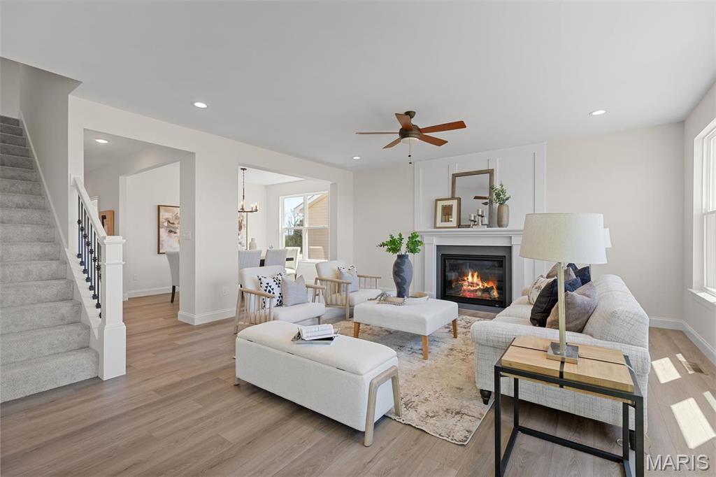 Move-in Ready at Cedarstone! Discover the exceptional Lancaster model at 116 Cedarstone Dr in Dardenne Prairie, MO, blending modern sophistication and timeless elegance. Located in the scenic Cedarstone community, this stunning residence offers a spacious open layout, including an upgraded second-floor plan and a three-car garage. Inside, enjoy premium finishes, a beautiful direct-vent fireplace, and a gourmet kitchen with quartz countertops and high-end cabinetry. The primary suite boasts a luxury bath, while thoughtful touches like recessed lighting and a fully sodded, irrigated yard complete this beautiful property. COOL: 14 SEER+