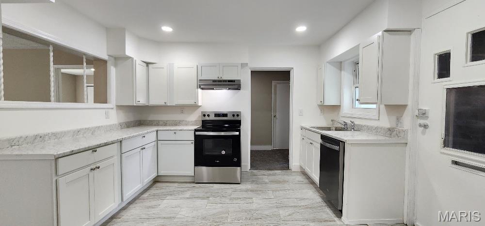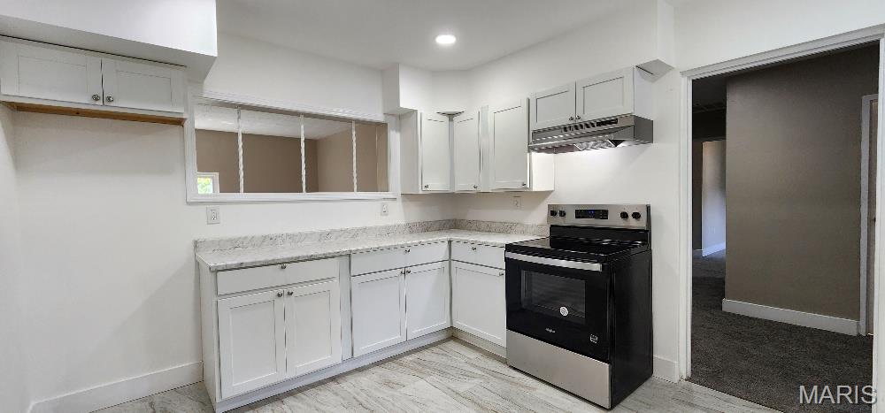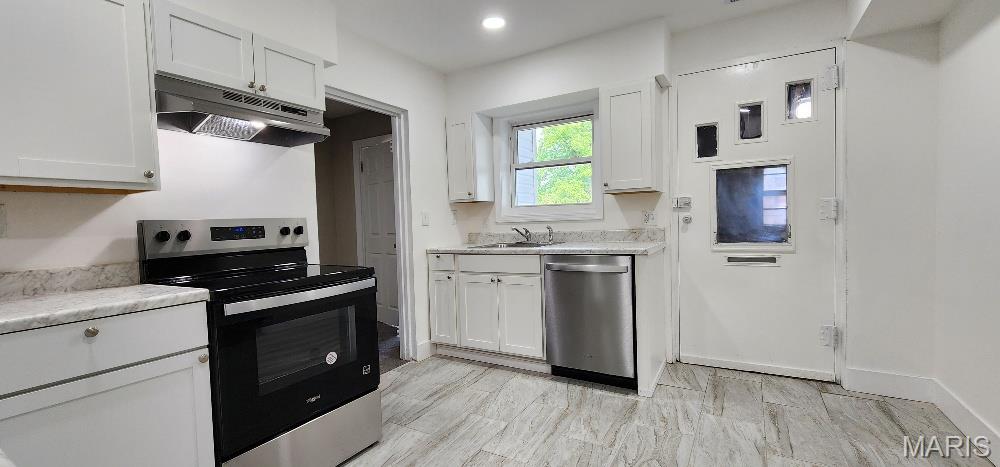 UPDATED Ranch Home! Step inside to see the NEW KITCHEN w/gleaming white cabinets w/nickel hardware & soft close drawers, stainless steel appliances including a smooth top range/oven, range hood, dishwasher & disposal plus beautiful 12"x24" plank tile flooring. Large living room w/pass thru window to the kitchen & dining room plus a rear family room or could be an office, playroom, guest sleeping area or den. You will enjoy the split bedroom floor plan w/a front bedroom plus a private primary bedroom in the rear w/a full new bathroom. The main full bathroom is sparkling new as well. There is a big walk-in storage closet or could be a pantry too. 7x6 nook could be a homework area plus there is drop down access to the attic & Lennox furnace. There is a enclosed porch to enjoy plus off street parking w/a driveway on the rear side. This all electric home has washer/dryer hook-ups in the utility room off the kitchen. You will appreciate the newer vinyl windows '22, main 200 AMP panel in '21,furnace & AC '23, water heater, 6 panel doors and all the finishing touches in '25. Passed Occupancy so can accommodate a quick closing. Make your appointment today!