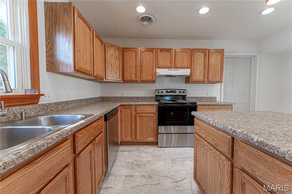 Price Improved! Needing a large 4 bed 2 bath home, this might be the one! Beautifully renovated 4 Bedroom & 2 Bath home. New carpet installed throughout the home. Some of the old style still shines though, quite literally through the stained glass windows! New vinyl plank floors in the Kitchen, Laundry Room and both Bathrooms. The kitchen has a brand new oven, dishwasher and faucet. The center island is so convenient for family or friends to chat while entertaining or preparing meals. Main floor laundry in large utility / laundry room toward the back. Upstairs are 3 more bedrooms and a full bath, and a small deck. The main water line from the meter to the home's shut-off was replaced. Home was converted to all electric in 2016. The basement is a walk up - some stacked flagstone / brick walls and a crawlspace in the front. Seller has the basement floor removed and repoured. A structural engineer report, sewer lateral inspection and home inspection are available for buyer to move forward with confidence. This one is worth checking out in person!