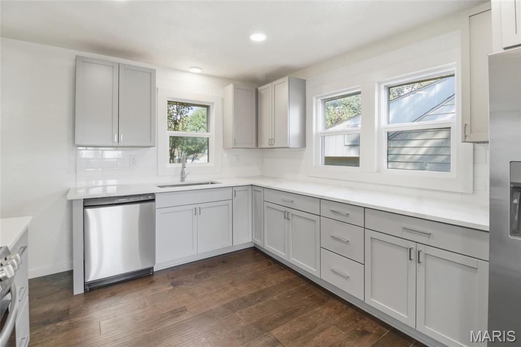 Recently updated home with a great blend of modern finishes with older style. This 3 bedroom, 2 bath has many features including an updated roof (2025), updated flooring throughout, quartz countertops, tiled backsplash, cabinets, stainless steel appliances, main floor master bedroom, bathroom, and main floor laundry, 2 bedrooms and a full bath upstairs, be sure to check out the wall lights near the separate dining room! The back deck overlooks the nice level back yard. The owner is providing a home warranty, agent owned, make your appointment today!
