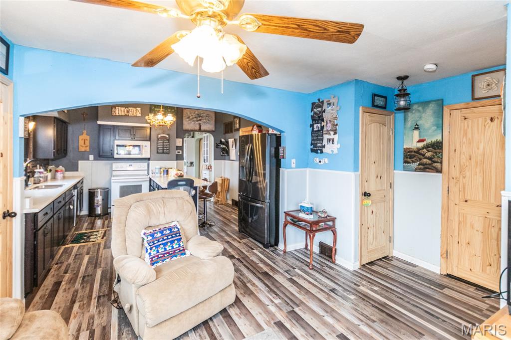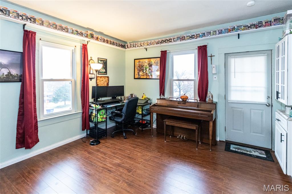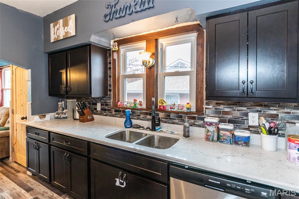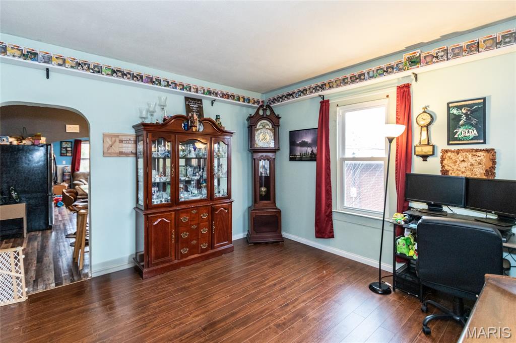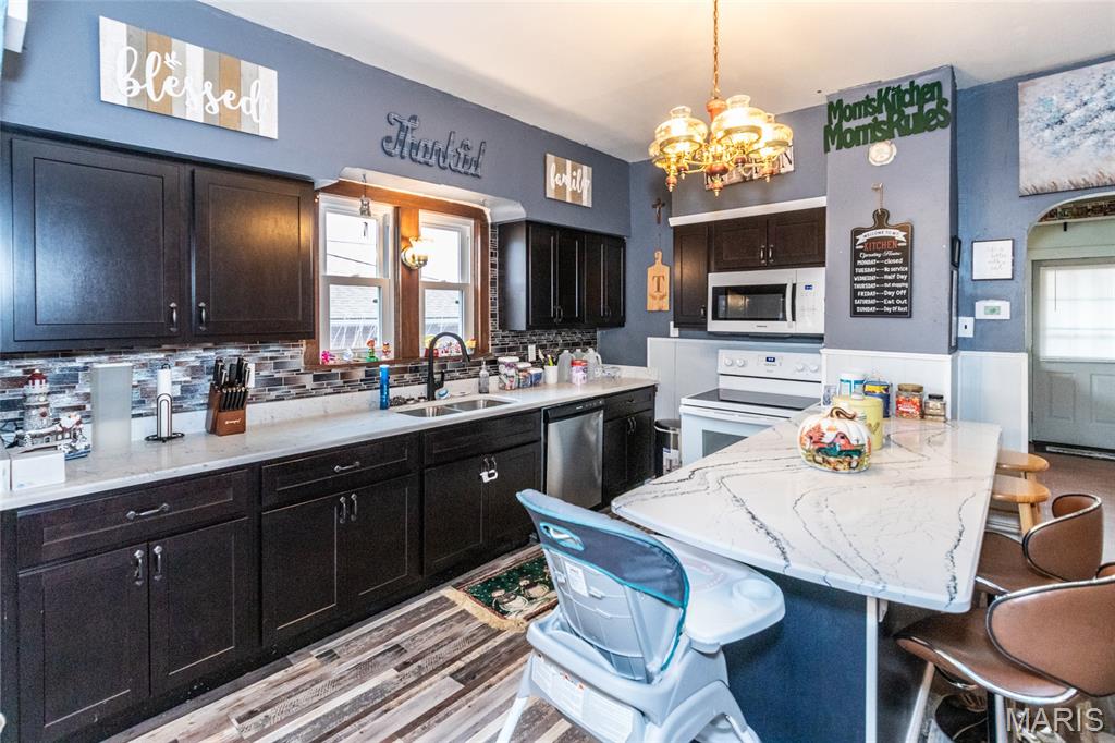 Discover this charming home in the heart of DeSoto, offering 1,464 sq ft of finished living space and a long list of recent improvements. Step inside to find newer LVP and laminate flooring, all newer windows, and a freshly updated interior designed for comfort and style. The updated kitchen features newer cabinets, quartz countertops, appliances, and a huge breakfast bar—perfect for the culinary enthusiast in your household, offering ample storage and counter space. Both bathrooms have been thoughtfully remodeled for a clean, modern feel. A spacious primary bedroom on the main floor offers everyday convenience, complemented by a main-floor laundry/mudroom. Upstairs, you’ll find a private and roomy second bedroom, perfect for guests, an office, or flexible living needs. With a freshly painted exterior adding to its curb appeal, this home also features an oversized garage and a multifunctional carport/breezeway that works beautifully for additional parking, outdoor entertaining, or keeping you dry as you bring in the groceries. Additional amenities include a newer HVAC system, gutters, water heater, and a waterproofed basement adds peace of mind. Located in the heart of DeSoto, this move-in-ready home combines modern updates with small-town charm. With so much to offer, this one won’t last long!