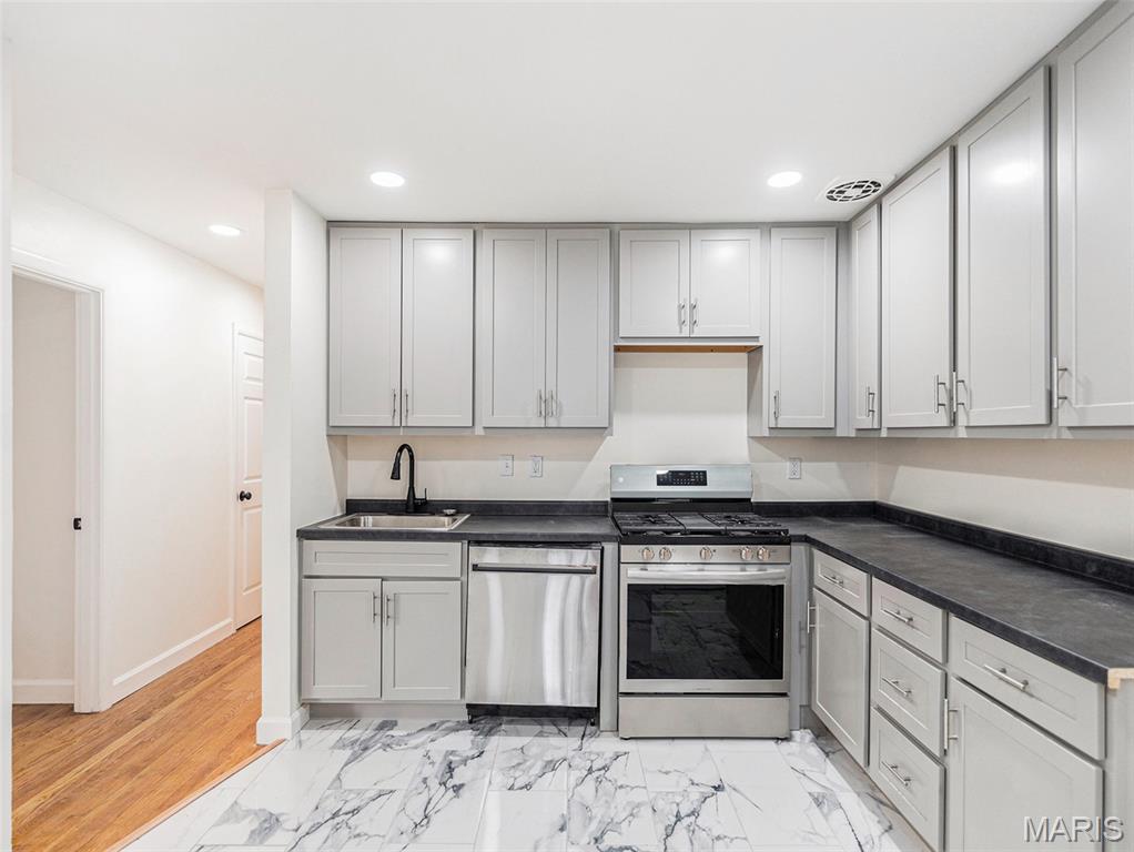 Beautifully remodeled 3-bedroom, 2-bath brick home featuring modern finishes and quality updates throughout. Highlights include refinished hardwood floors, recessed lighting, and fresh neutral paint. The updated kitchen offers new cabinetry, countertops, and fixtures. Additional features include energy-efficient windows, spacious wood deck, and a detached garage. The lower level includes a bonus room ideal for an office, recreation, or guest space. Home has passed municipal inspection. Conveniently located near schools, shopping, and major highways. Seller prefers to sell as is.