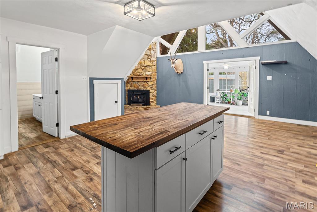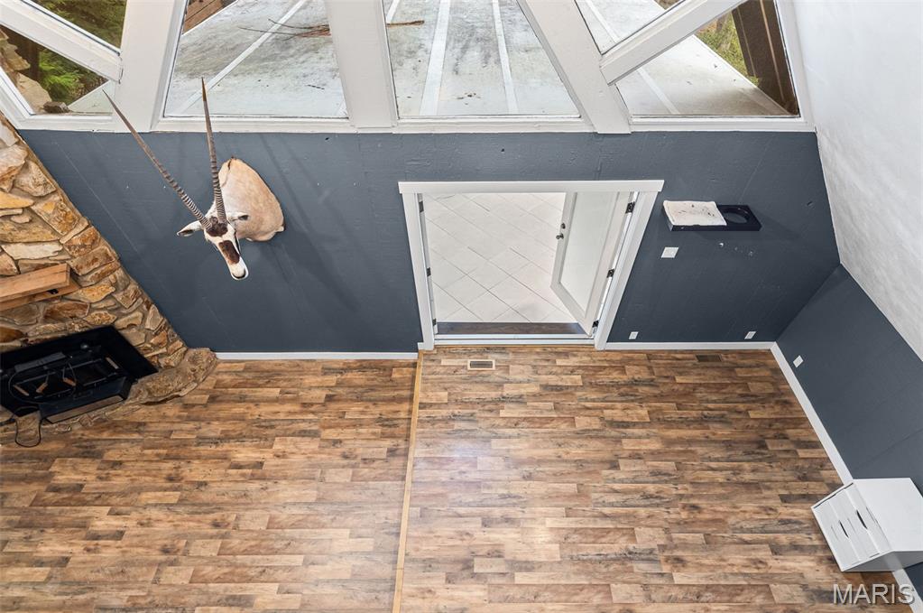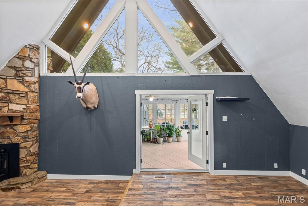 This one of a kind, unique property with views of Dunlap Lake is inundated with character! Enjoy swimming, kayaking, boating, fishing and more all within 2 miles of downtown Edwardsville! There are updates galore the moment you step foot on the property, you won’t be disappointed. With tall ceilings and an open concept floor plan you will enjoy spending time in the fully renovated kitchen with newer cabinets, counters, tile backsplash, island and newer stainless steel appliances. Cozy up next to the wood burning, stone fireplace with fireplace insert to help heat the home on those winter days! Enjoy the huge 4 seasons room with lake views! Master bedroom, full bath and laundry are conveniently located on the main floor along with a handy drop zone for bags and shoes. The upper level could be an additional one or two bedrooms (have to walk through bedroom to get to the other) or bonus room could be walkin closet, home office or playroom. Large storage enclosure 30'X6' on the North side of the home. If you are an outdoor enthusiast there are numerous exterior spaces to enjoy your free time including the large front deck, private back patio and the common ground down by the lake! Waterfront spots available for dock through HOA. Glik Park across the street! Additional Rooms: Large 4 Seasons Sun Room on rear.