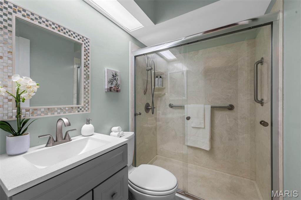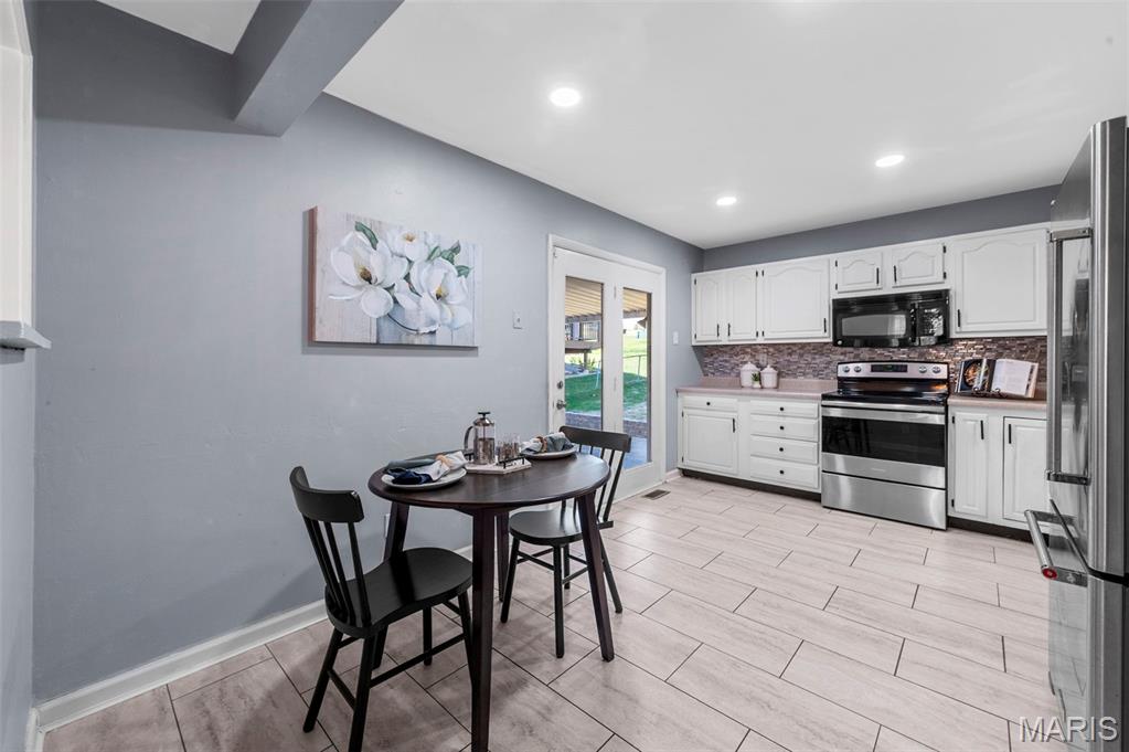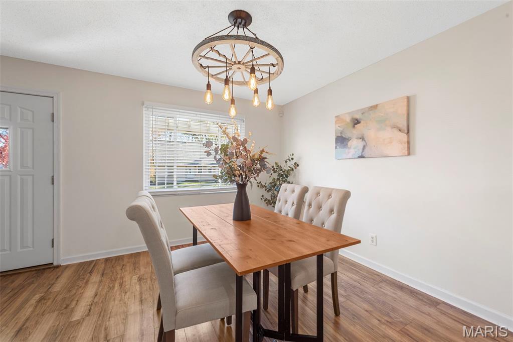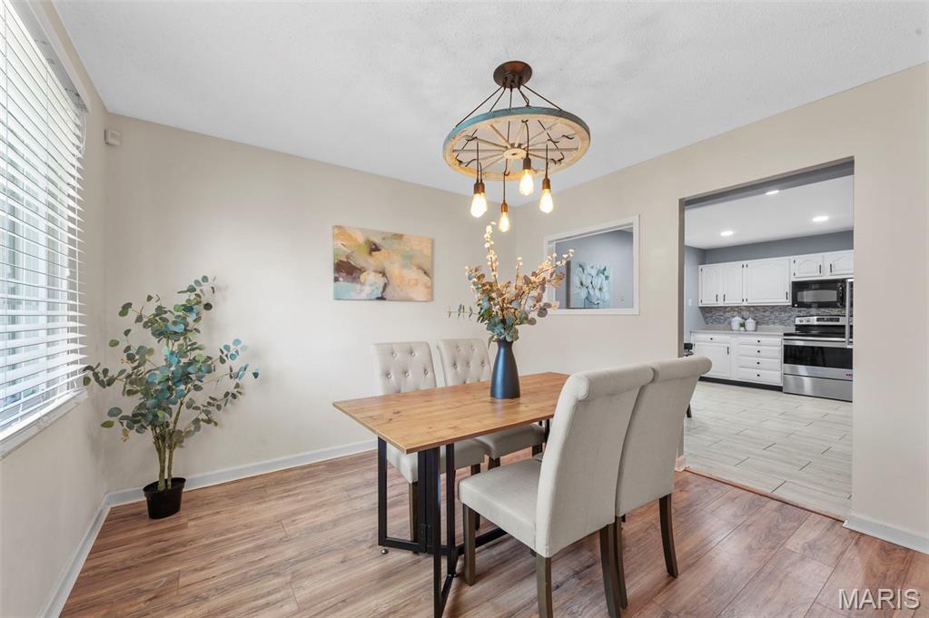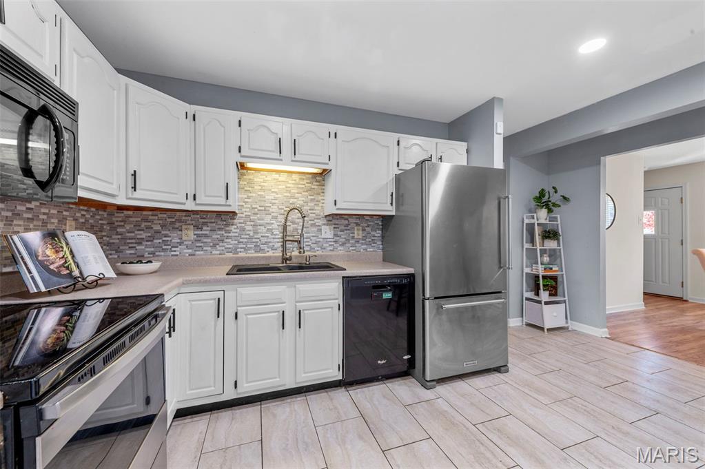 Welcome home to this adorable 3 bed/2 bath home full of character and updates. You'll love the luxury vinyl flooring on the main level and newer carpet in the 3 bedrooms. The cozy family room features classic wainscoting and the separate dining room makes entertaining a breeze. The master bedroom is conveniently located on the main level. Enjoy the partially finished basement with electric fireplace providing extra living space and storage. The spacious fenced in backyard is perfect for outdoor living, with privacy backing up to common ground. Quiet, friendly neighborhood feel, easy parking, and wildlife often seen in the area appealing to nature lovers. Located in Rockwood School District and close to highway. New roof, gutters and downspouts in 2021. Home was converted to all electric HVAC system in 2022. This home is ready for you to make it your own today!