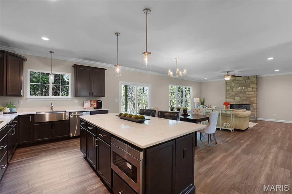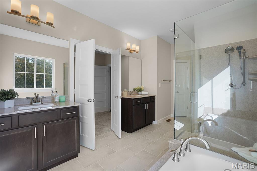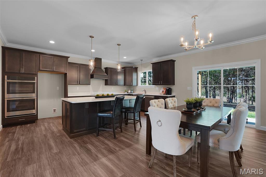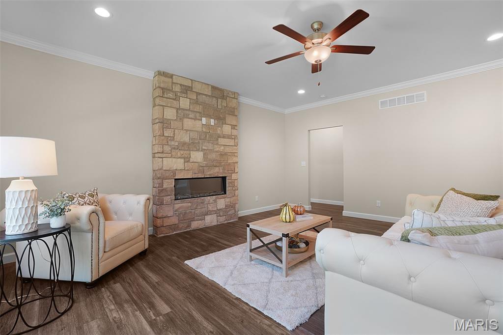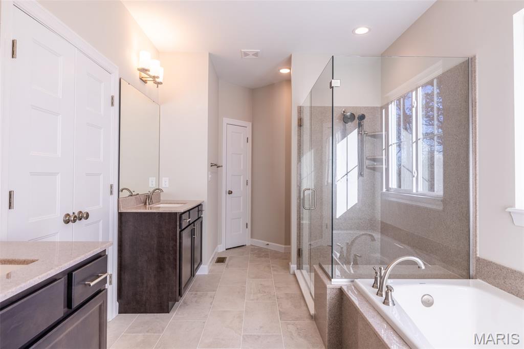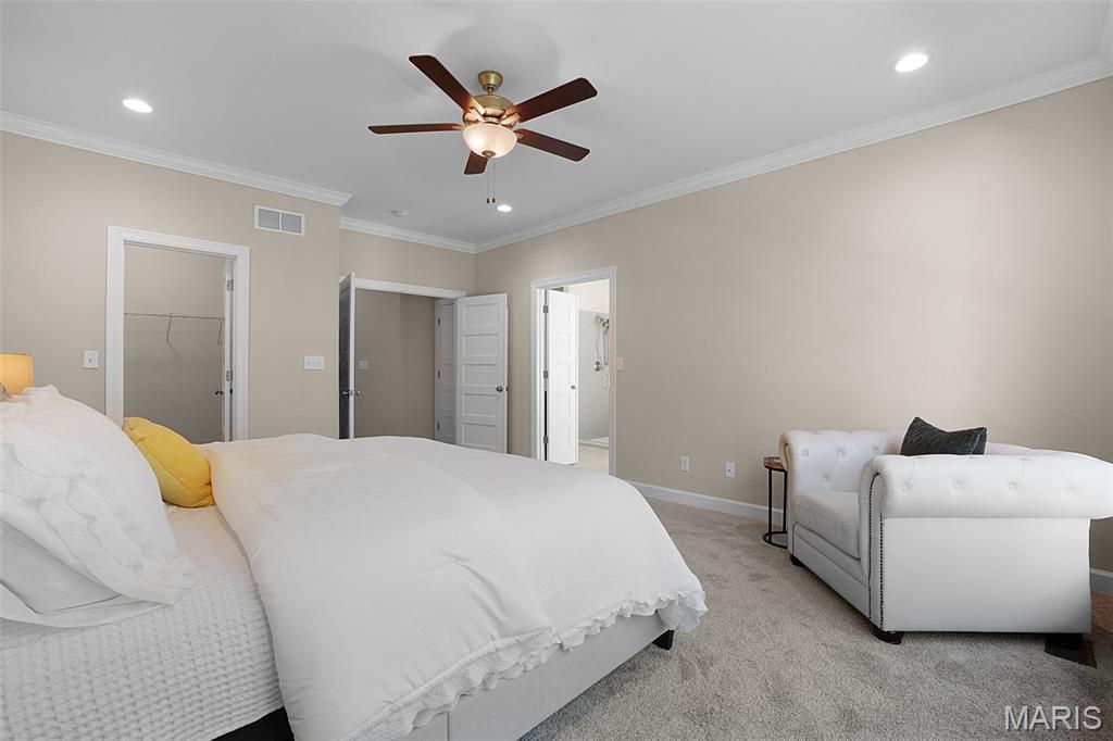Huge Price Reduction! Now offered at $835,000 — well below today’s build price! This is the acreage home buyers wait for. Move-in ready new construction on 3.11 acres tucked on a quiet cul-de-sac in the highly sought-after Estates at Schaper Farms—offering privacy, space, and convenience without compromise. This Cypress Ranch by Jaeger Homes features an ideal split-bedroom floor plan with 2,432 sq ft on the main level, 3 bedrooms, 2.5 baths, and a separate office just off the foyer—perfect for working from home or a quiet retreat. The open-concept great room is anchored by a dramatic floor-to-ceiling stone electric fireplace and flows seamlessly into a fully upgraded kitchen package with 42” soft-close cabinetry, quartz countertops, double ovens, smooth-top range, farmhouse sink, cabinet hood, walk-in pantry, and a large island built for entertaining. Step outside to the covered patio and enjoy peaceful wooded views and a backyard that’s absolutely ideal for a future pool, outdoor firepit, or expanded entertaining space. The acreage truly sets this home apart. The private primary suite is a true retreat with dual vanities, soaking tub, oversized walk-in shower, and two walk-in closets, thoughtfully separated from the secondary bedrooms for added privacy. The side walk-out lower level with a 9 ft pour offers endless possibilities for future finish and additional living space. Car enthusiasts and hobbyists will love the extended driveway and oversized angled 3-car garage (31’ x 25’)—designed to accommodate larger vehicles—with a bump-out area perfect for extra storage or a refrigerator/freezer, plus a service door for added convenience. Additional highlights include an irrigation system, partially sodded yard, energy-efficient construction, city-maintained concrete streets, and low HOA dues. Enjoy the best of both worlds—private luxury acreage living just minutes from highways, Wentzville schools, dining, and shopping. Why wait to build and pay more? This exceptional home is move-in ready, loaded with upgrades, and priced to sell.