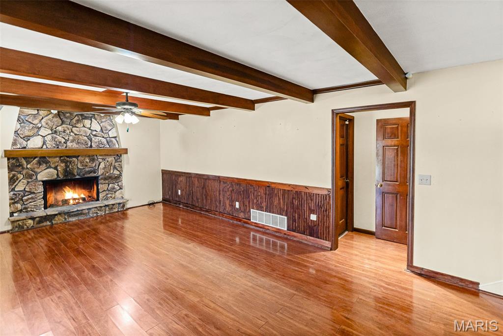 Located in Covered Bridge Estates, this unique 4 bedroom, 3 bath home sits on 3.22 acres with a scenic lakefront view. The home features a custom kitchen with stainless steel appliances ideal for both everyday living and entertaining. The primary suite includes a walk-in closet and a private walk-out deck. A large lower-level recreation room adds flexible living space, while two wood-burning fireplaces create warmth and character throughout the home. Outside, the property offers the convenience of a 2-car attached garage, plus a detached 3+ car garage with a loft, providing ample space for vehicles, storage, or hobbies. This property offers a peaceful setting with room to relax, entertain, and enjoy lakefront living.