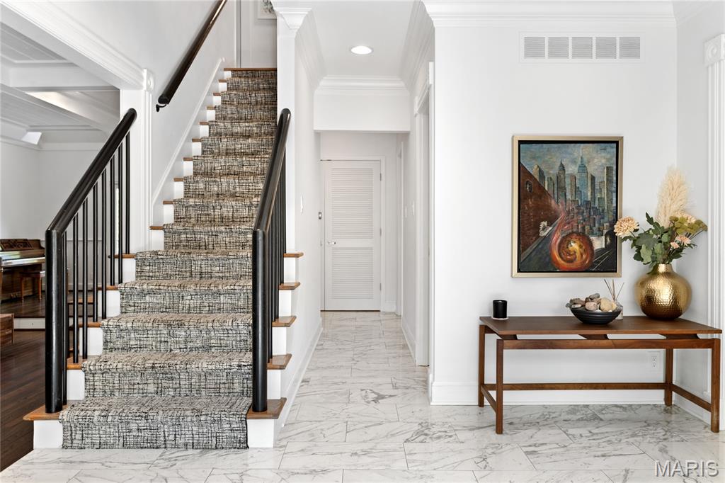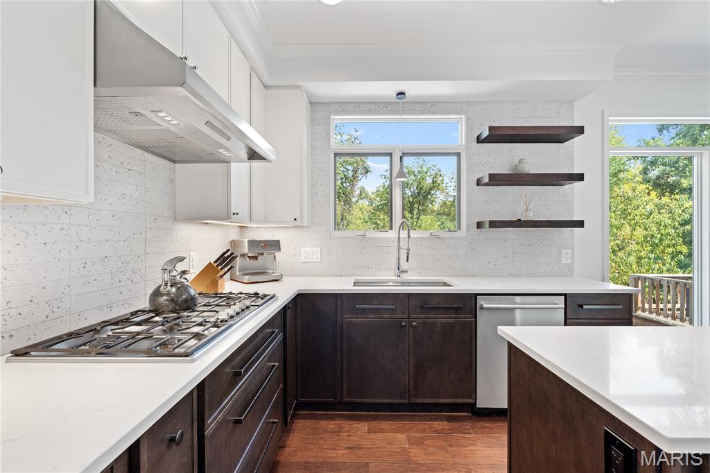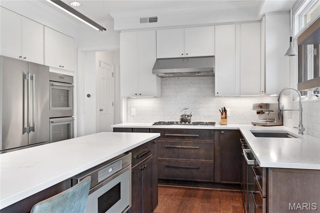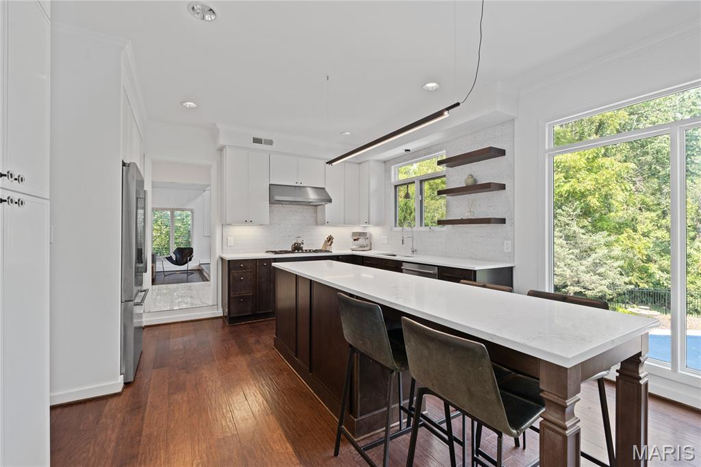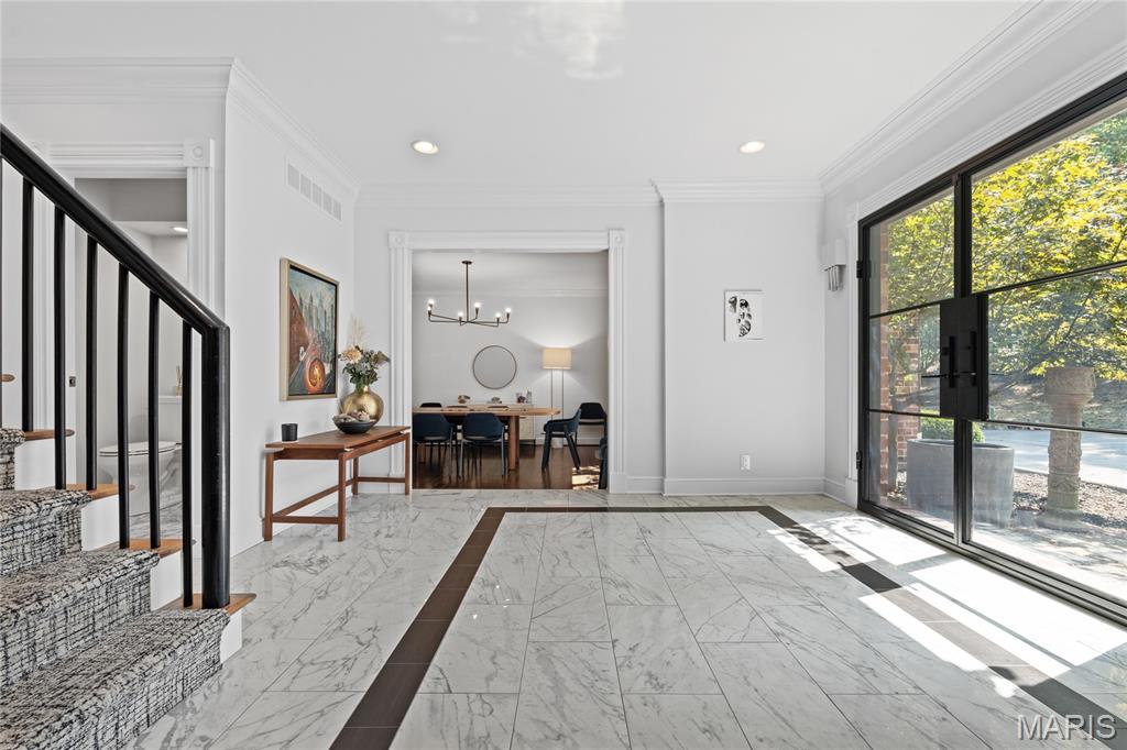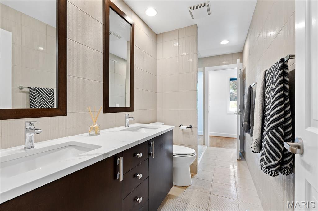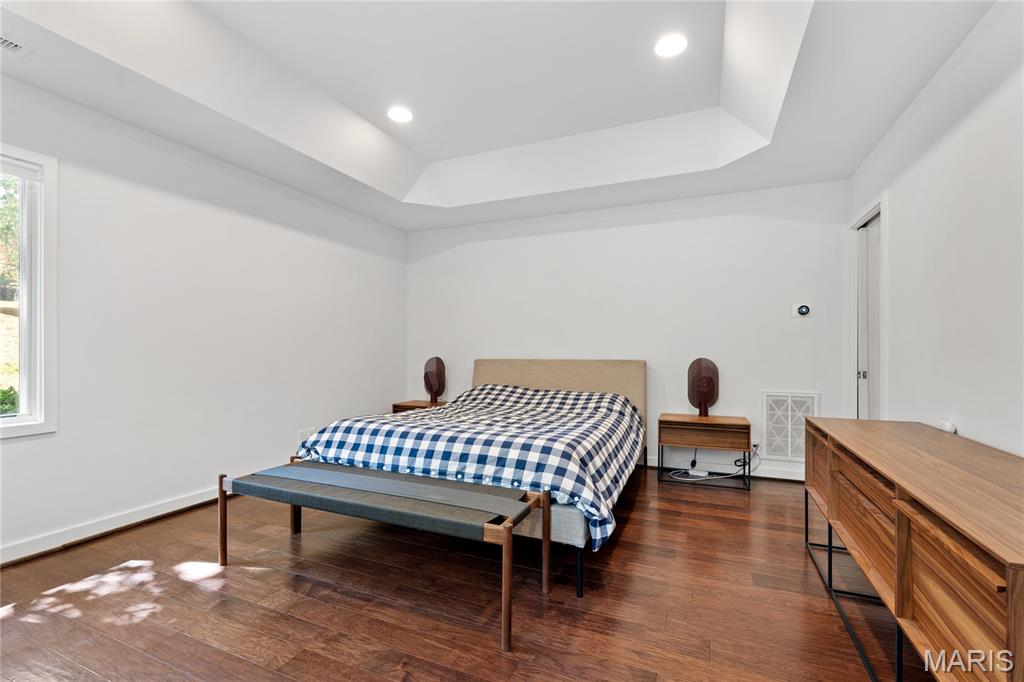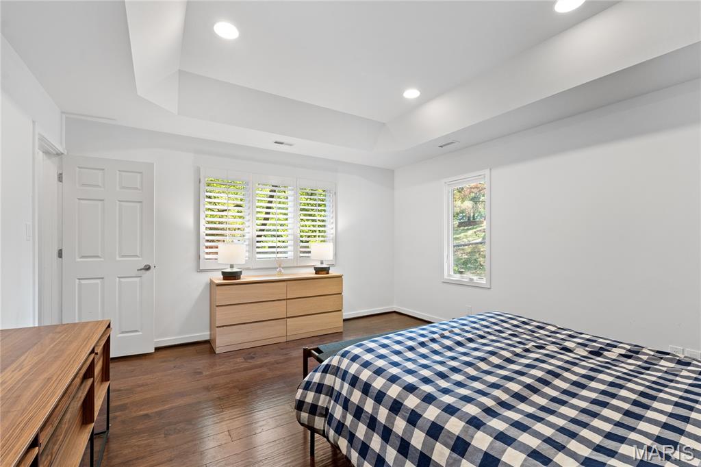 MAJOR PRICE REDUCTION!! Gorgeous updated transitional designed 5 bd, 4 full and 1 half ba home on a lush 1.48 acre lot in the center of Frontenac. The current owners have taken this gem to the next level incorporating fresh design for the modern buyer. Find a renovated kitchen with custom cabinetry, Thermador appliances, center island that flows into the fam rm with built-ins and fireplace. The main flr primary bedrm features a spa bath, custom closet and dressing area. A formal din, lg great rm and guest powder complete the 1st flr. The 2nd flr offers 3 lg bedrms, 2 updated baths, a loft playrm and an updated laundry rm. The walk out low level with bar/rec rm, updated bedrm and bath provides rm to spread out. The gorgeous pool, heated driveway, 2 new HVACs, new light fixtures, landscaping and so many more updates complete this perfect Ladue SD home. Walk to Villa and Oak Hill School.