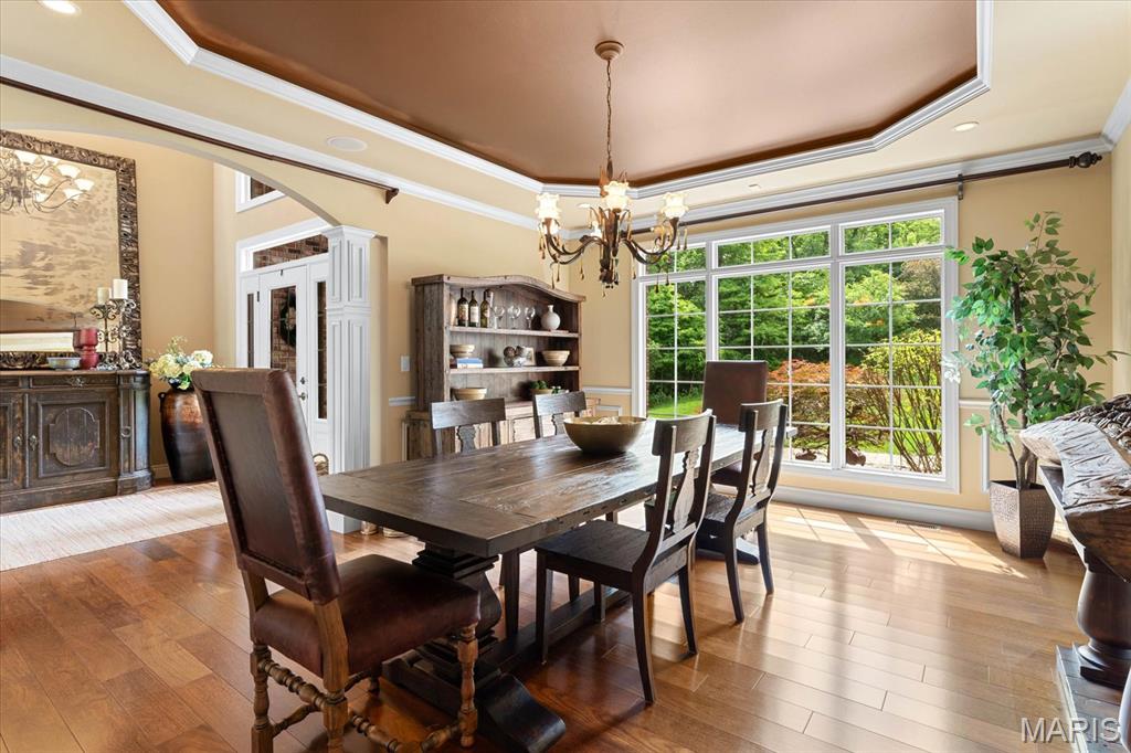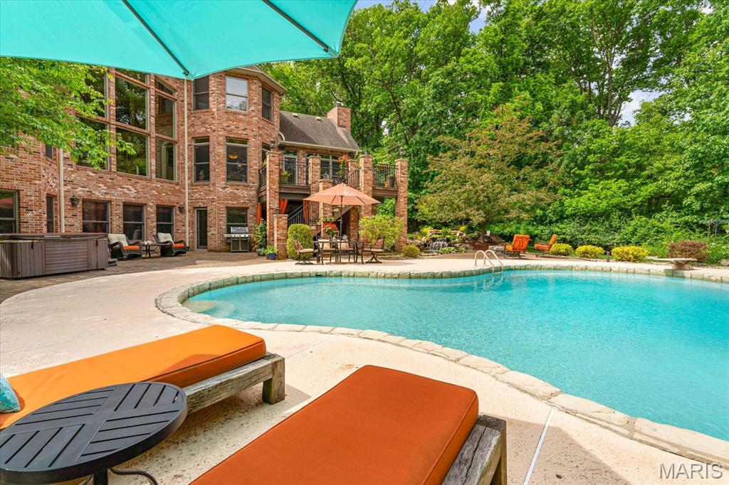 $150,000 PRICE ADJUSTMENT! Nestled on 8 picturesque wooded acres, this luxurious 5-bedroom, 7-bath estate offers an unparalleled blend of elegance and modern amenities. Each bedroom boasts a private ensuite. The main floor features a spacious great room with 19' ceilings, a custom-built gas fireplace, a hearth room, a gourmet eat-in kitchen with walk-in pantry, dining room with butler's pantry, complemented by a convenient main-floor laundry, and whole-home sound system. The main floor primary ensuite is spacious and features two customized walk-in closets, water closet, dual vanities, a jetted soaker tub, 5'x5' tiled shower with heated towel rack and heated floors. Upstairs, three bedrooms surround a charming loft area, perfect for relaxation or study. The walk-out lower level is an entertainer's dream with a family room, wet bar, kitchenette, 2nd laundry, two bonus rooms, and a medical spa. Outdoors, enjoy serene luxury with an inground heated saltwater pool, a tranquil 5000-gallon koi pond with a waterfall, an Ipe wood deck, and a covered patio with a bromic heater. The 3-car climate-controlled,1000 sqft side-entry garage, central vac system, and geothermal HVAC offer efficiency and convenience. This home is a true sanctuary of comfort and style. A rare find that seamlessly combines natural beauty with modern luxury! Close to shopping, dining, The Great River Road, and The Nature Institute. Allow 24 hour advance notice for all scheduled showings.